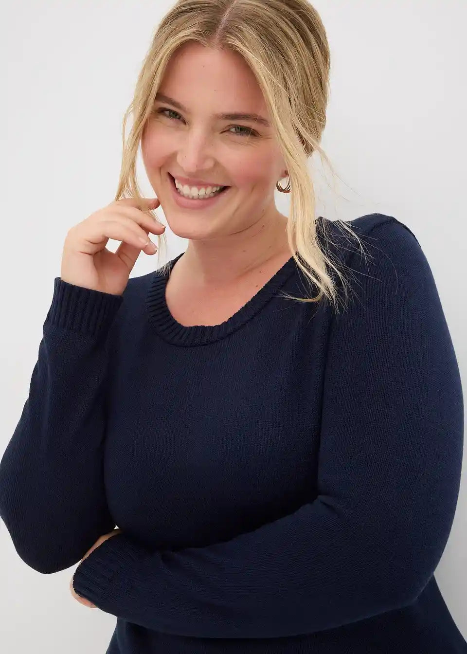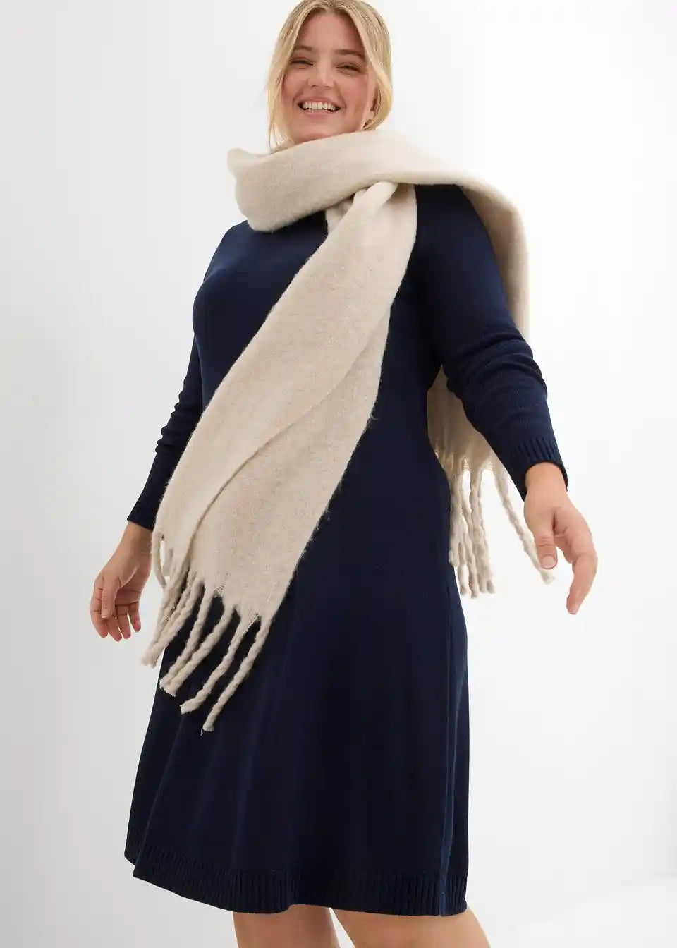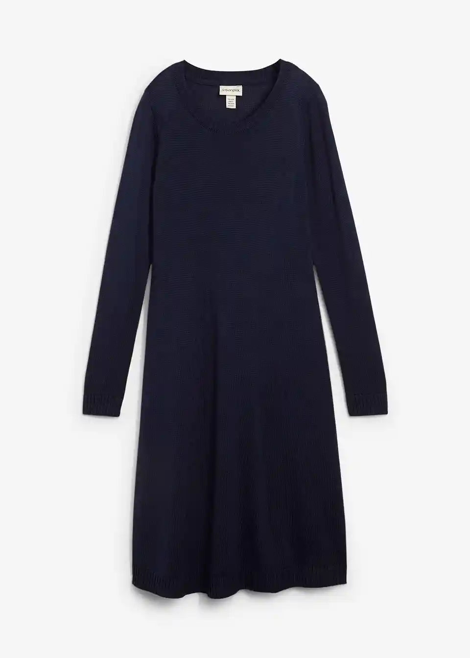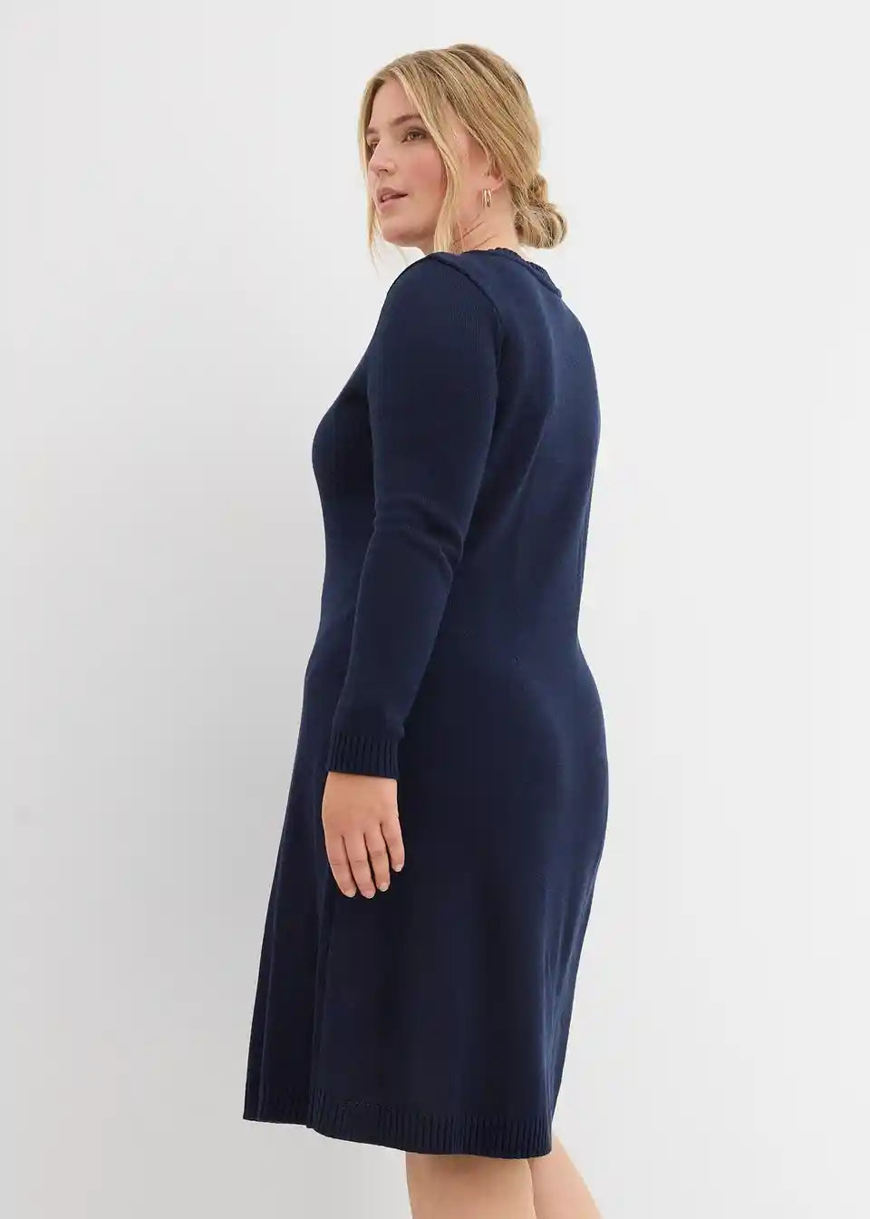 Vsestranska pletena obleka v razširjenem in po telesu padajočem kroju