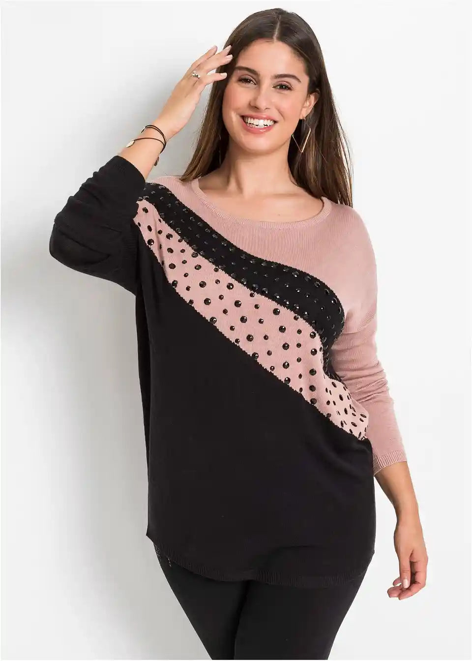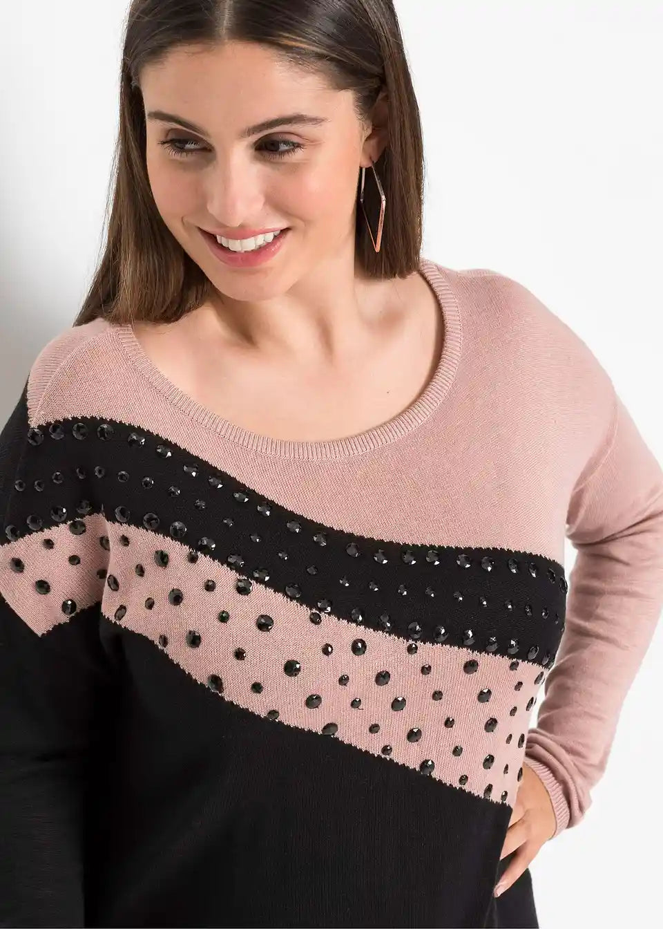 Elegantni pulover z znižanimi rameni in okrasnimi kamni