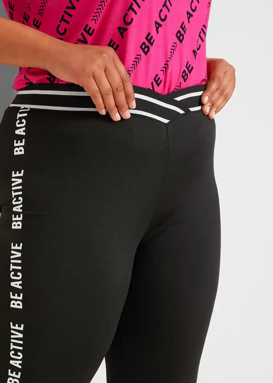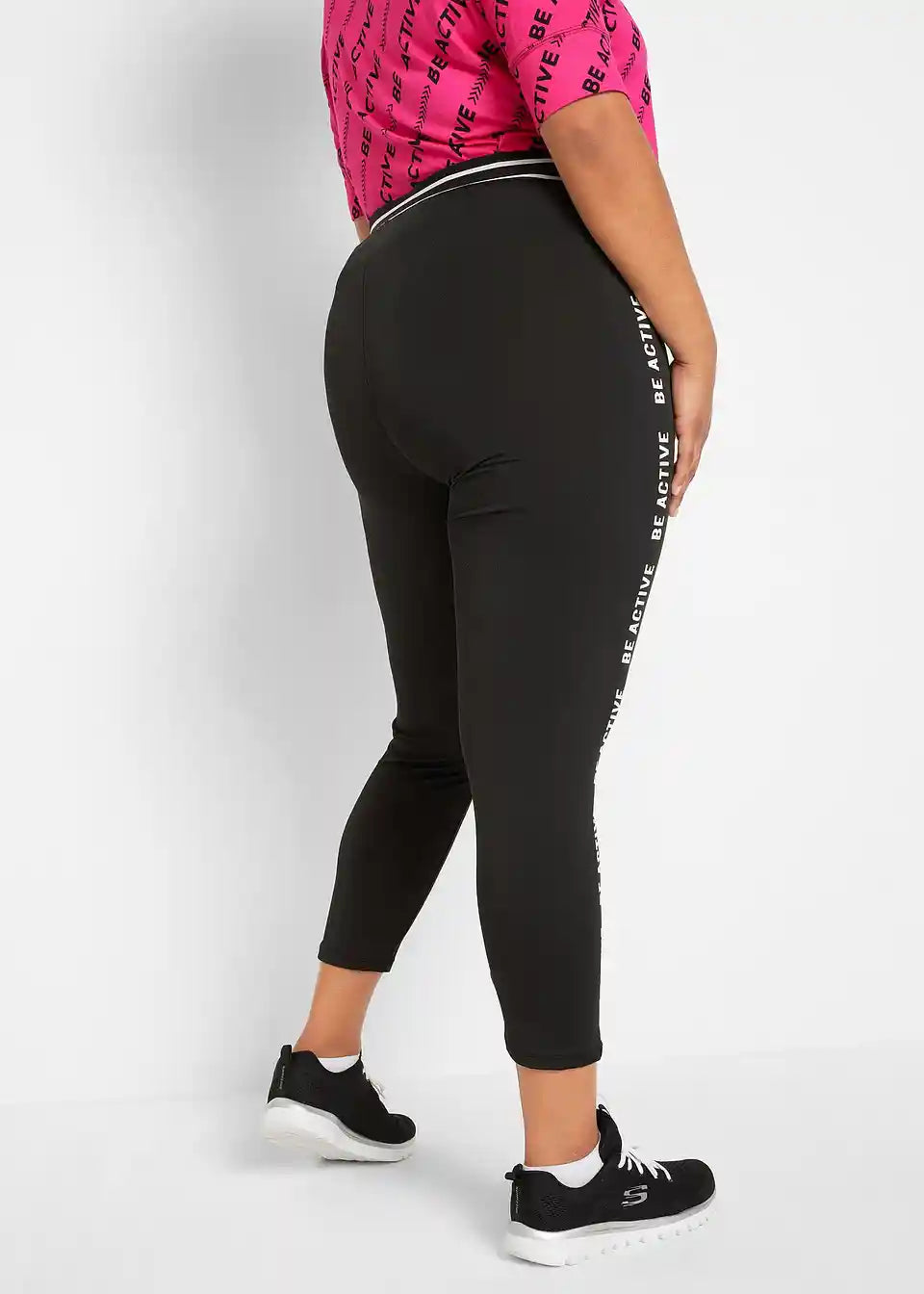Raztegljive legice s posebno obliko pasu in motivacijskim potiskom, dolžina 7/8