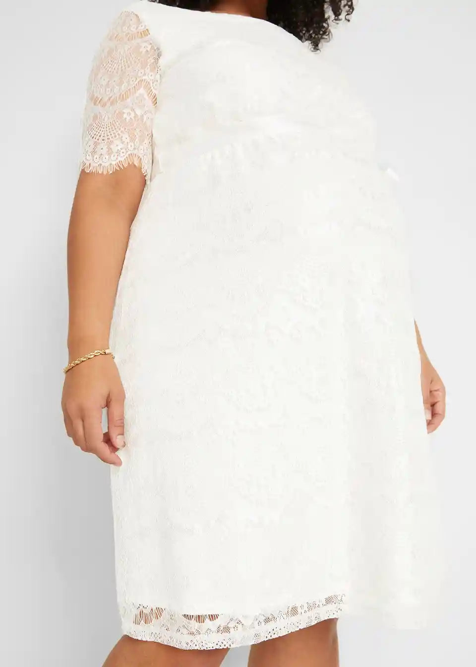 Elegantna nosečniška poročna obleka iz mehke raztegljive čipke