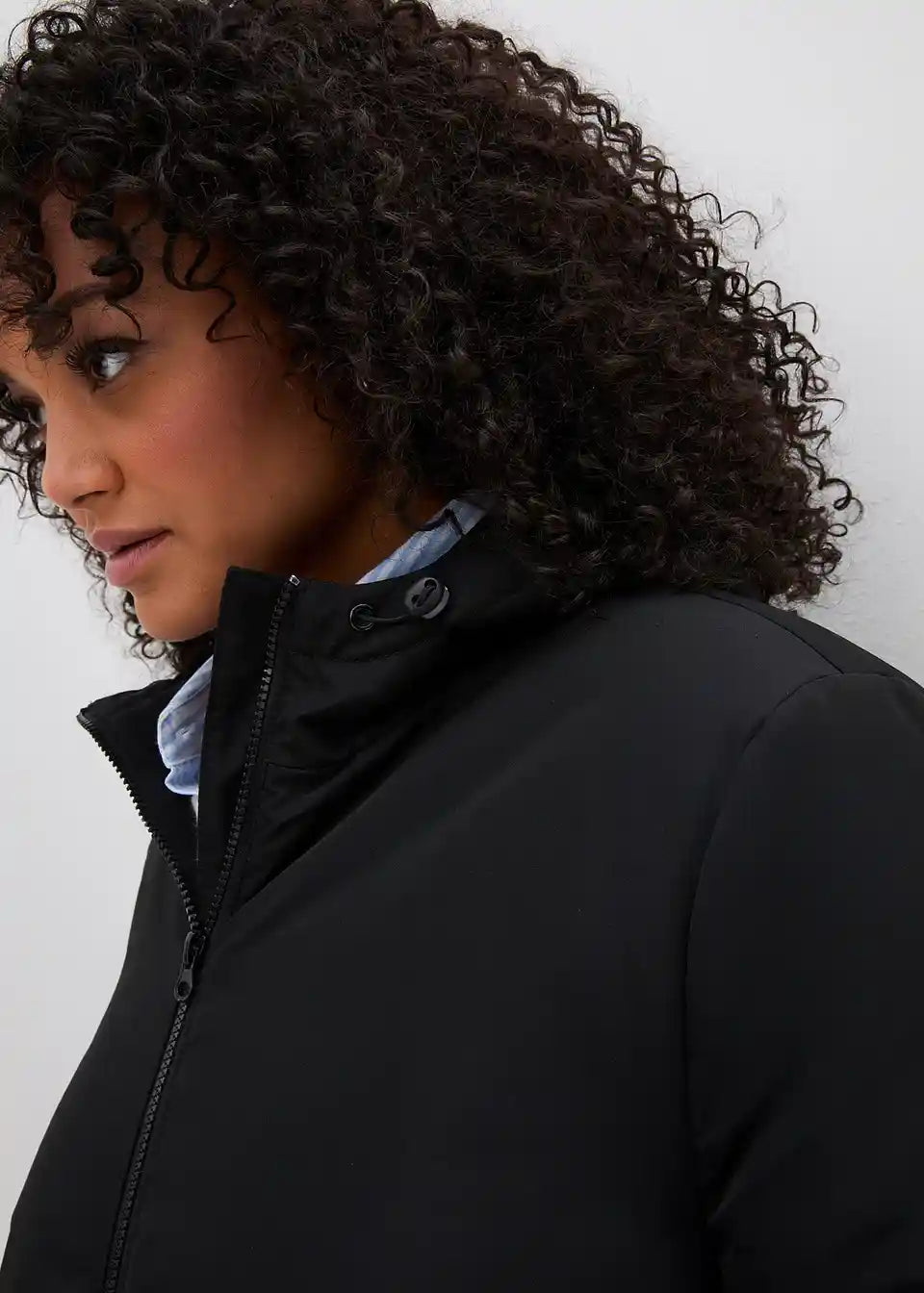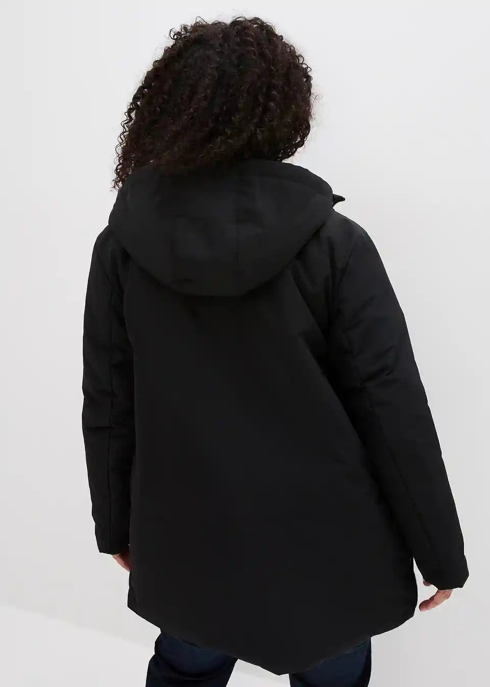 Jakna, ki odbija dež in veter, vključuje funkcionalen vložek z majhno kapuco za dojenčka. Z žepi na sprednji strani in kapuco z vrvico. Stranske zadrge omogočajo prilagoditev širine, kar omogoča nošenje tako med nosečnostjo kot po njej. Z dvosmerno zadrgo.