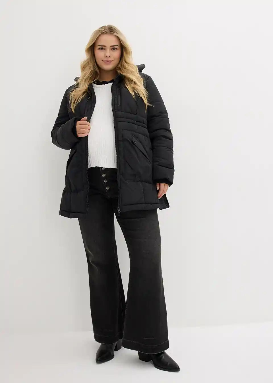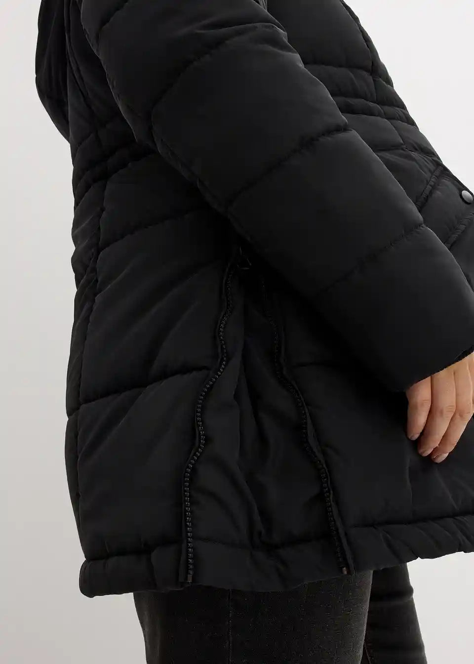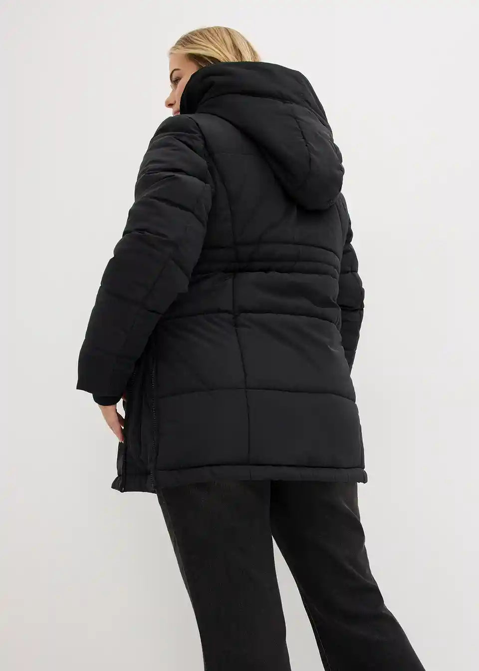 Ta podložena nosečniška jakna z vložkom za otroka ohranja mamo in otroka prijetno topla v hladnih dneh. Med nosečnostjo stranske zadrge omogočajo dovolj prostora za rastoči trebuh. Po porodu se model lahko razširi z vložkom za otroka, podloženim s tkanino iz pliša. Ta je le za zaščito in ne omogoča funkcije nošenja. Jakna z oblogo prepriča z raztegljivimi rebrastimi zaključki na rokavih in mehko podlogo iz pliša.