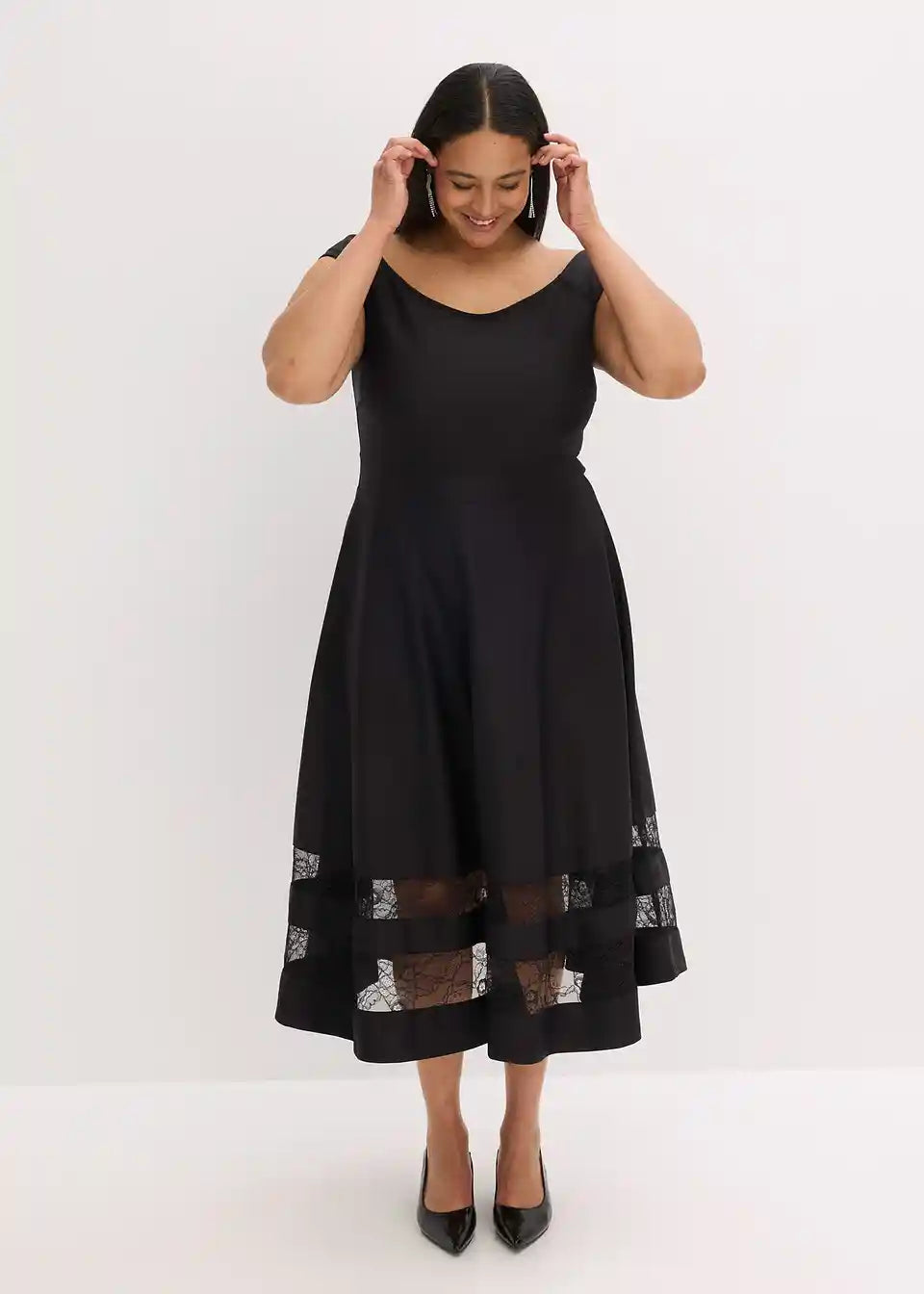 Romantična in ženstvena: Carmen obleka z vložkom iz čipke in pasom