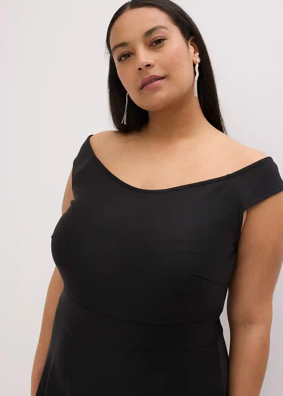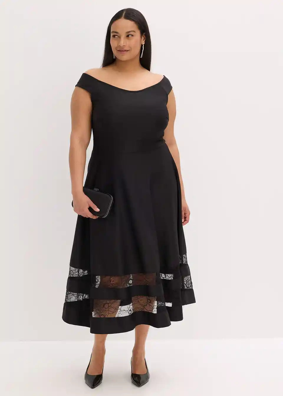 Obleka s carmen izrezom s čipko in pasom