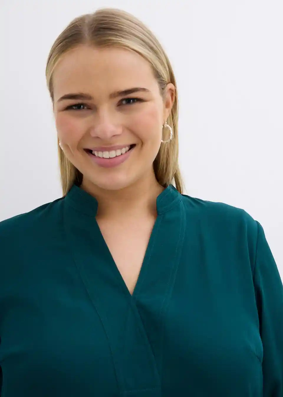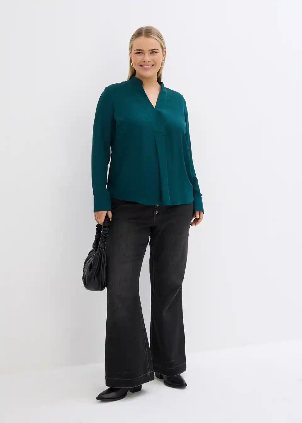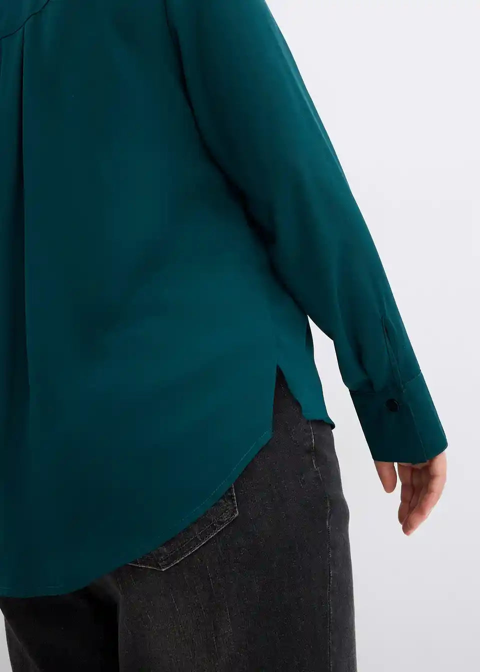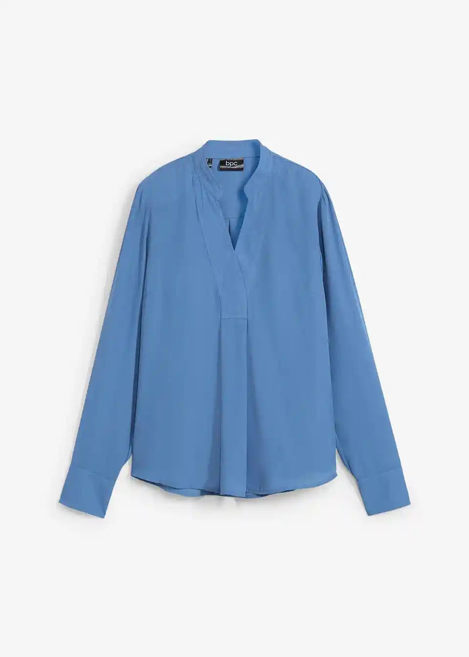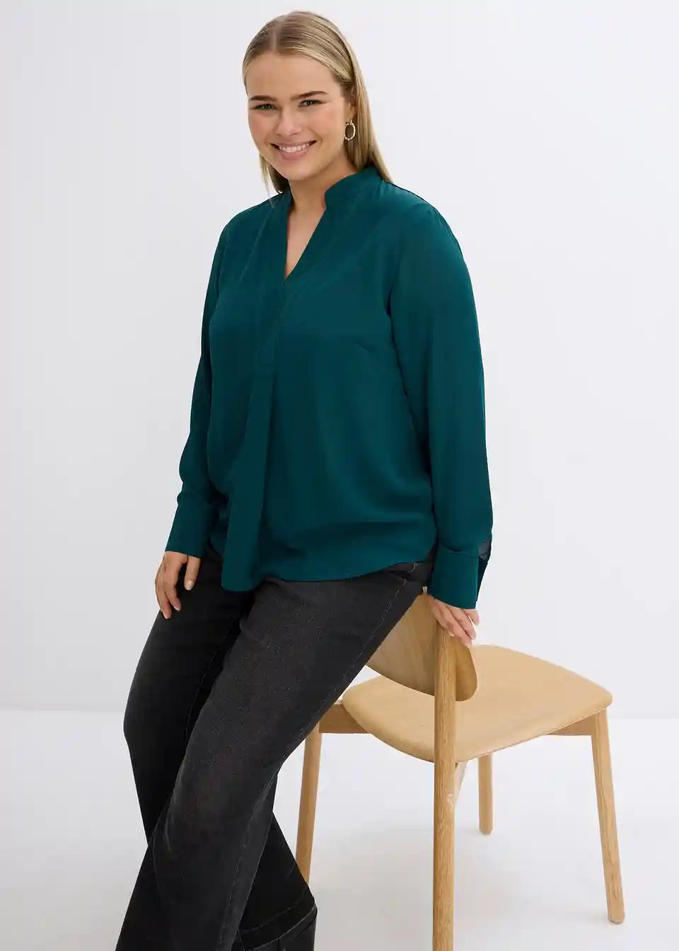 modna Chiffon bluza z V-izrezom in stranskimi razporki