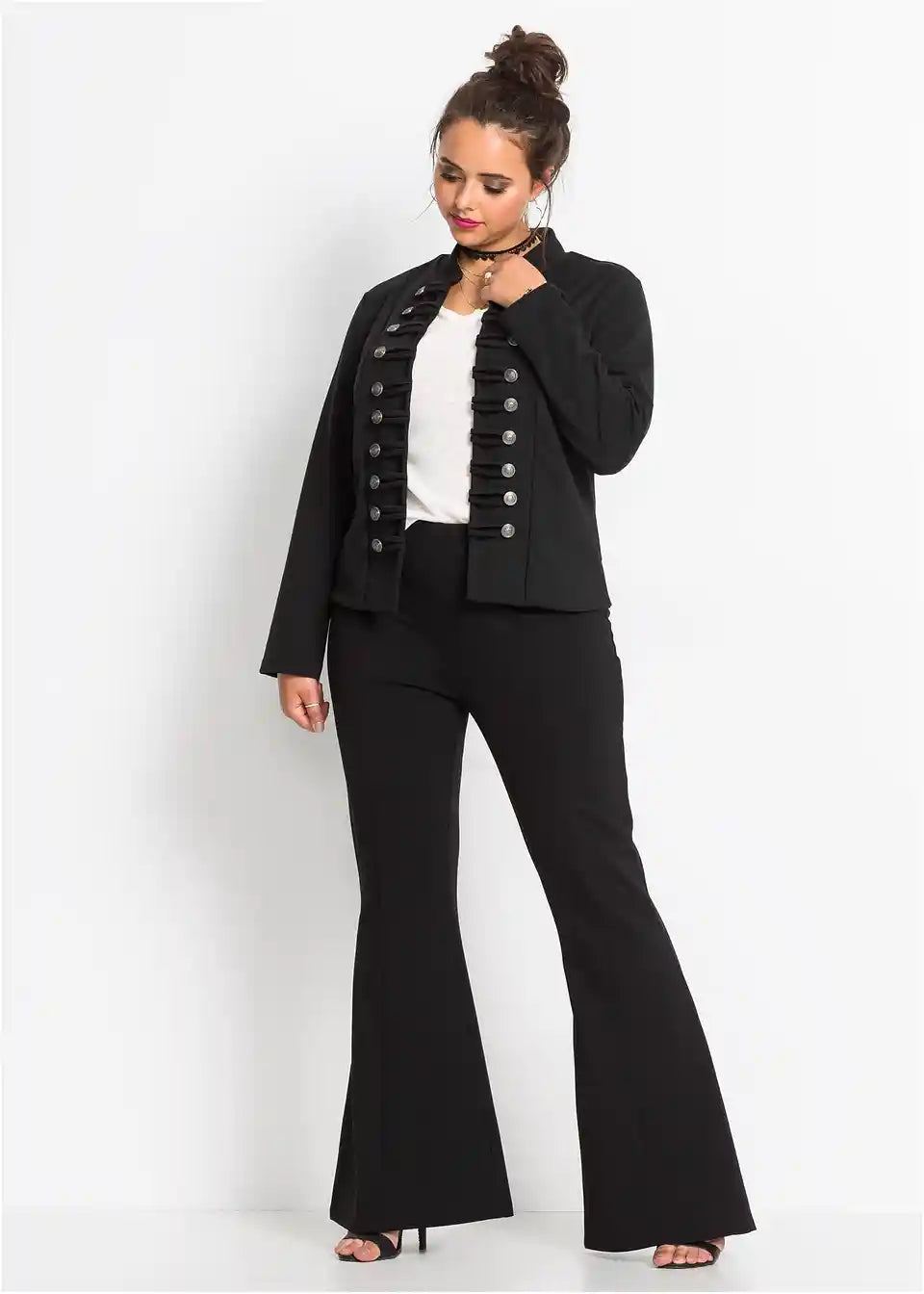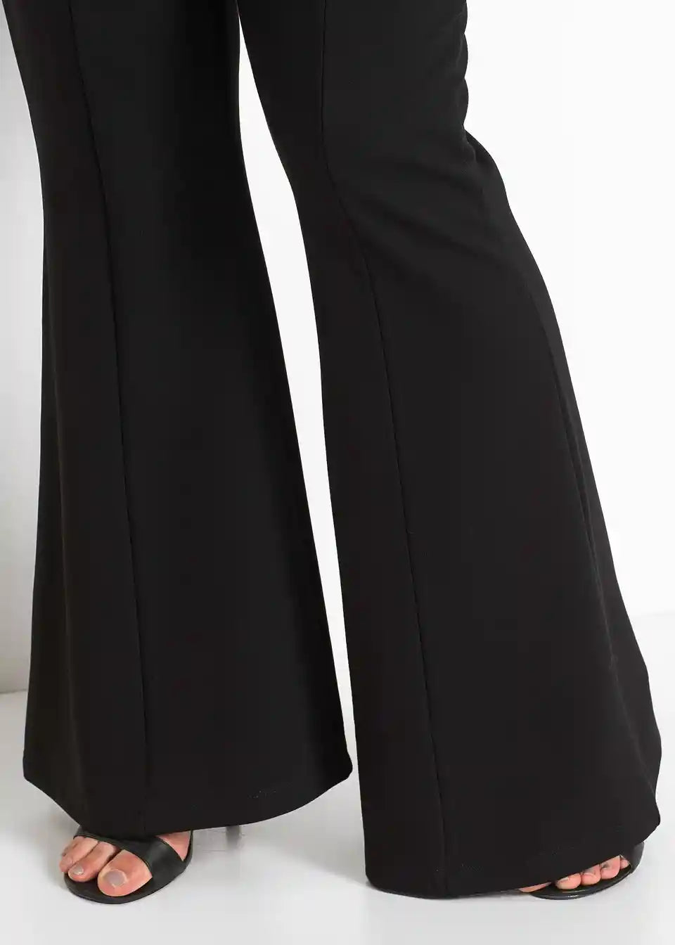 Izstopajte in pustite vtis s temi ultra trendovskimi hlačami. Širok zvonec jih naredi za absolutno najljubši kos za super stilski videz. Zgornji del se tesno prilega in poudari širši spodnji del hlačnic. Dekorativen delitveni šiv na stegnu in diskreten pas z elastiko poskrbita za odlično prileganje.