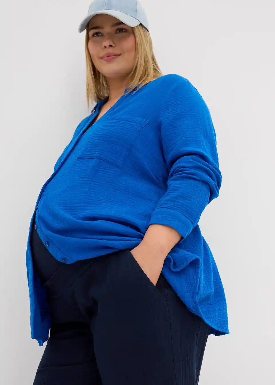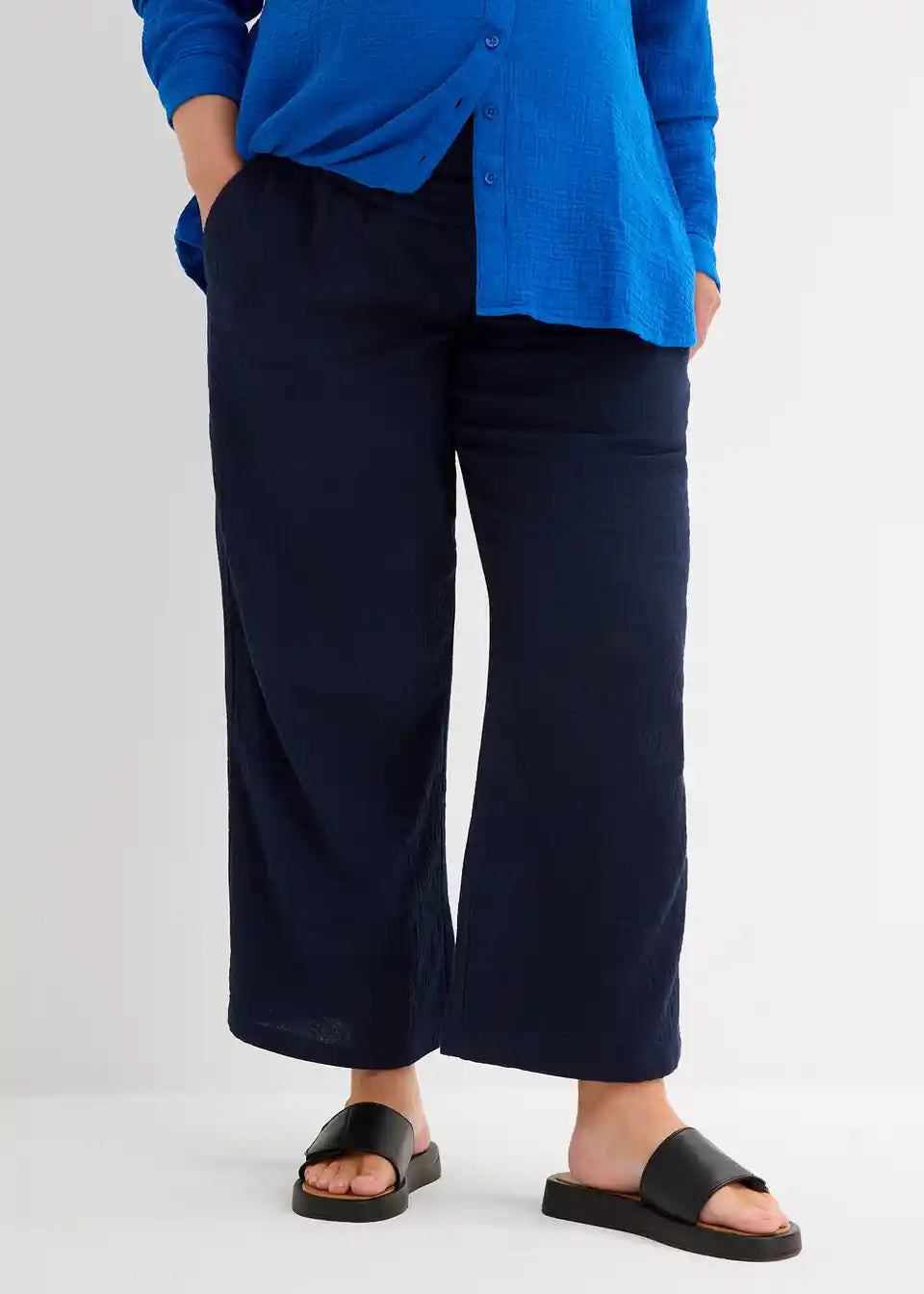 Nosečniške hlače iz čistega bombažnega muslina v udobnem kroju