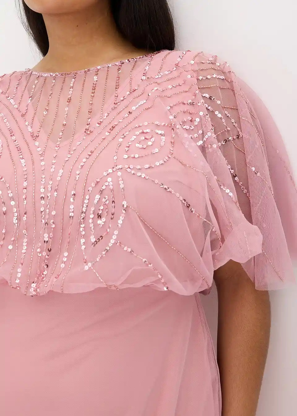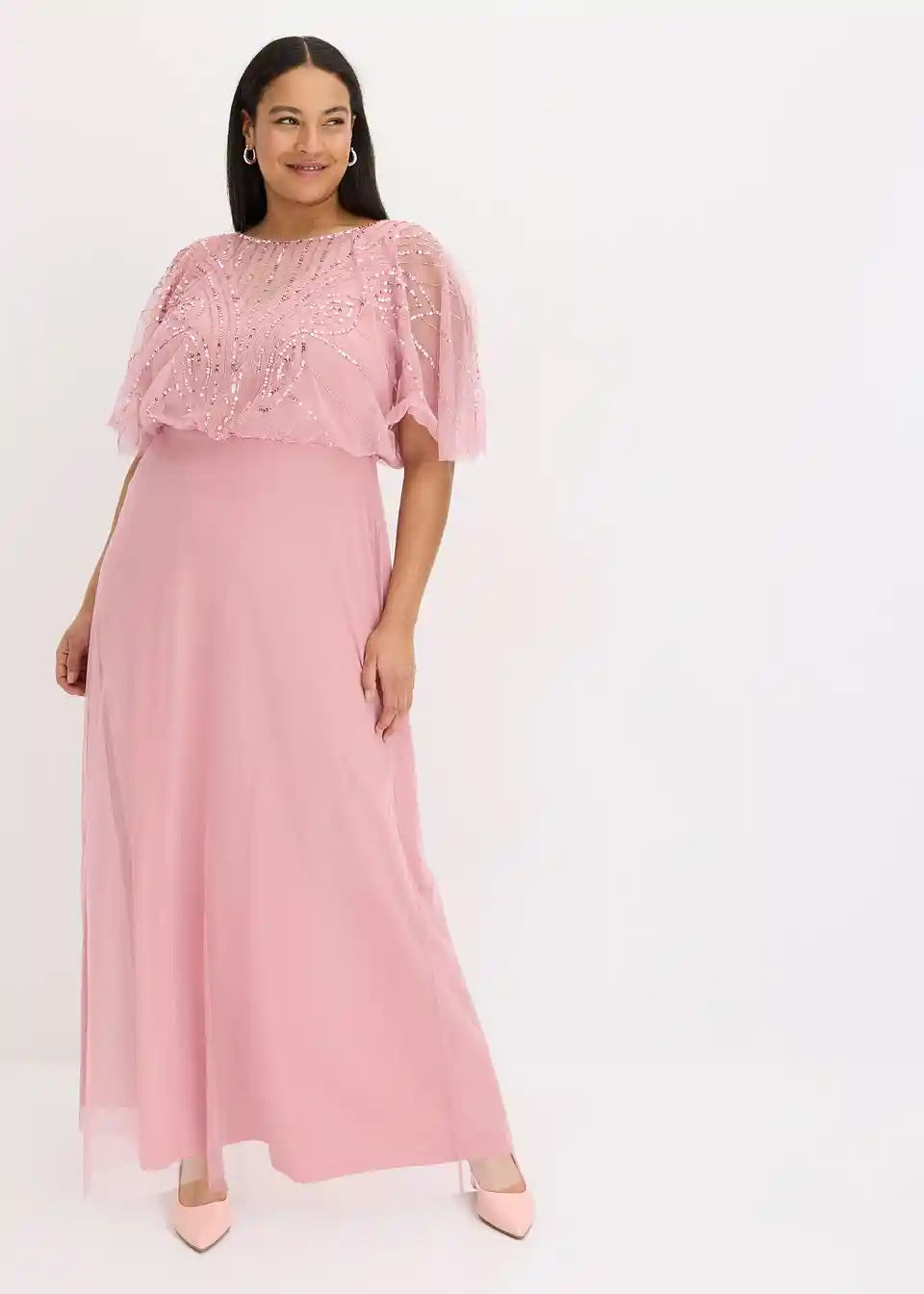 Klasična in ženstvena: večerna obleka v maksi dolžini iz finega tila z vezenjem s bleščicami