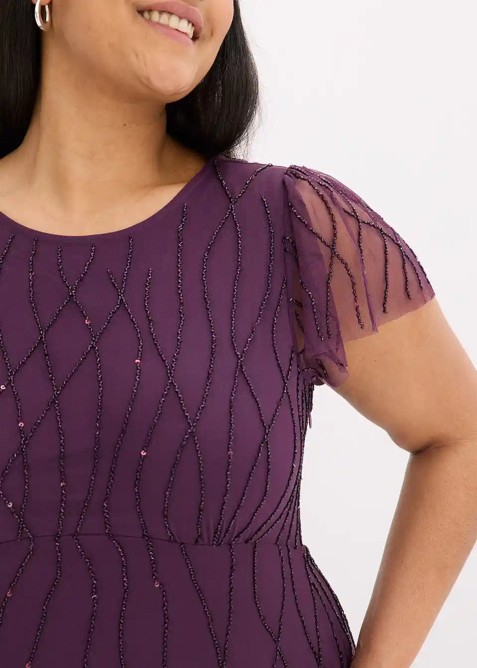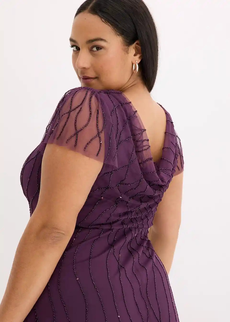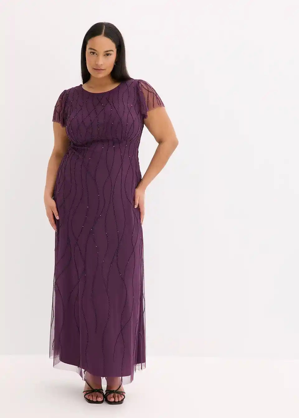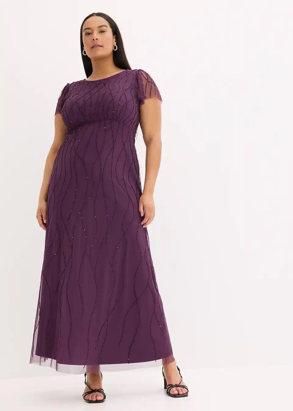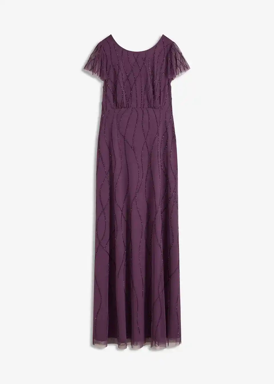 Moderna in ženstvena: večerna obleka v maksi dolžini iz nežnega tila z vezenjem iz biserov