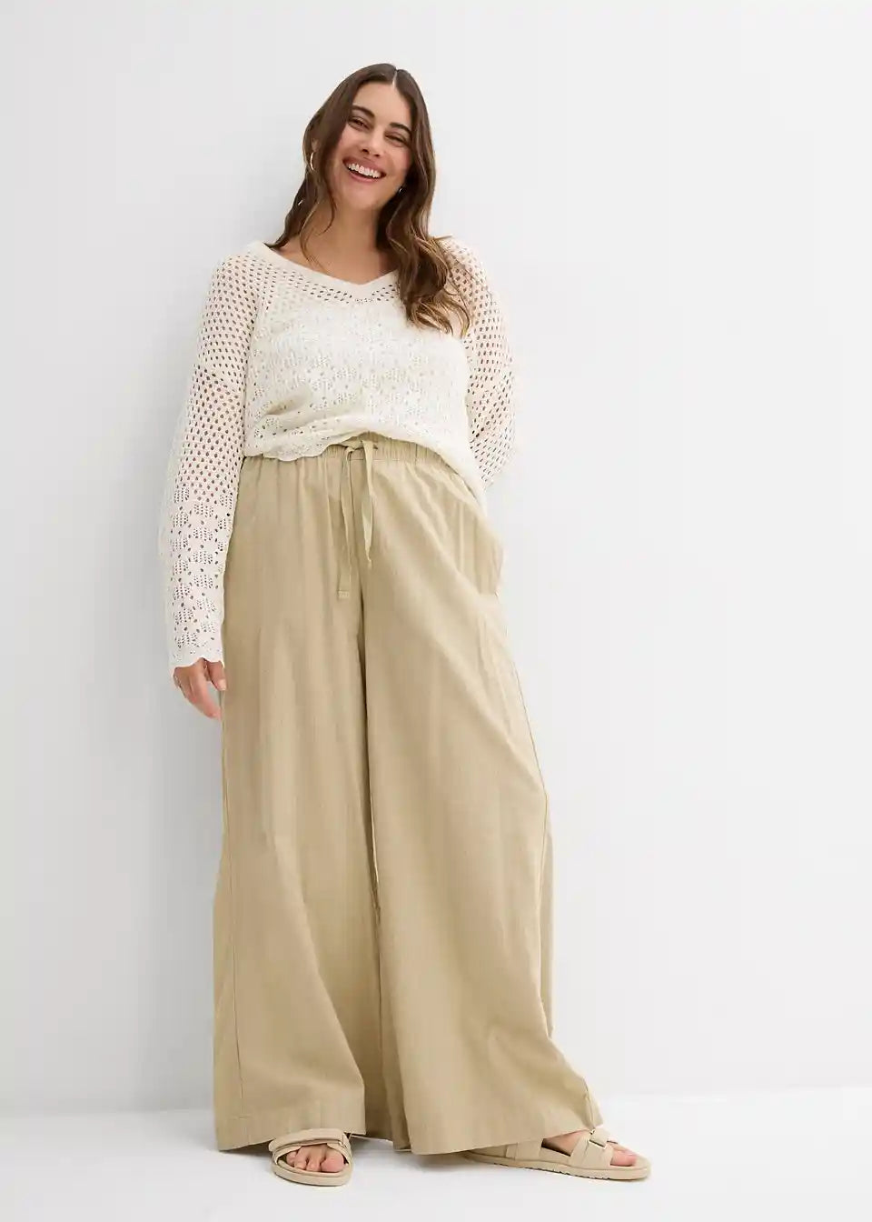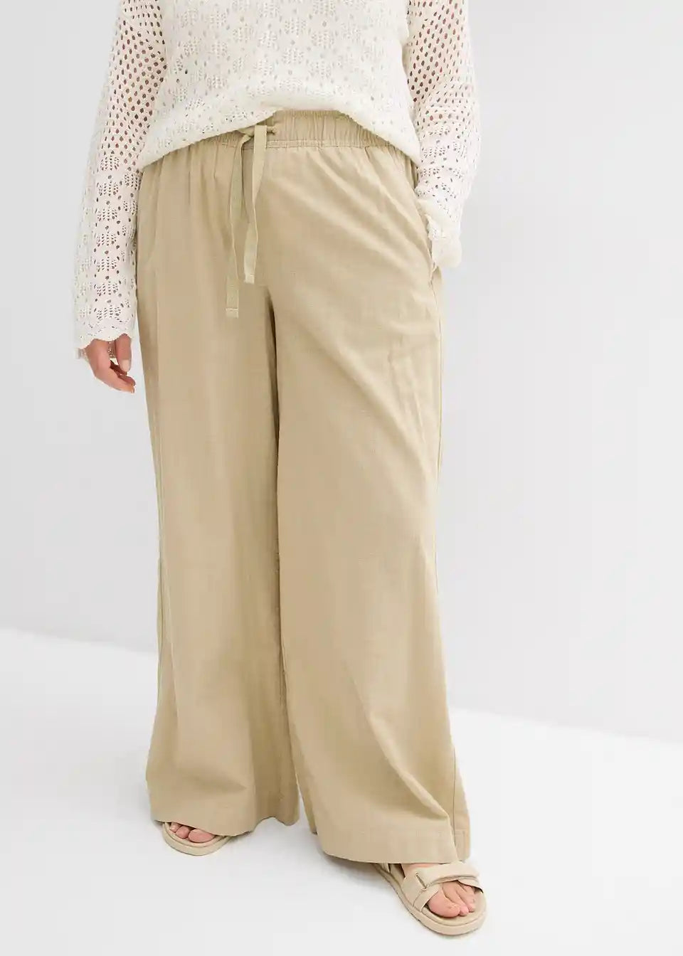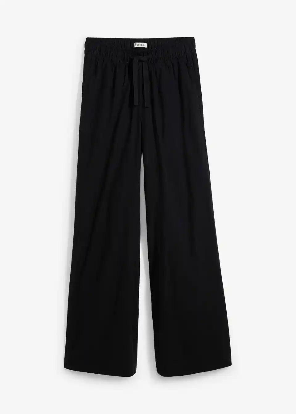 Moderne hlače iz fine strukturirane bombažne tkanine z širokimi hlačnicami