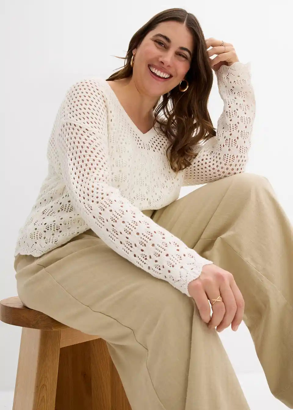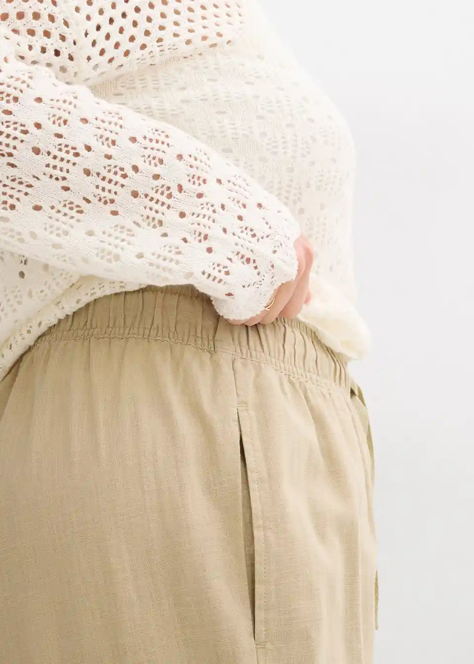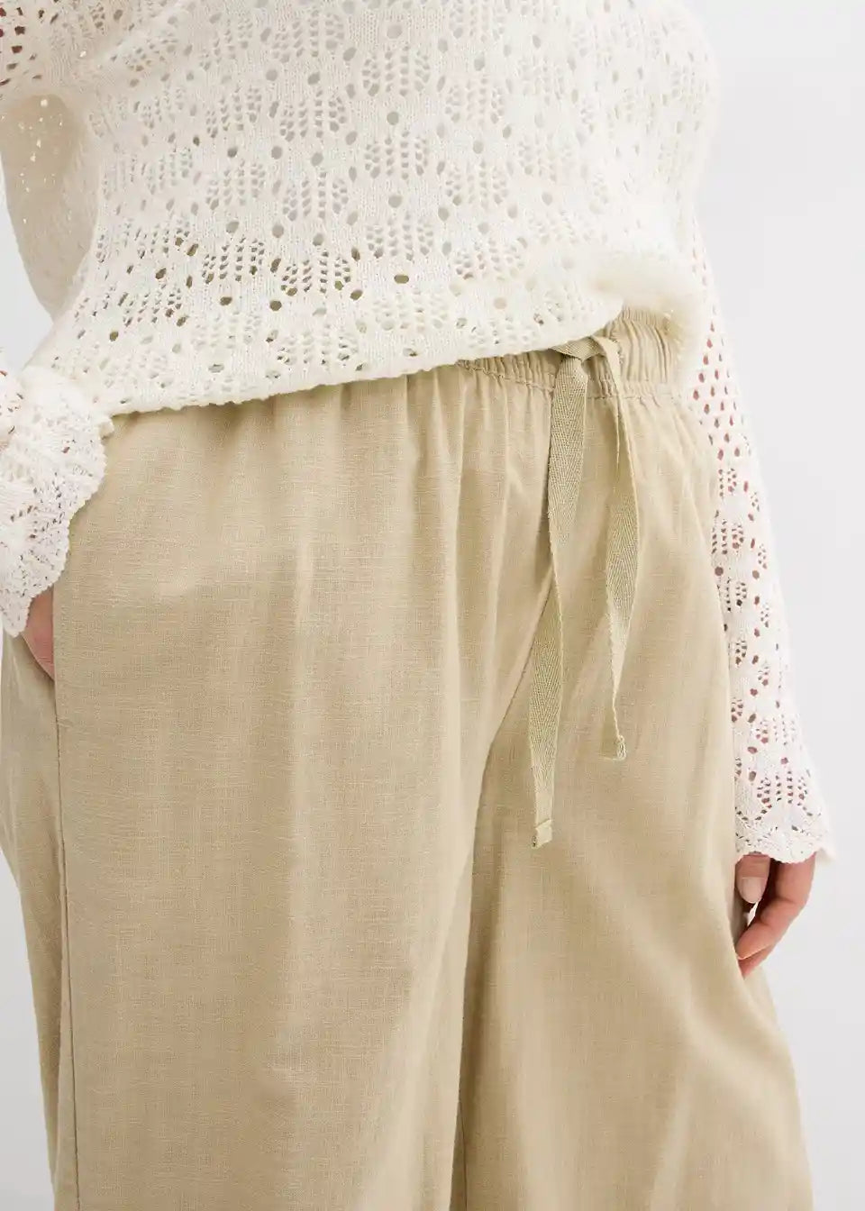 Moderne hlače iz fine strukturirane bombažne tkanine z širokimi hlačnicami