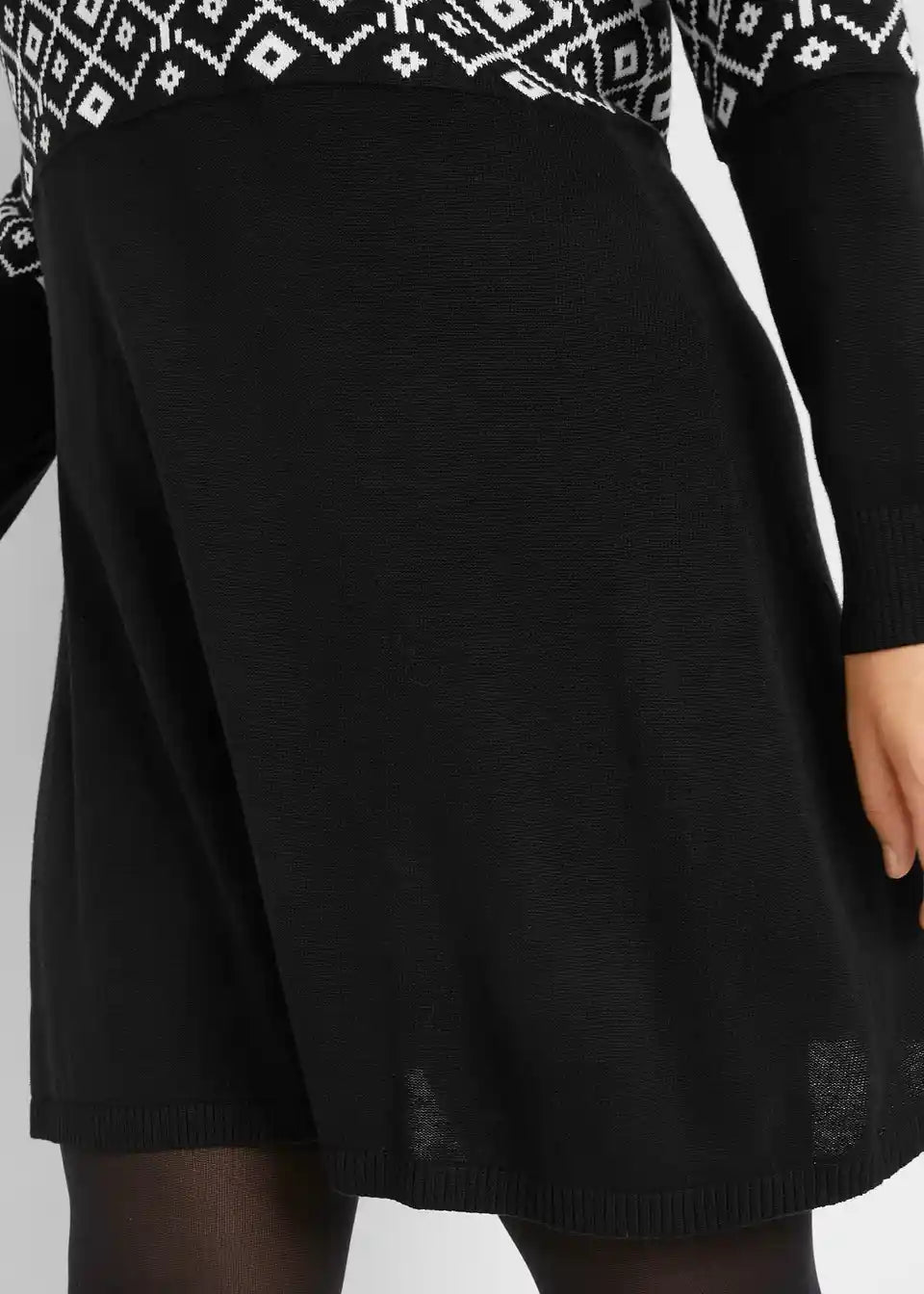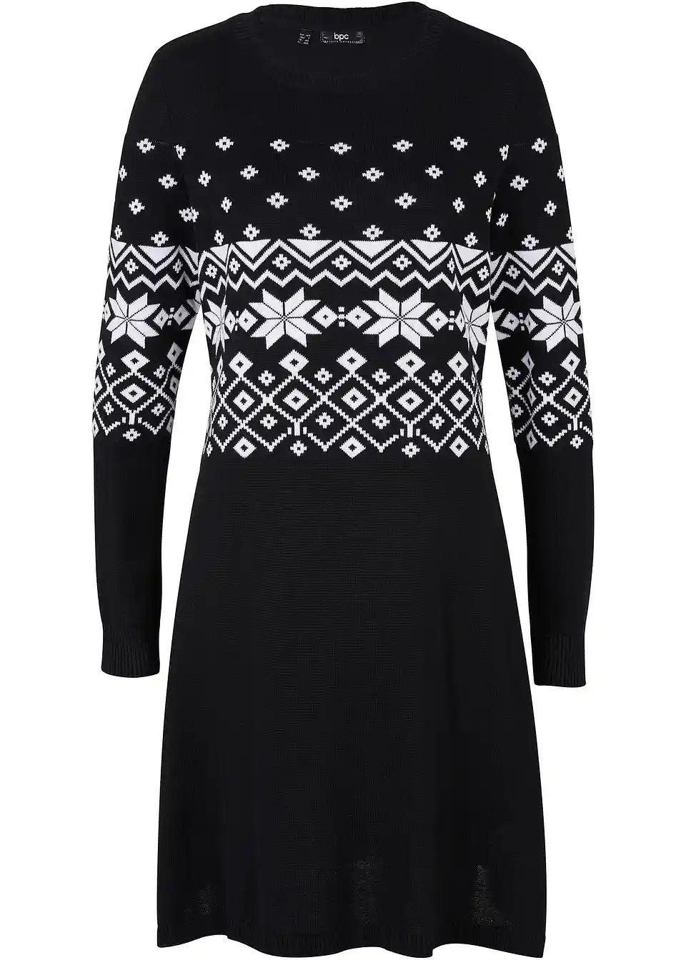 Postavi prijazna pletena obleka z norveškim vzorcem in razširjenim krilom