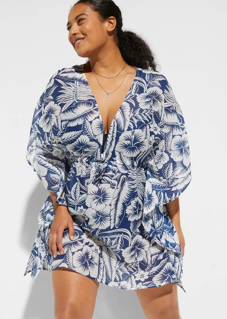 Čudovita plažna tunika z V-izrezom in vezalko