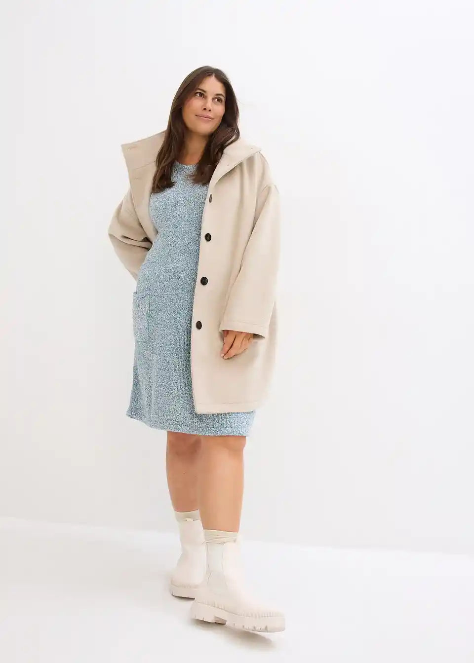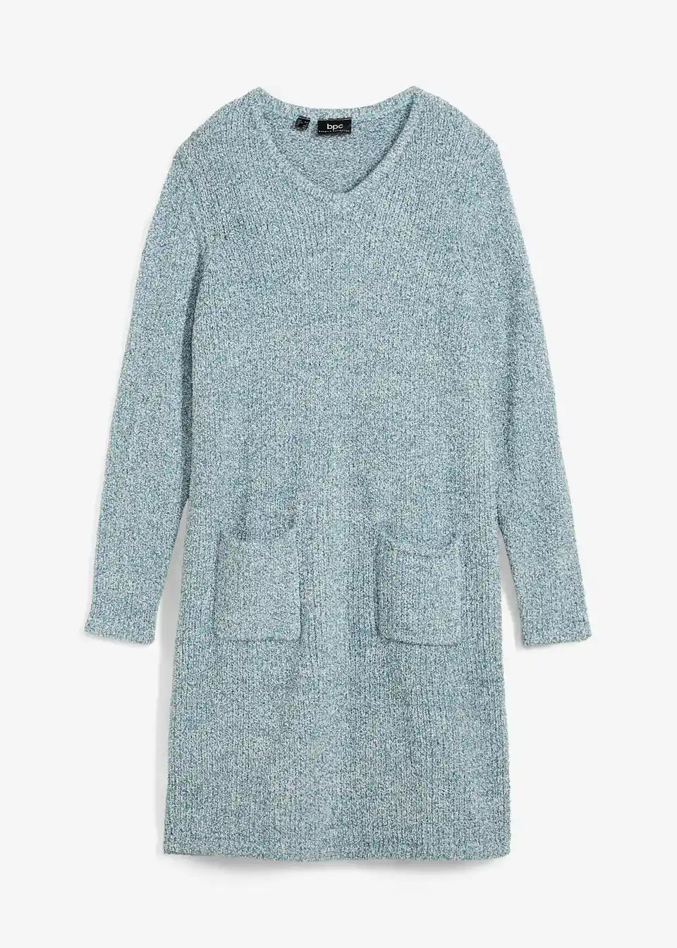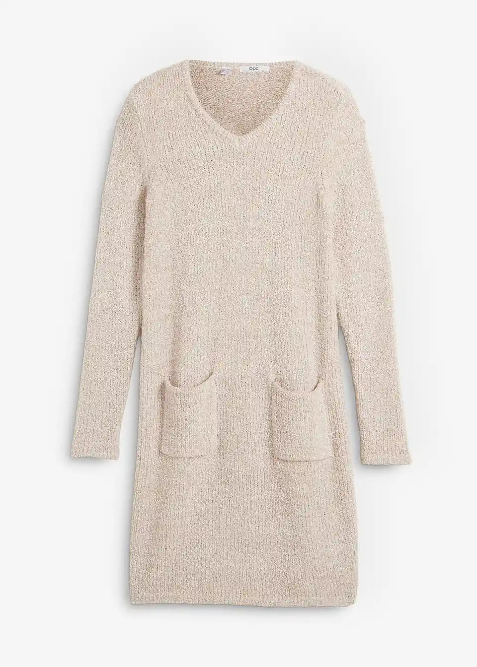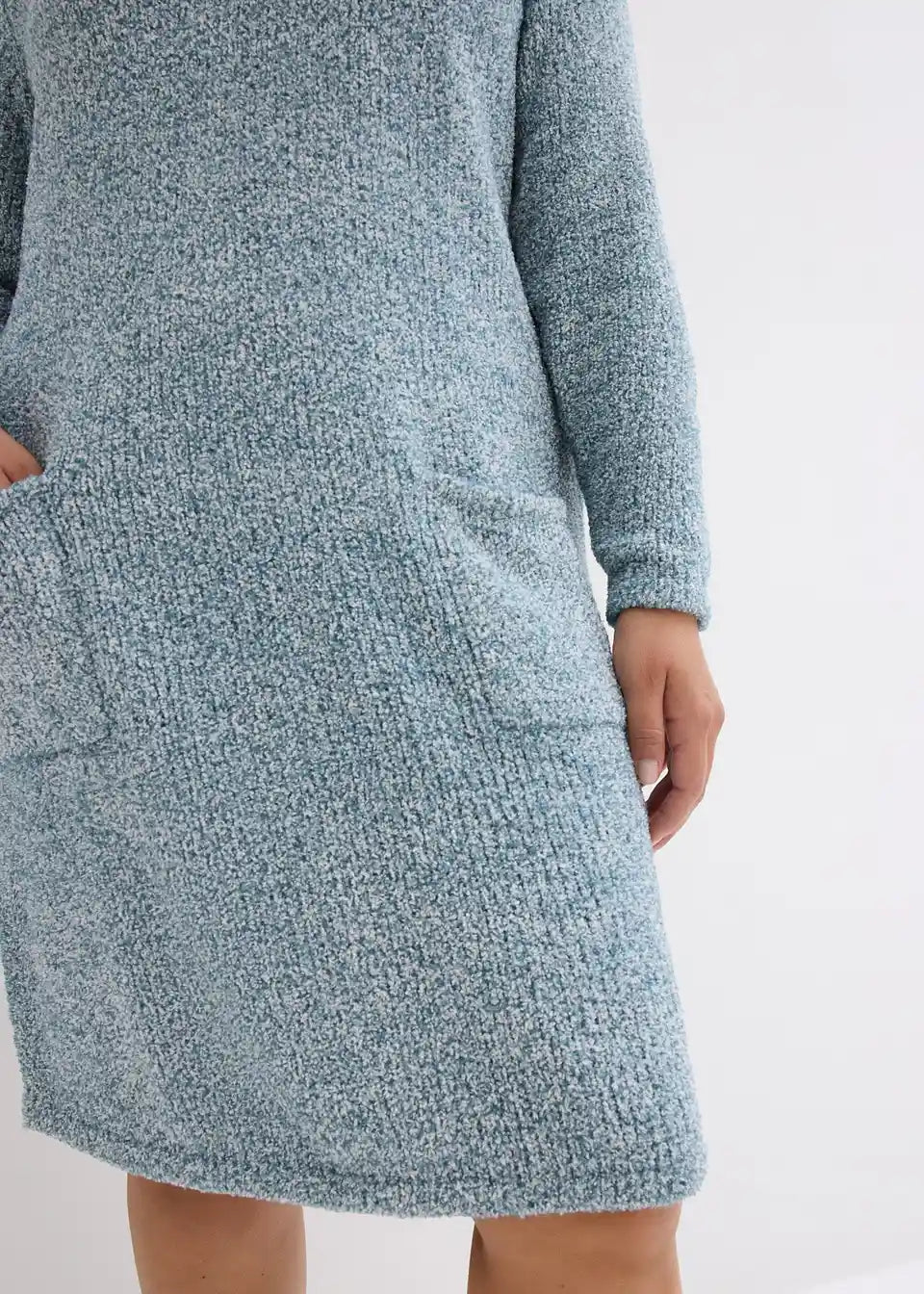 Prijetno puhasto pleteno flis obleko z žepi za udobno funkcionalnost