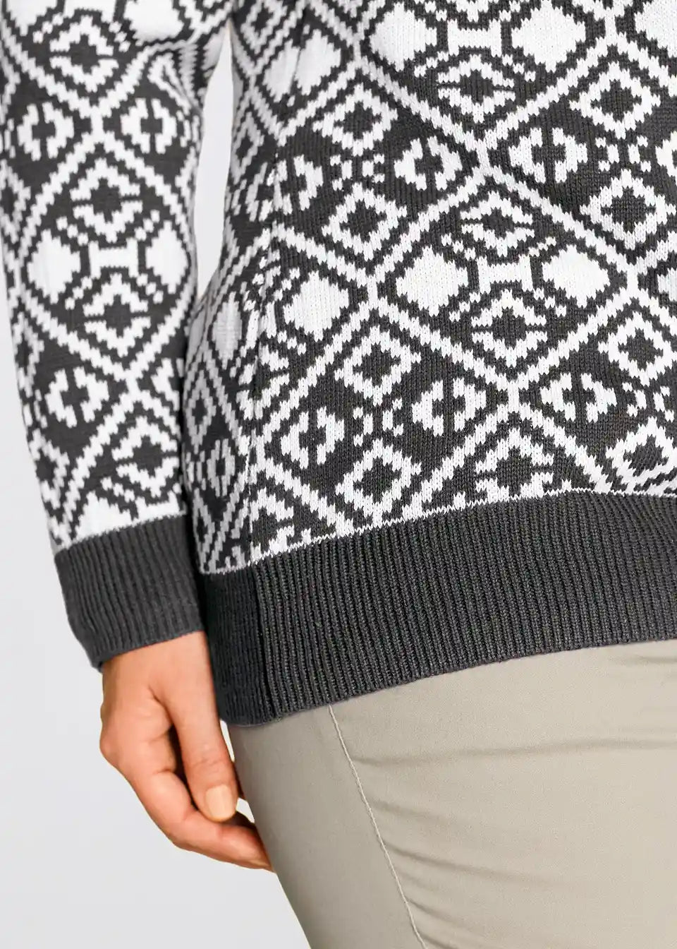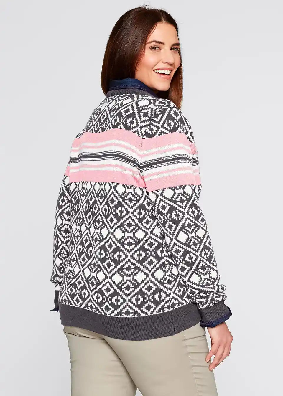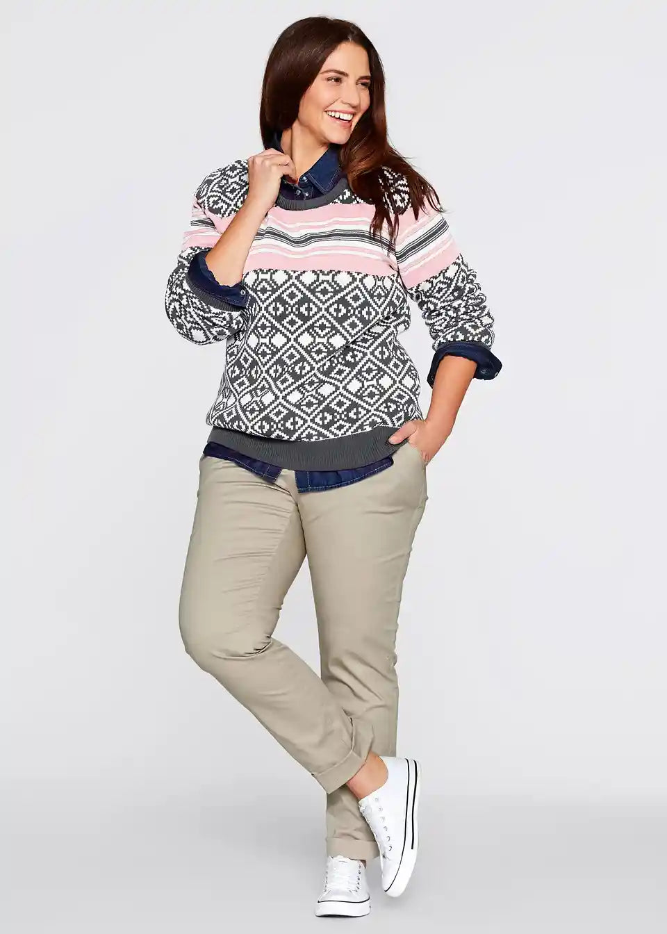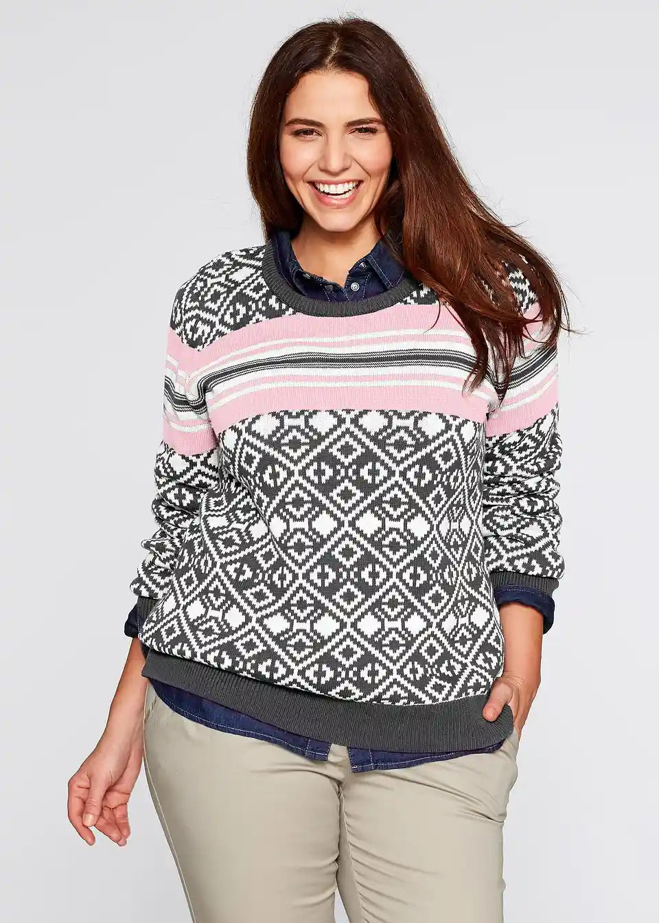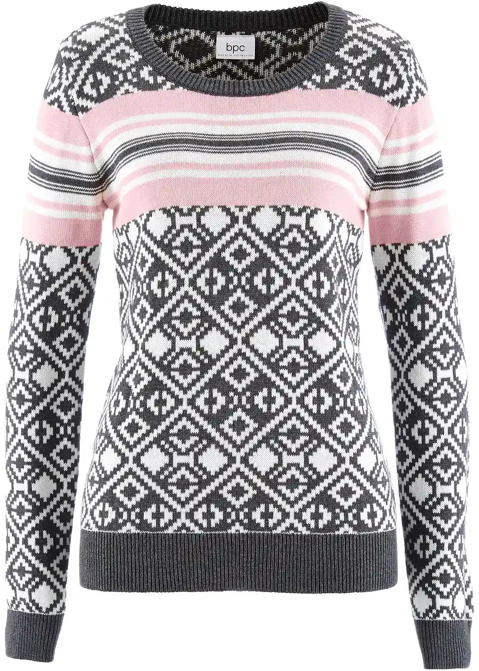 Ta privlačen pulover iz kolekcije bpc je praktičen spremljevalec za prosti čas. Narejen je iz čistega bombaža in prepriča svojo nosilko z različnimi vzorci. Fine rebraste obrobe zagotavljajo dober oprijem. Praktičen pulover za vsak dan se dobro ujema s športnimi hlačami, kot so kavbojke, hlače cargo ali chino hlače.