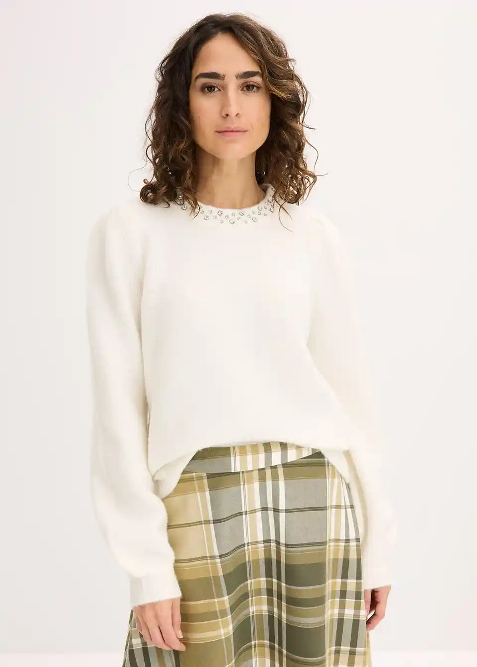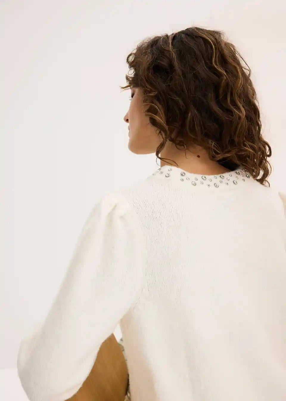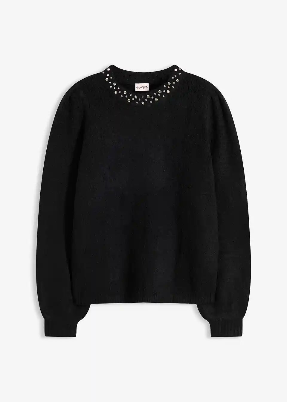Pulover iz puhastega materiala z okraskom z bleščicami