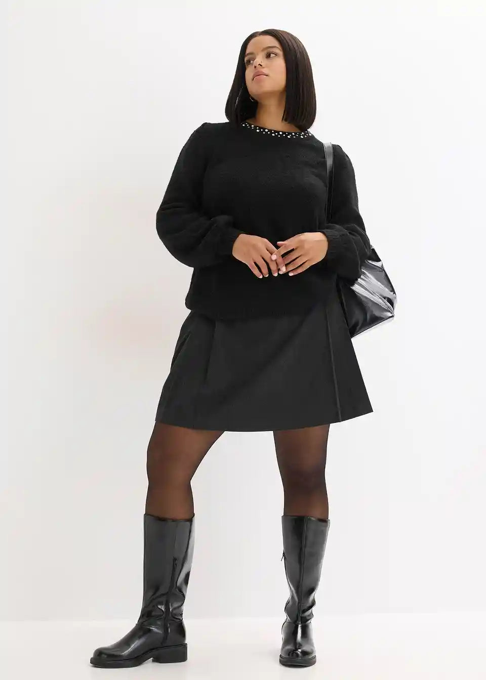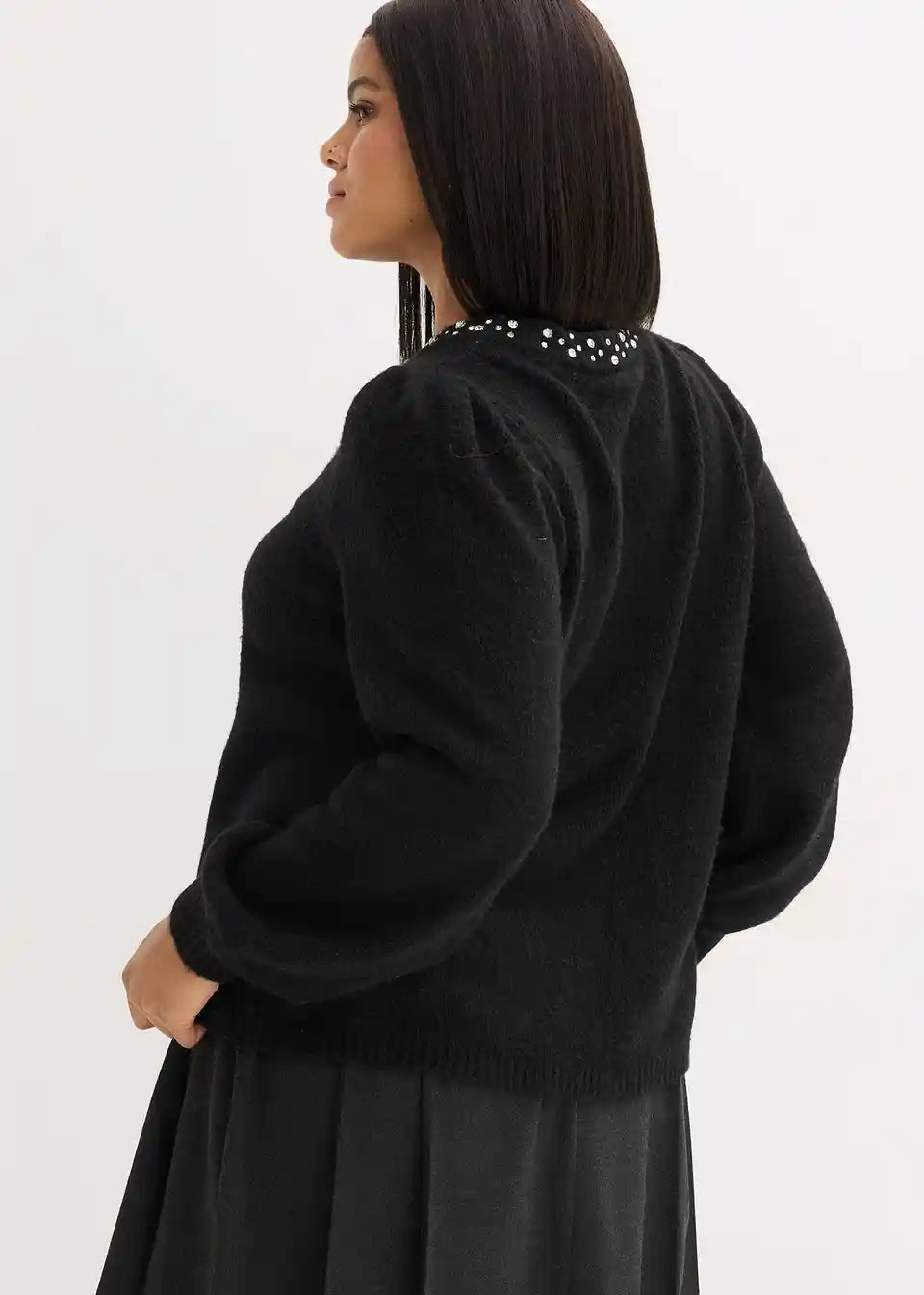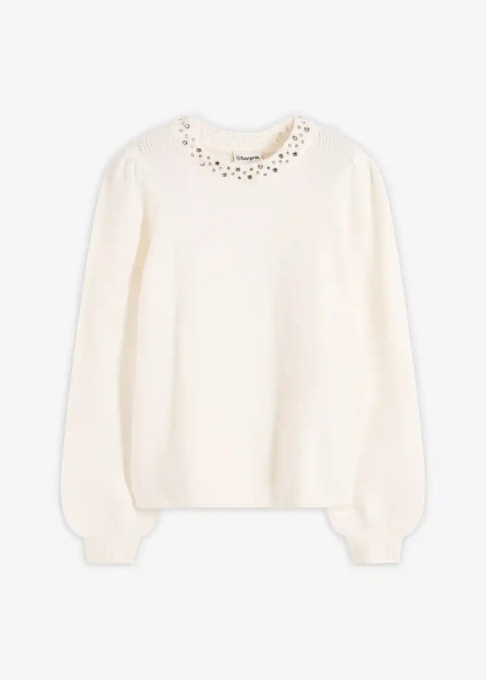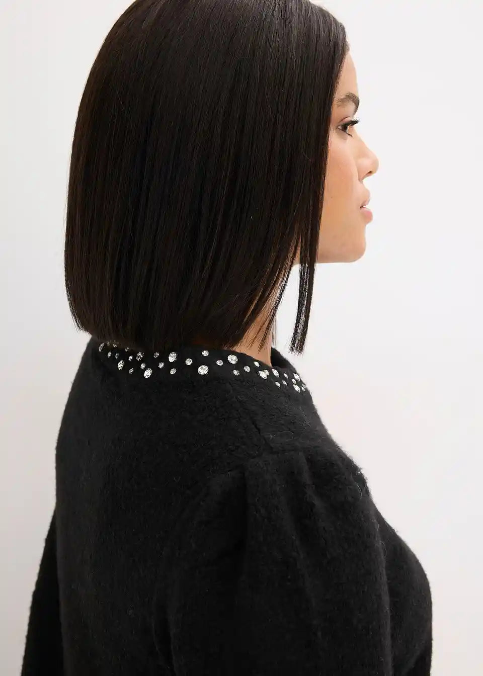 Pulover iz puhastega materiala z okraskom z bleščicami