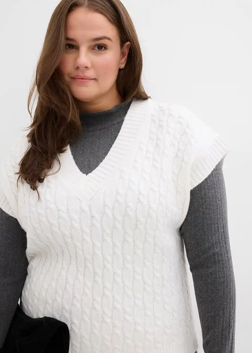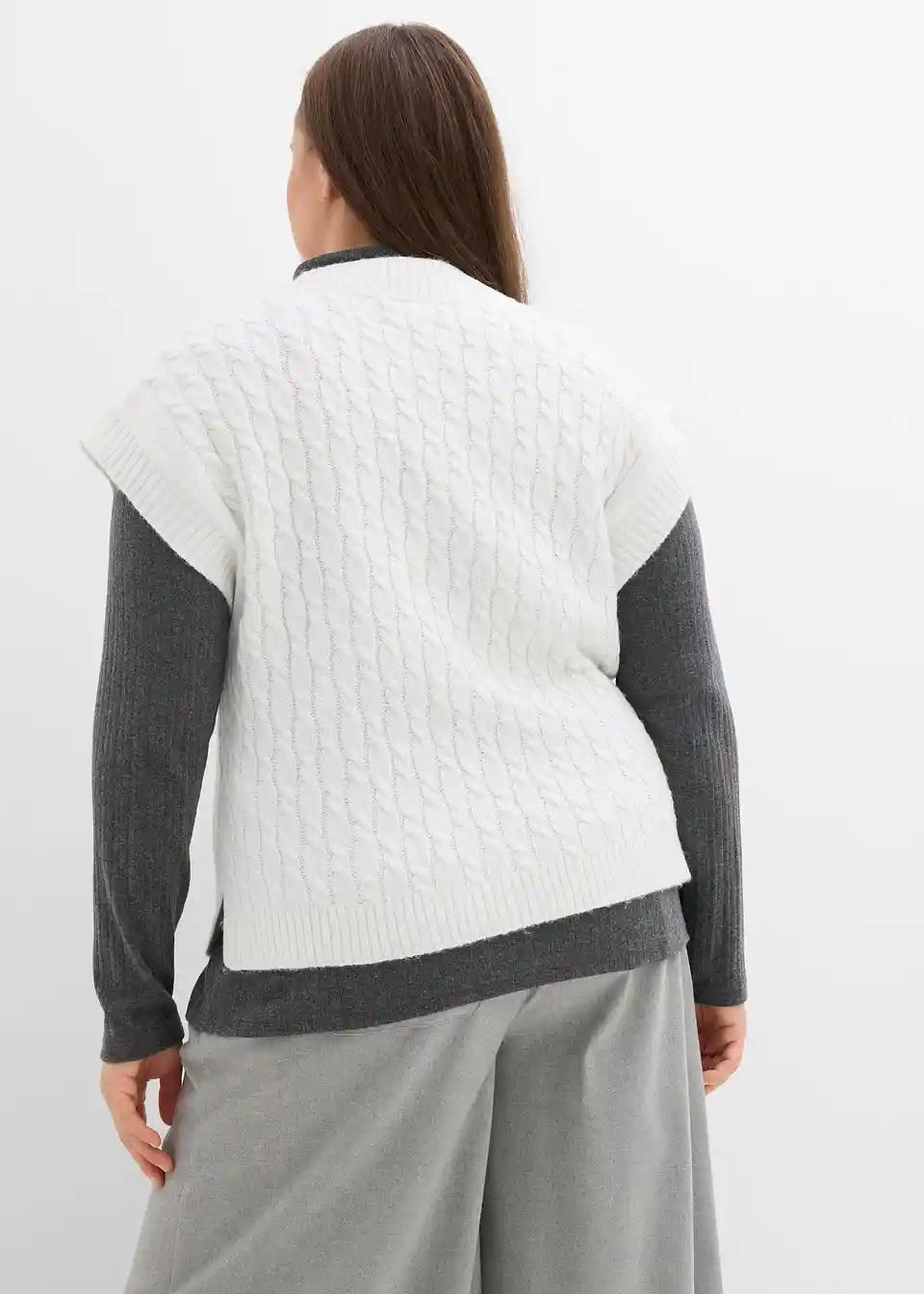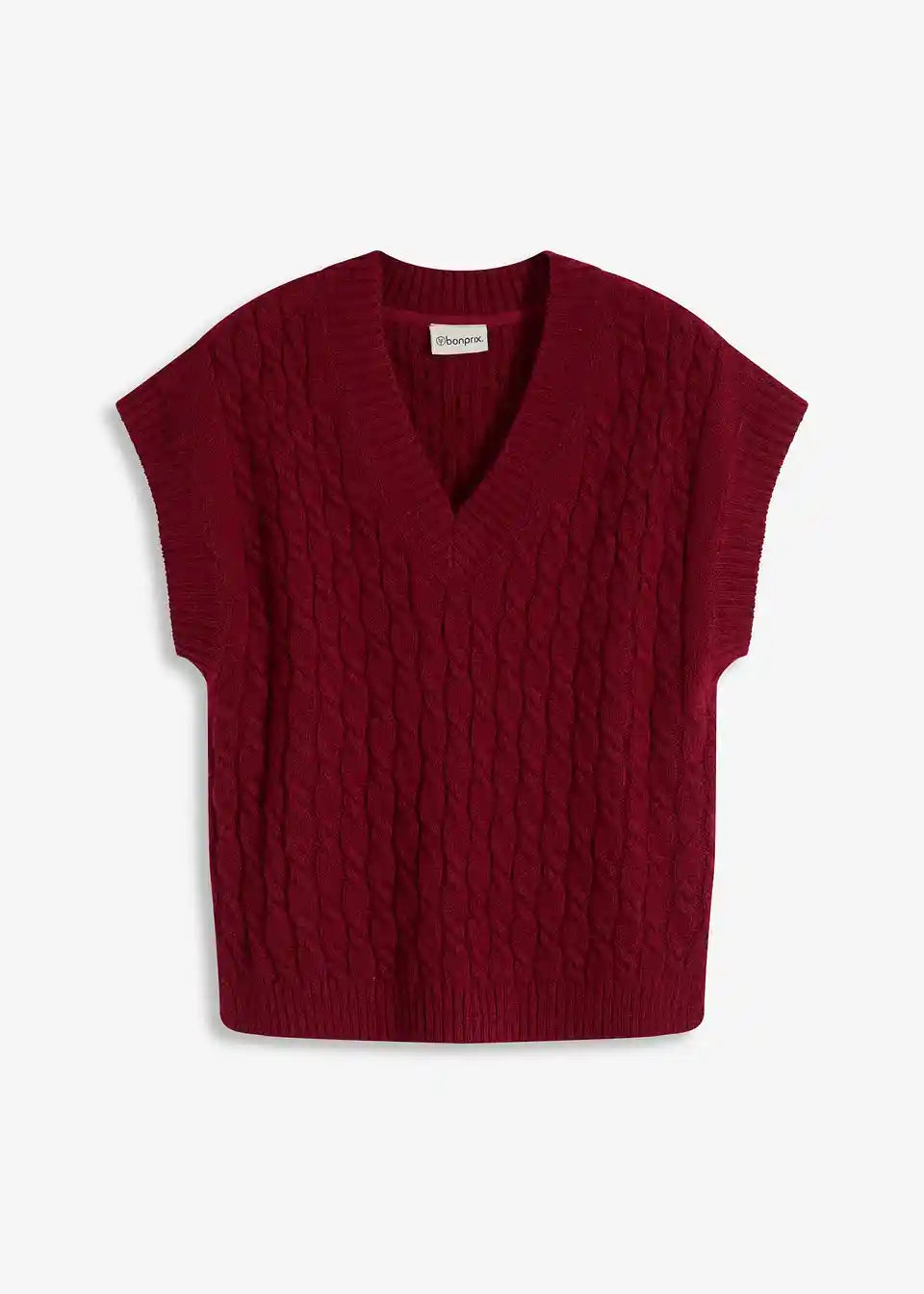 Klasičen pleten brezrokavnik s kitastim vzorcem