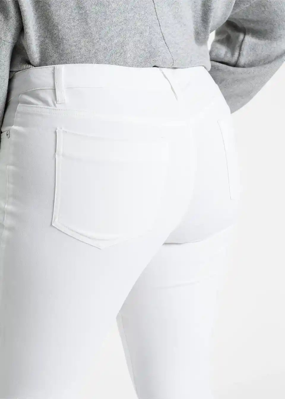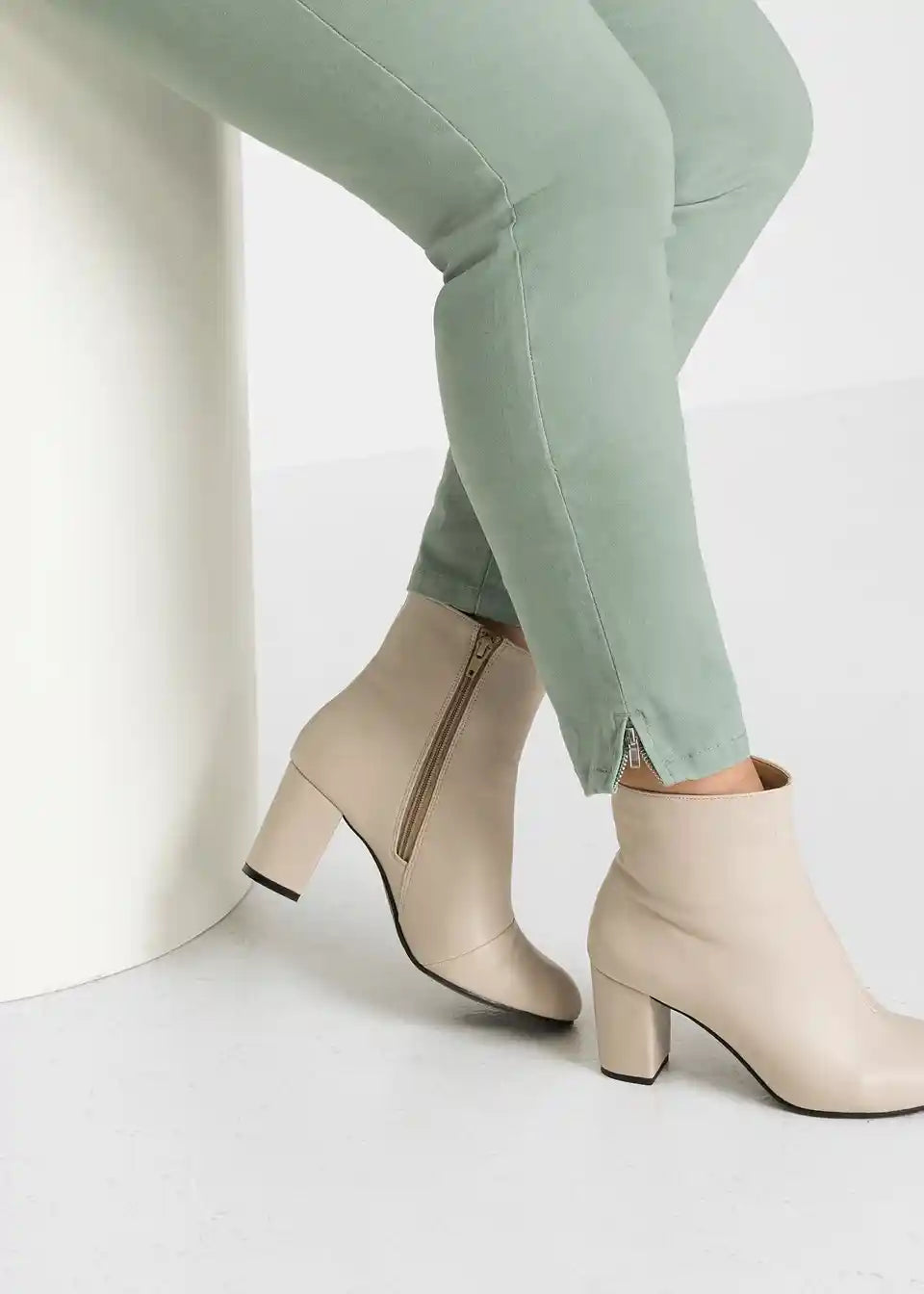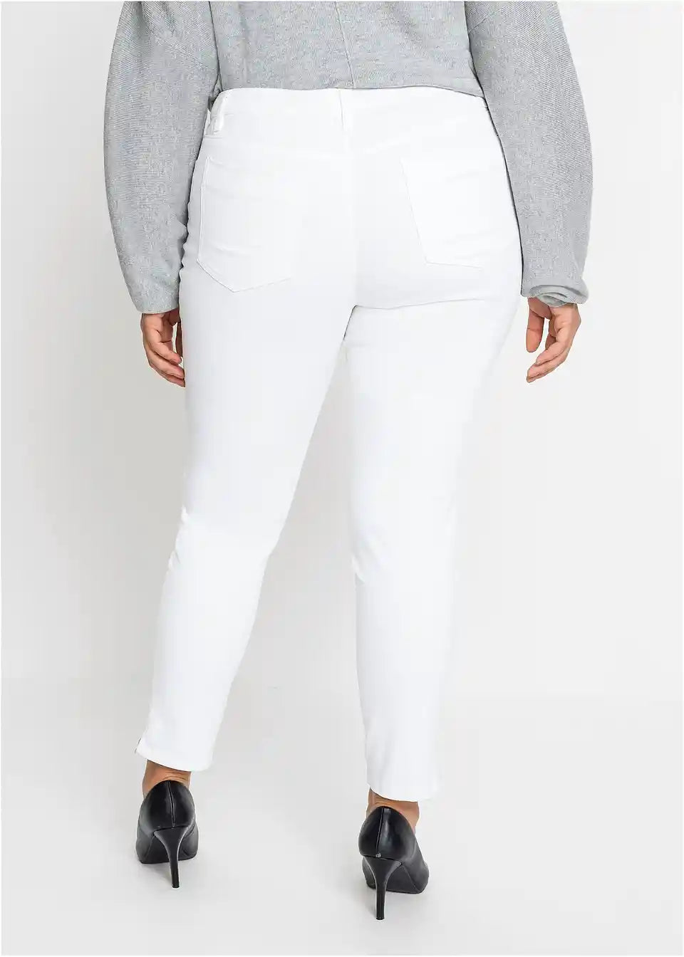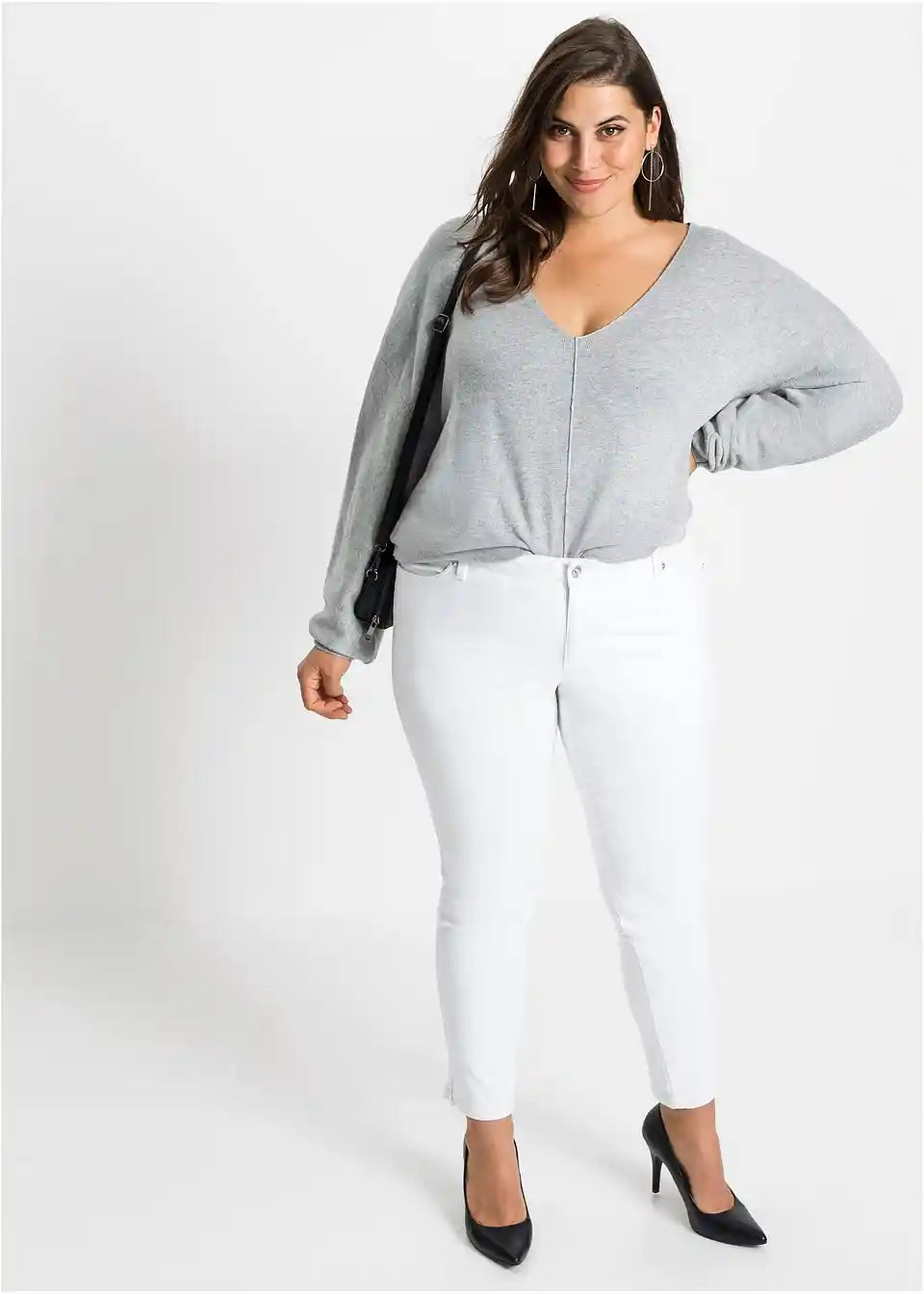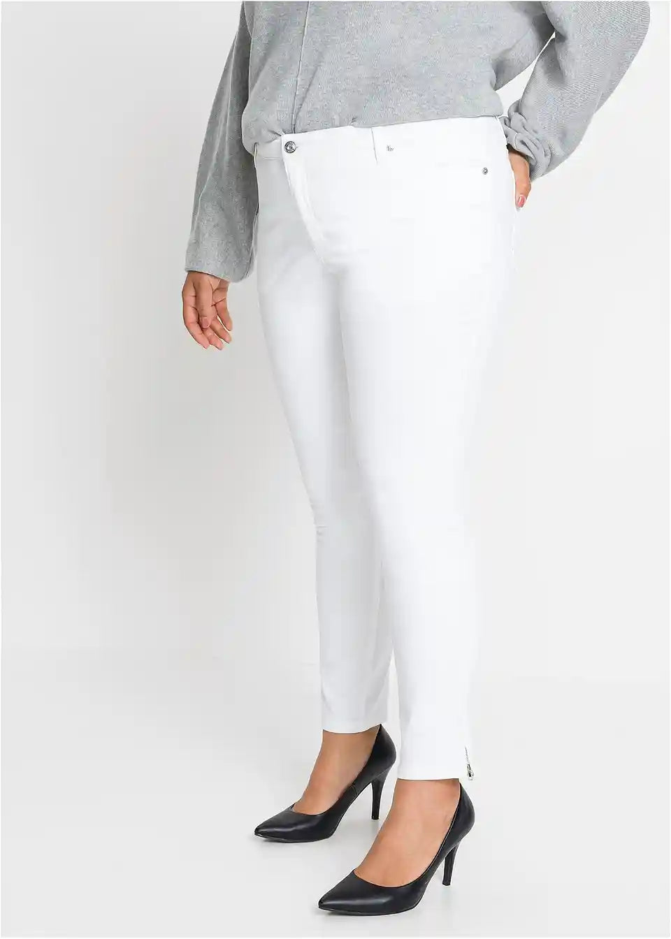 Ozko krojene raztegljive hlače s štirimi žepi navdušijo s svojo vsestranskostjo v kombiniranju. Majhne zadrge na zaključku hlačnic poskrbijo za modni poudarek. Privlačen model znamke BODYFLIRT predstavlja osnovo za raznolike stajlinge. Elegantni videz je mogoče doseči s srajco, suknjičem in čevlji s peto. Sproščen pridih pa hlače pridobijo s prostorno pleteno jopico v oversize kroju in kovinskimi škornji. Za igriv čar poskrbi tunika s pisanimi vzorci.