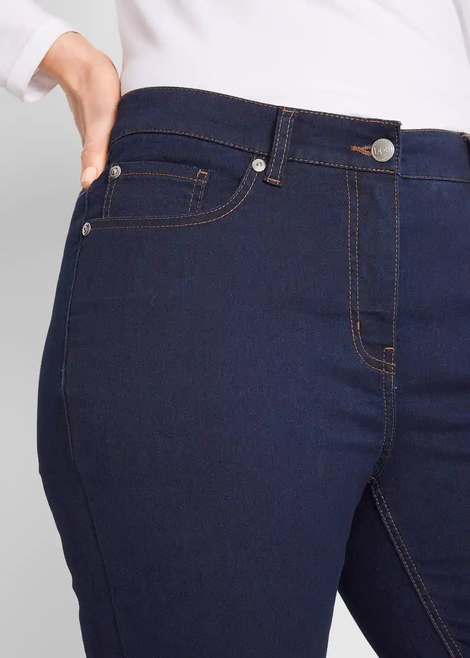 Raztegljive kavbojke s prožnim vstavkom na hrbtni strani pasu v Slim-Fit kroju