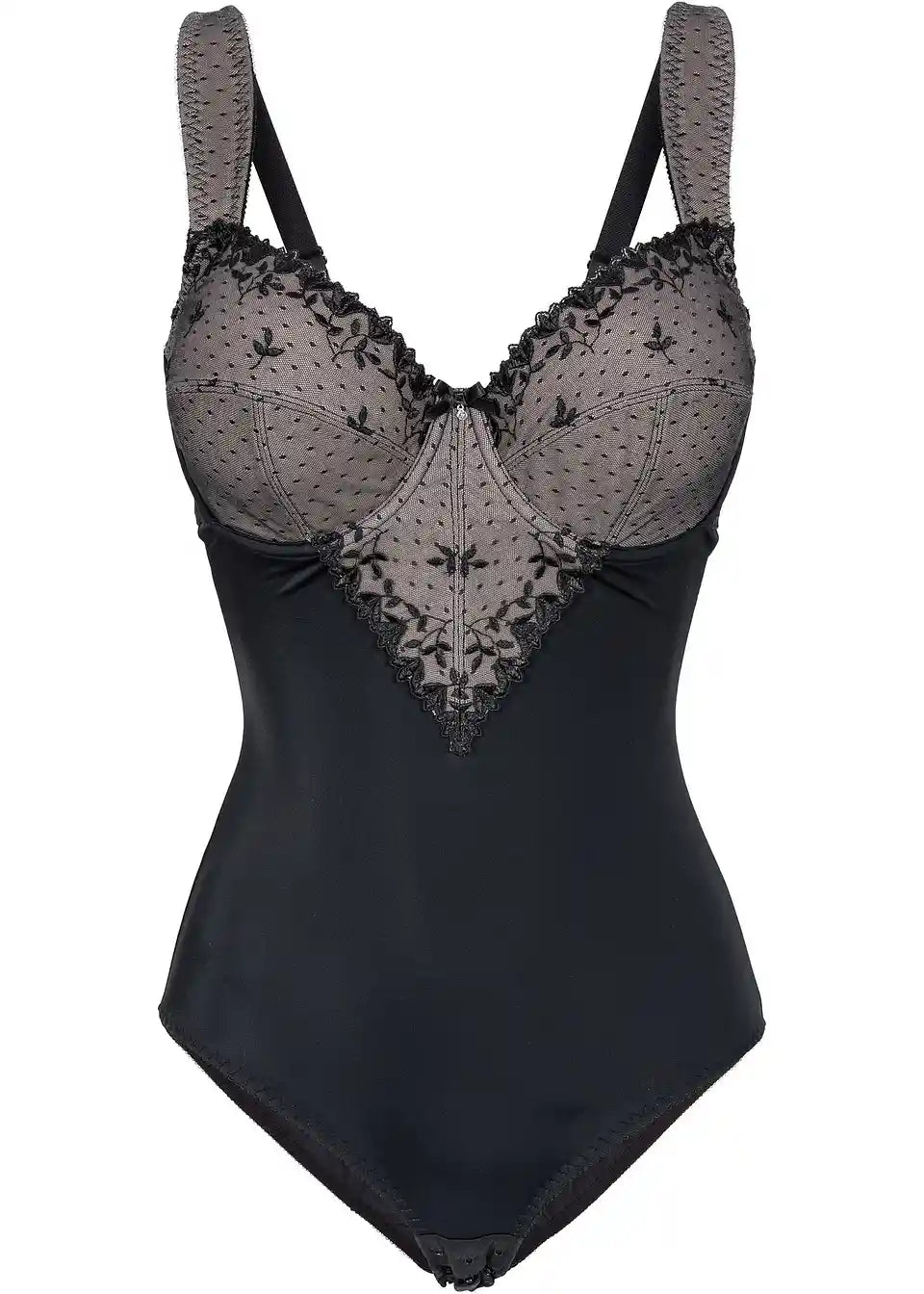 Ta Minimizer-body znamke bpc selection je prefinjeno spodnje perilo za ženske z večjim oprsjem. Zahvaljujoč posebej oblikovanim košaricam optično zmanjša prsi. Oblazinjene in nastavljive naramnice zagotavljajo visoko udobje, žica pa nudi oporo prsim. Body se na mednožju odpira s kaveljčki in zankami, na hrbtni strani pa je opremljen s tristopenjskim zapenjanjem, značilnim za modrce. Naramnice in zapenjanje so pri večjih košaricah širši. Maite Kelly priporoča: „Za žensko, ki praznuje svojo ženstveno čutnost. Ta body ima privlačnost starih hollywoodskih zvezdnic in hkrati zagotavlja neverjetno oporo. Oh la la, obvezen kos v moji omari - preprosto čudovit."