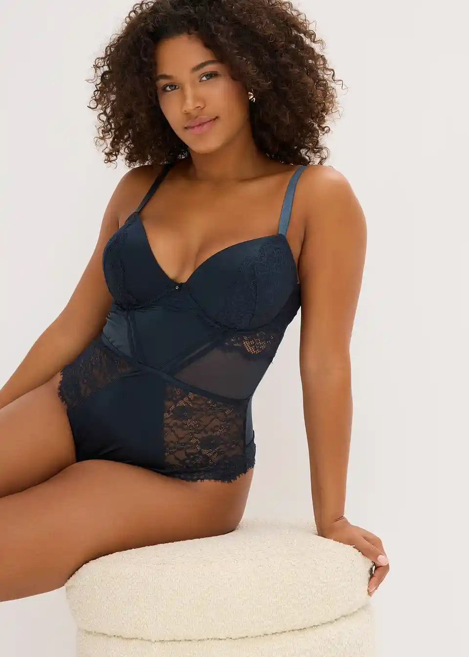 Material:zgornji material: 80% poliamid, 20% elastan, podloga: 86% poliamid, 14% elastan, čipka: 90% poliamid, 10% elastan, mreža: 92% poliamid, 8% elastan