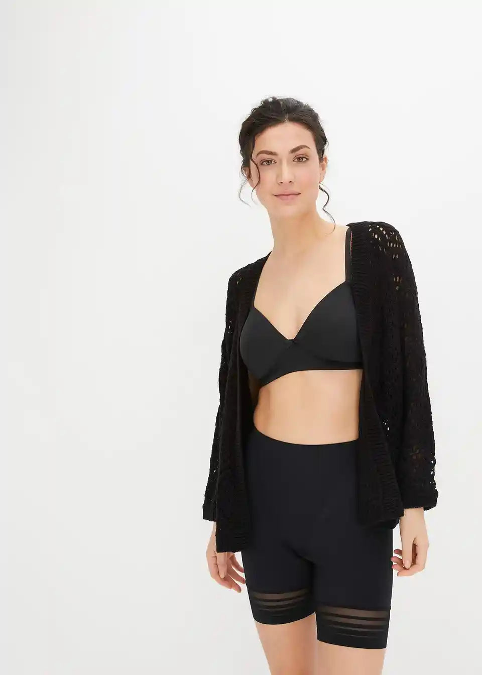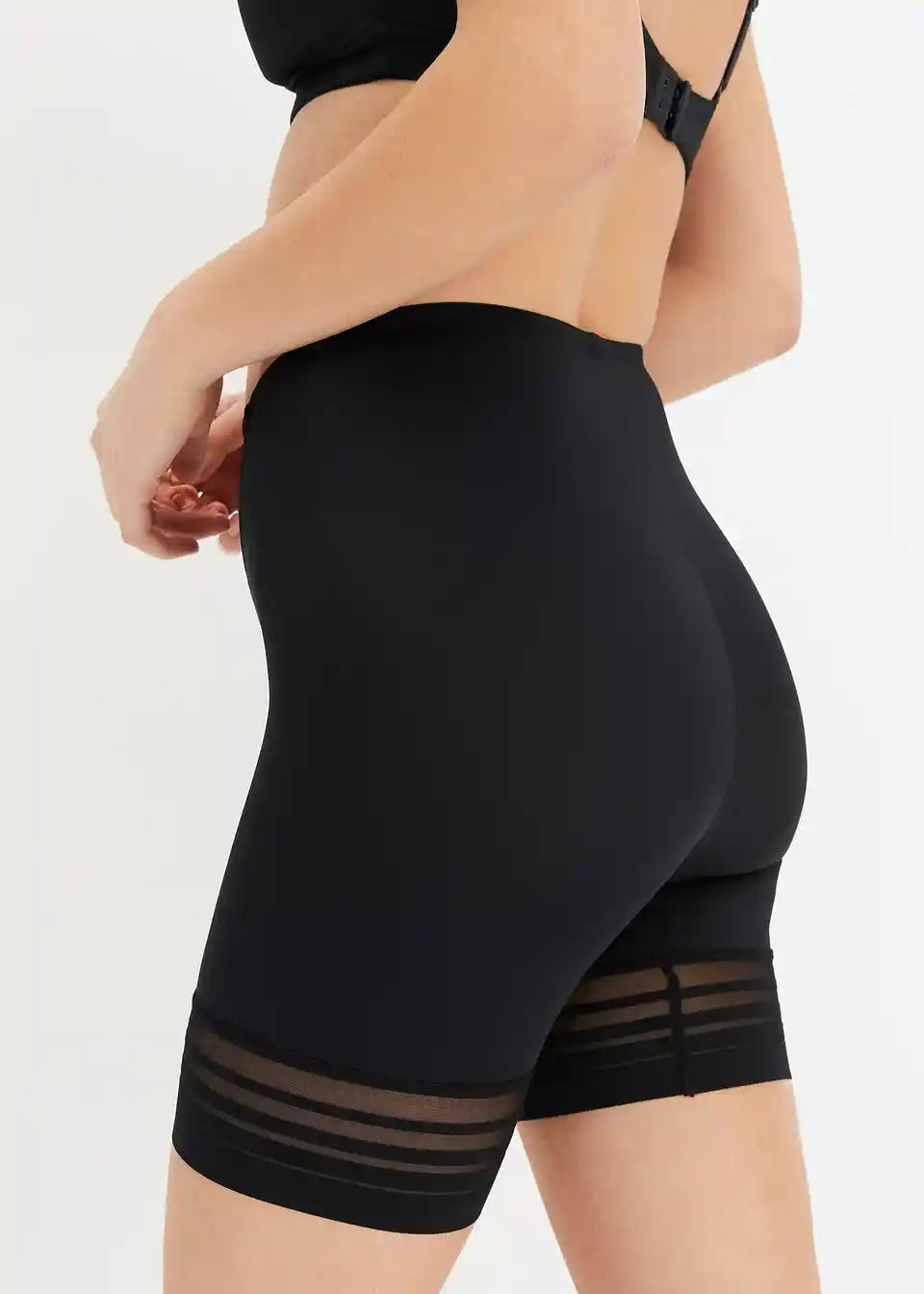 Te oblikovalne hlačke iz posebnega shaping materiala lepo poudarijo žensko postavo. Kolesarske hlačke nežno sploščijo trebuh, zožijo predel stegen in hkrati preprečujejo neprijetno drgnjenje nog. Zaradi gladke površine se Shape hlačke odlično nosijo pod hlačami, krilom ali obleko, ne da bi se opazile. Na hlačnicah imajo čipkast vzorec v črtasti optiki, pri čemer se ta lahko nekoliko razlikuje od slike, saj je vsak kos unikaten.