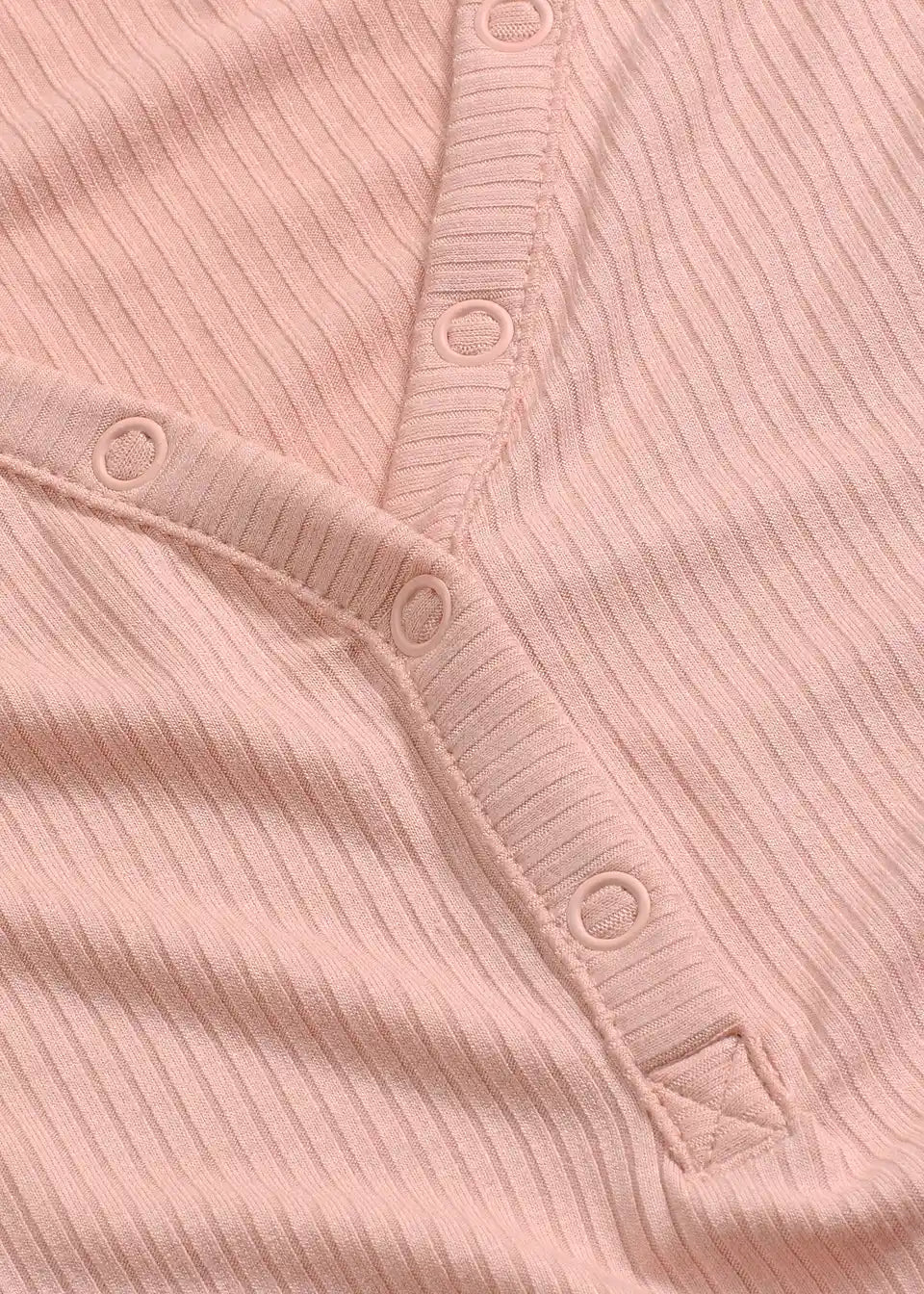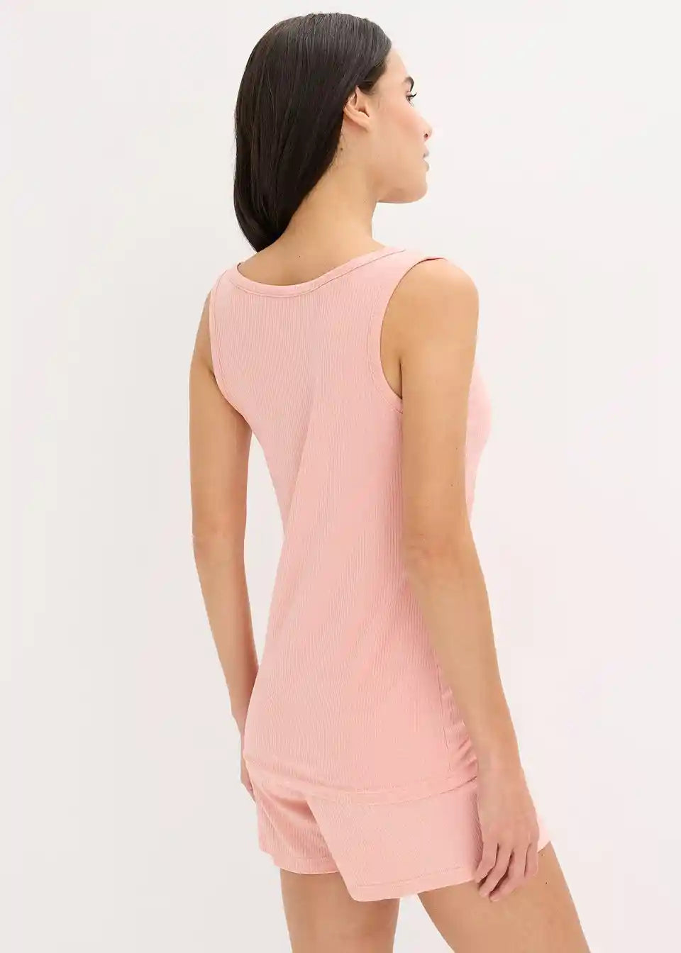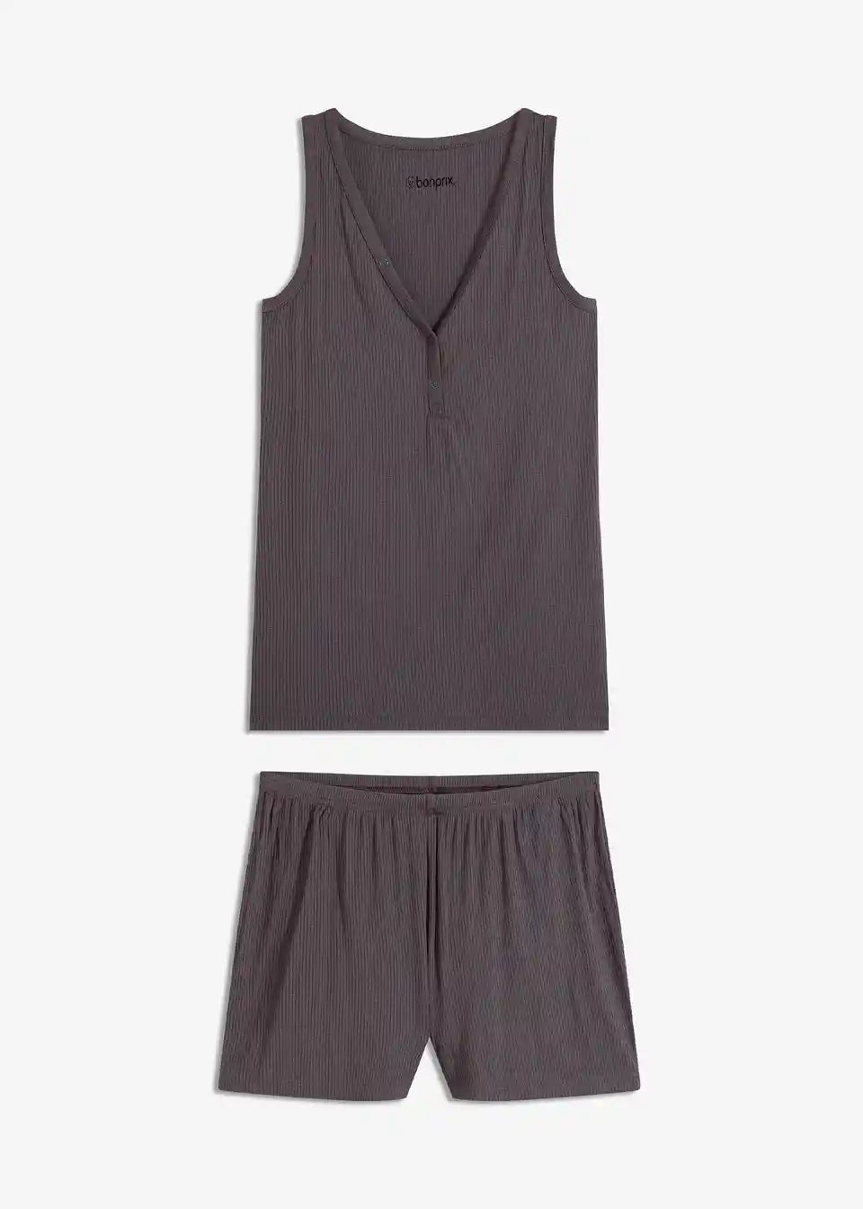 Udobna kratka pižama iz mehko padajočega rebrastega materiala z globokim V-izrezom