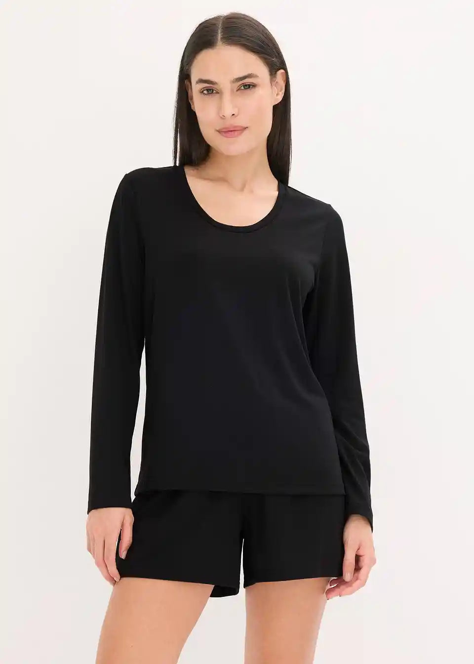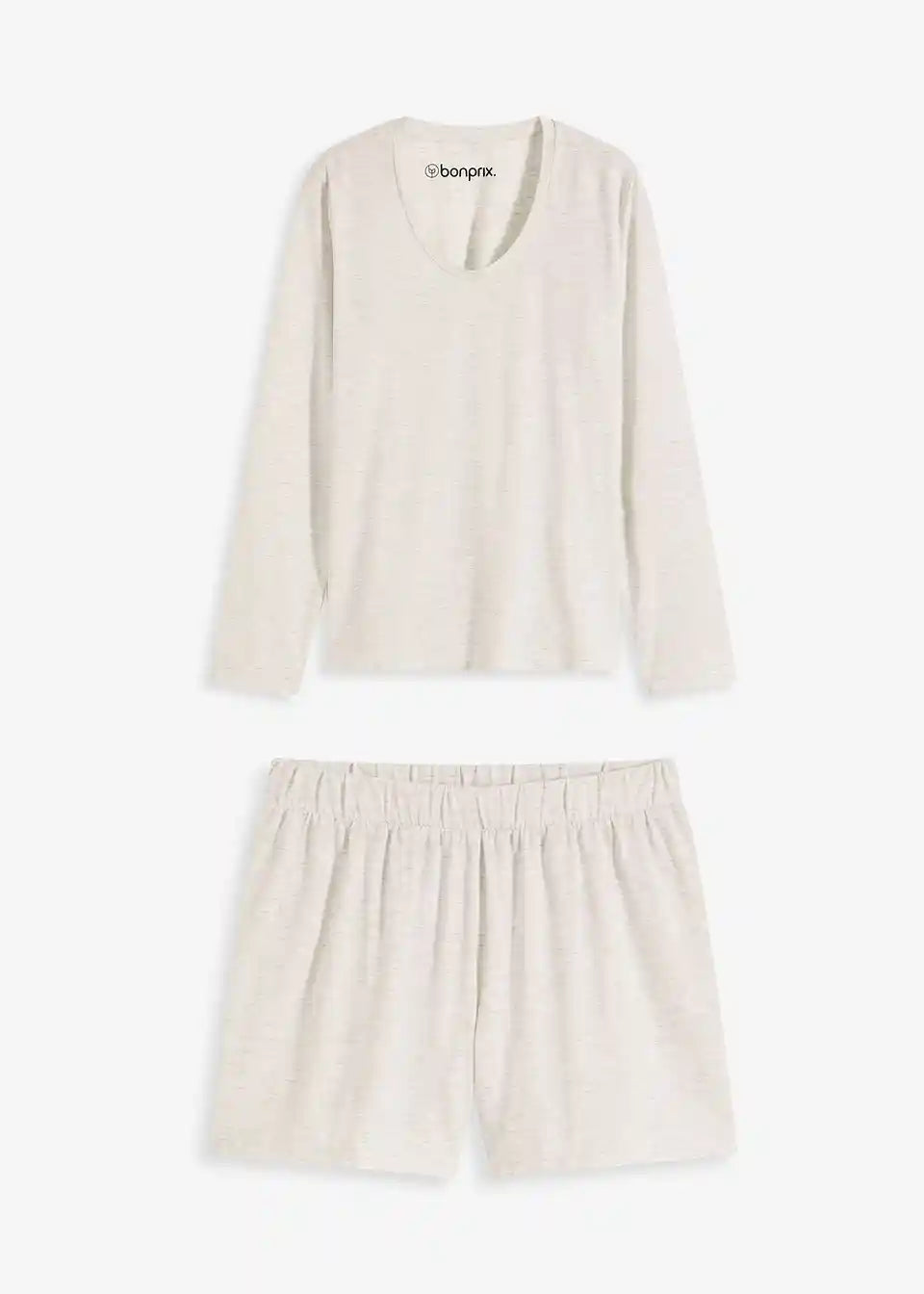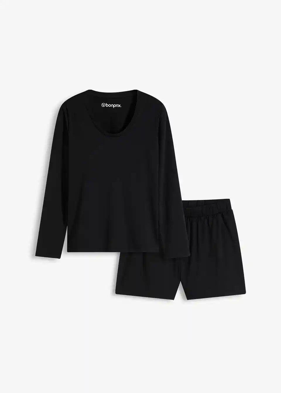 Udobna kratka pižama z ohlapno majico z dolgimi rokavi in kratkimi hlačami
