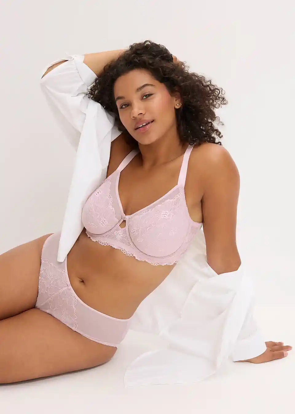 zgornji material: 80% poliamid (recikliran), 20% elastan, čipka: 58% poliamid, 30% poliamid (recikliran), 12% elastan, mreža: 83% poliamid, 17% elastan