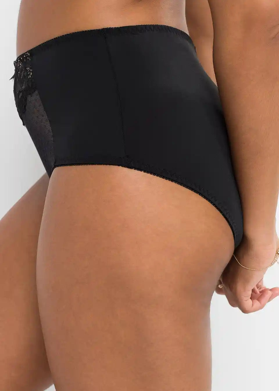 Še nikoli ni bilo tako enostavno priti v formo – te izpopolnjene spodnje hlačke nežno oblikujejo postavo. Dizajn za dobro počutje vključuje velikodušen kroj, ki sega visoko do pasu. Tako oblikovalne spodnje hlačke poudarijo ženske obline in poskrbijo za popoln videz. Preprost dizajn na zadnji strani dobi ženski pridih z majhno okrasno pentljo in fino čipko na sprednji strani. Nov najljubši kos v garderobi!