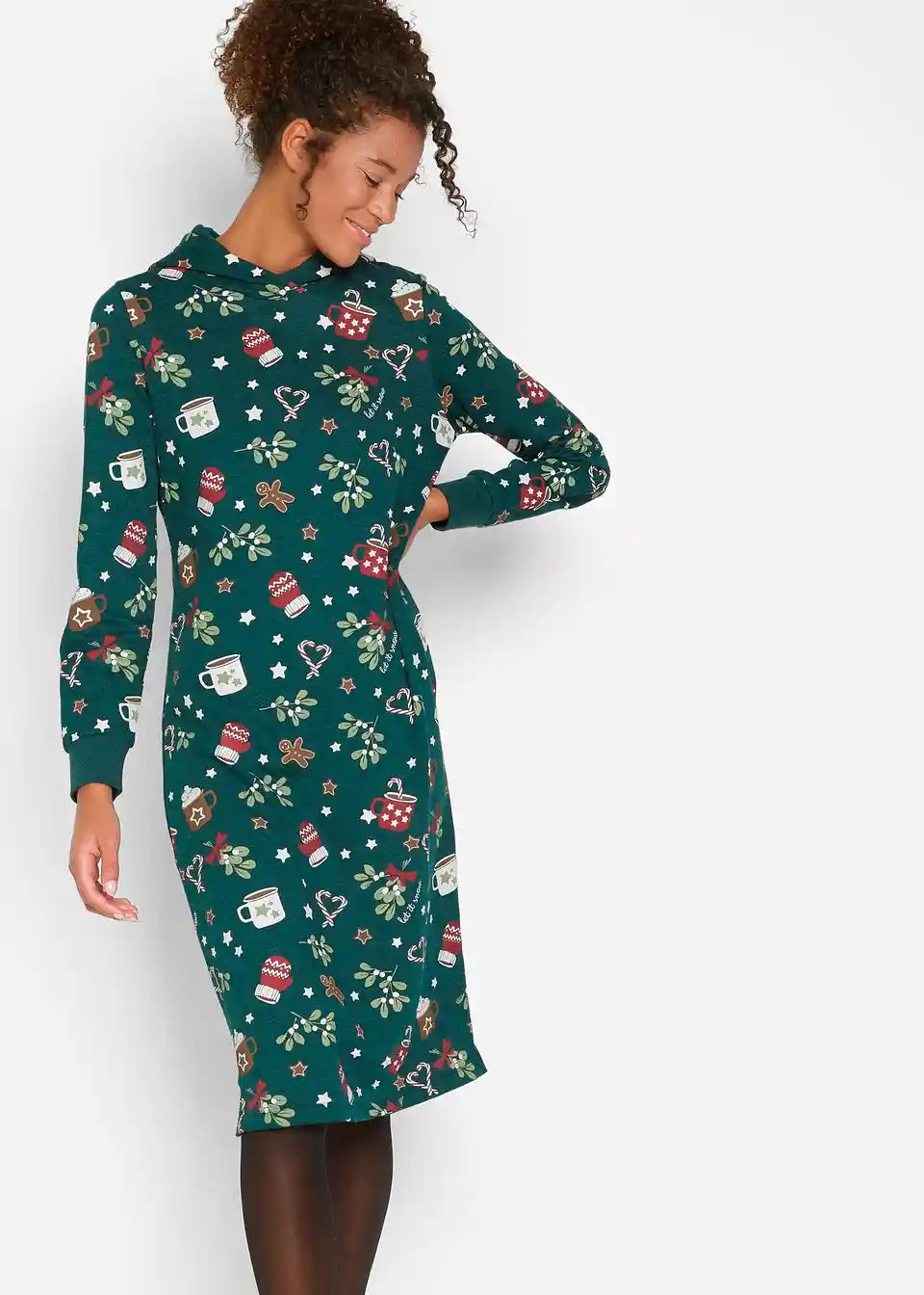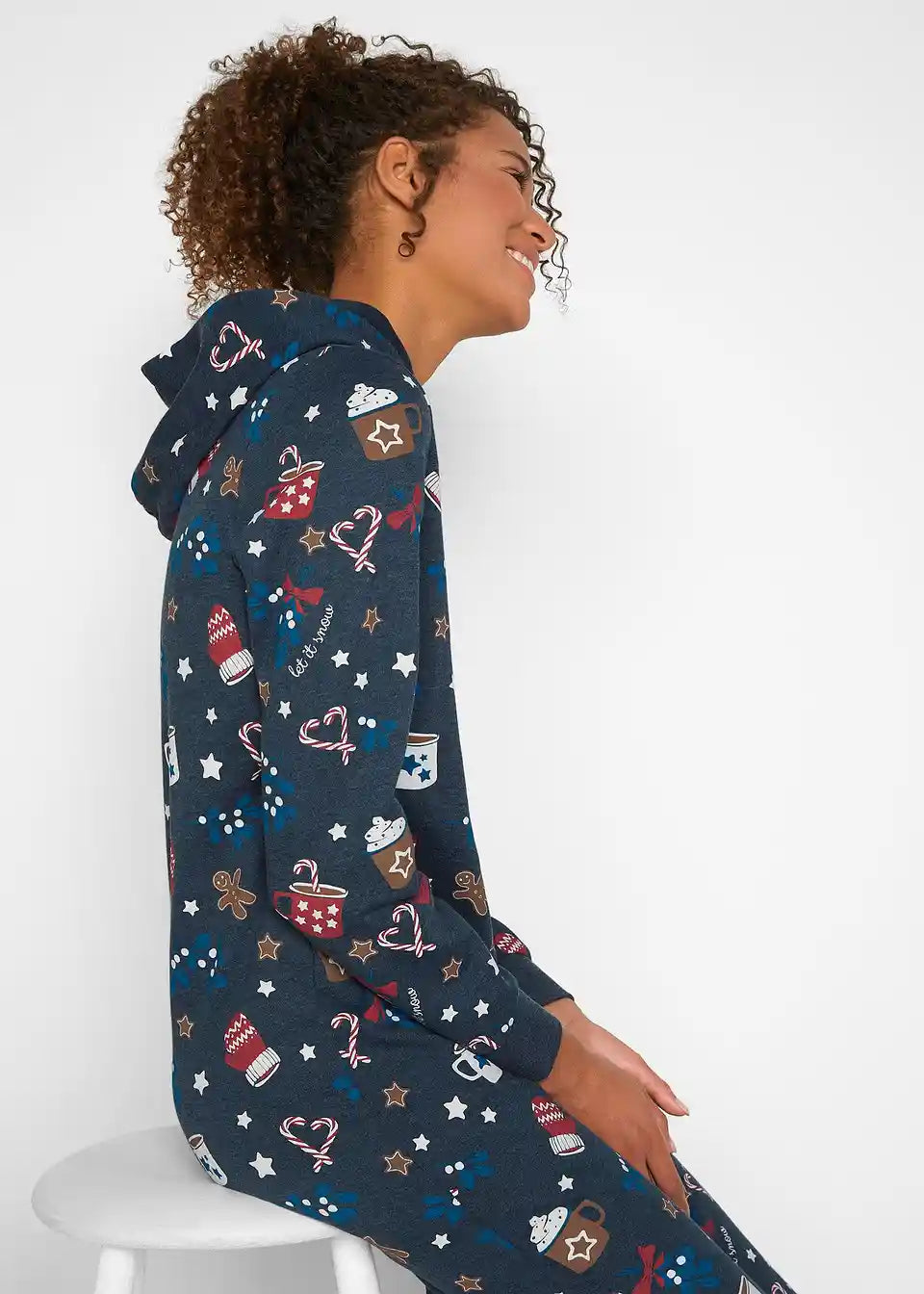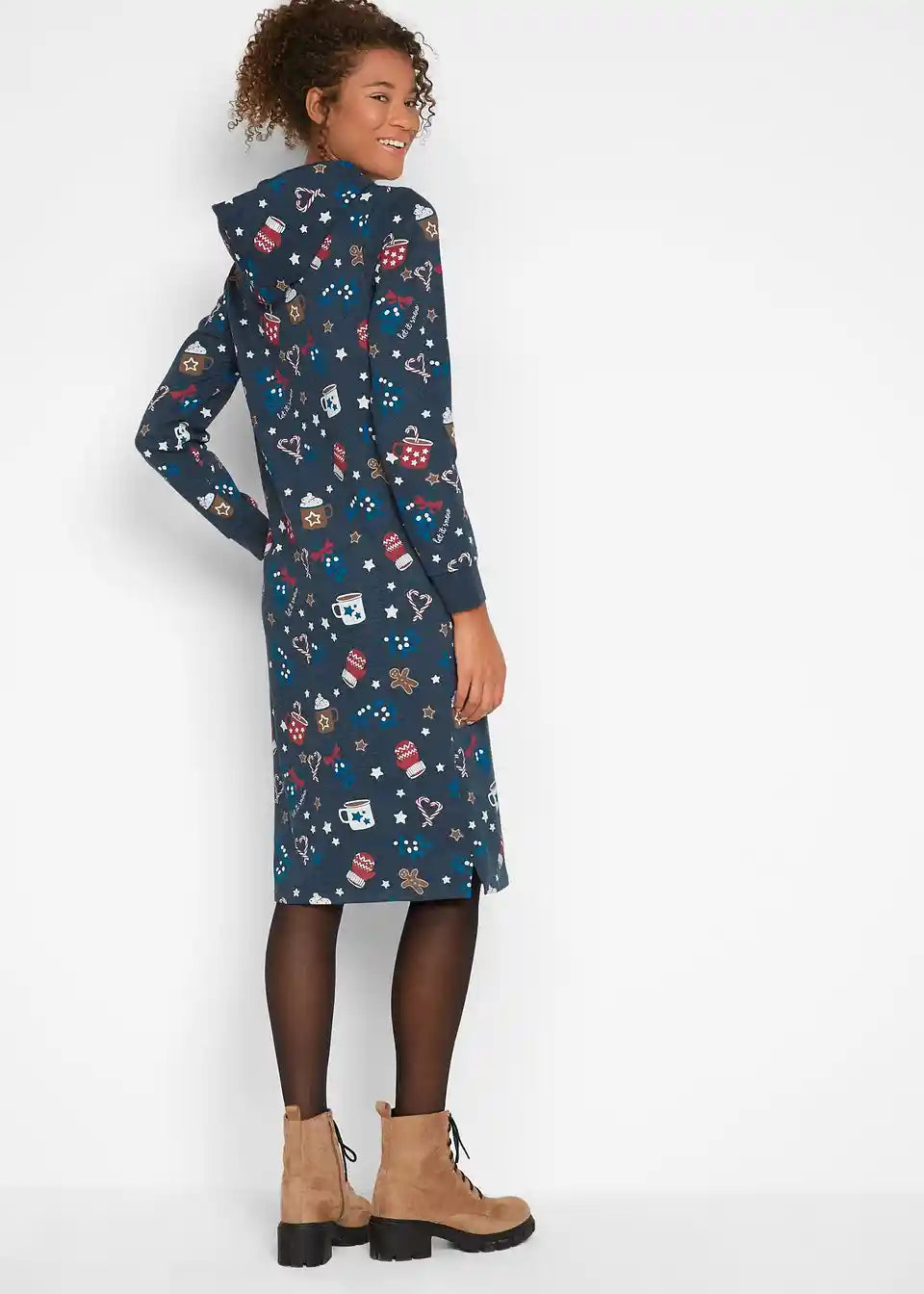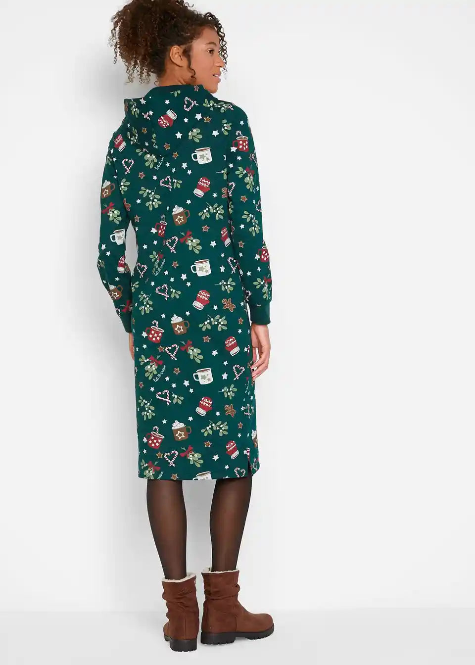 Božično potiskana športna obleka s kapuco in stranskimi razporki