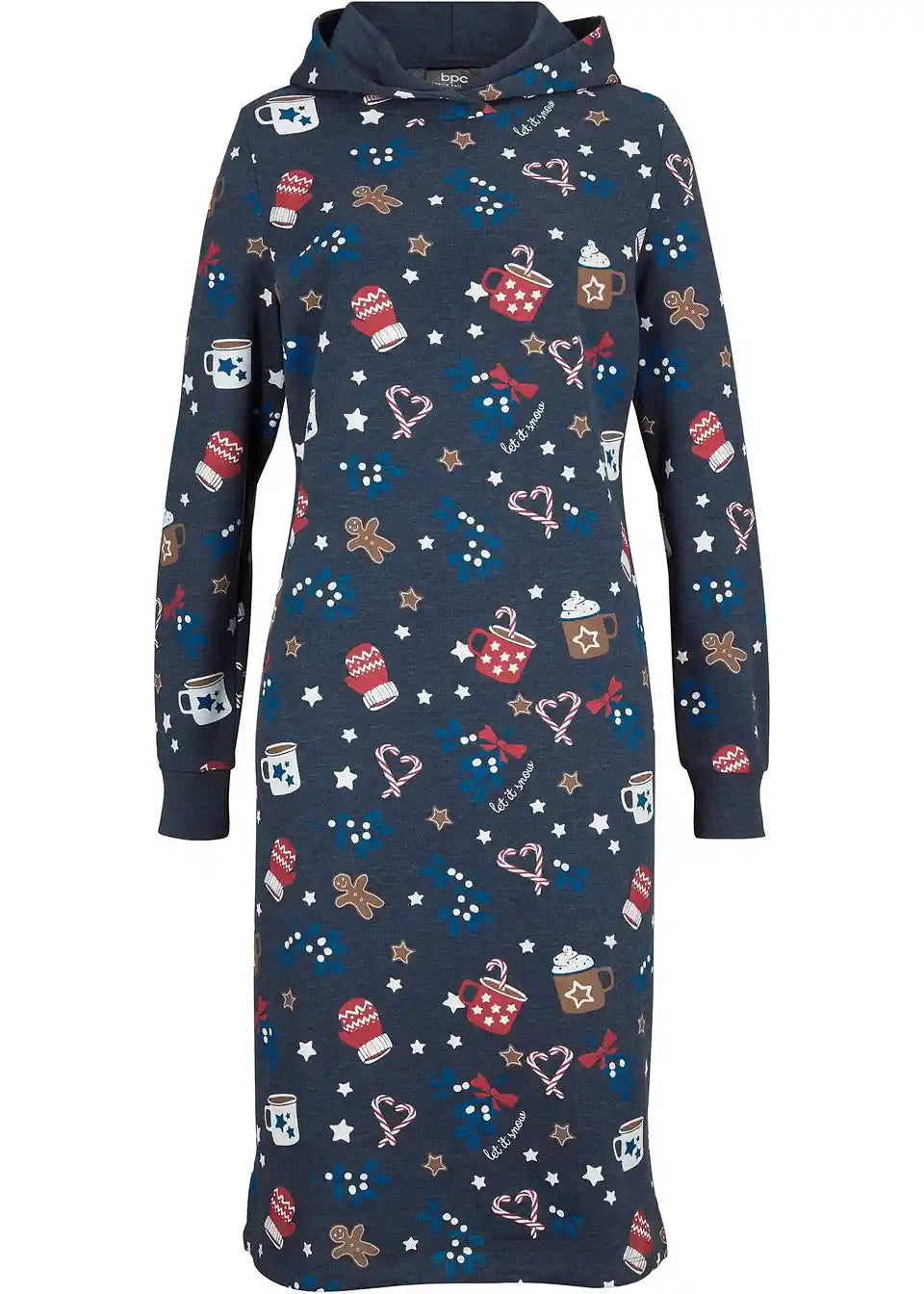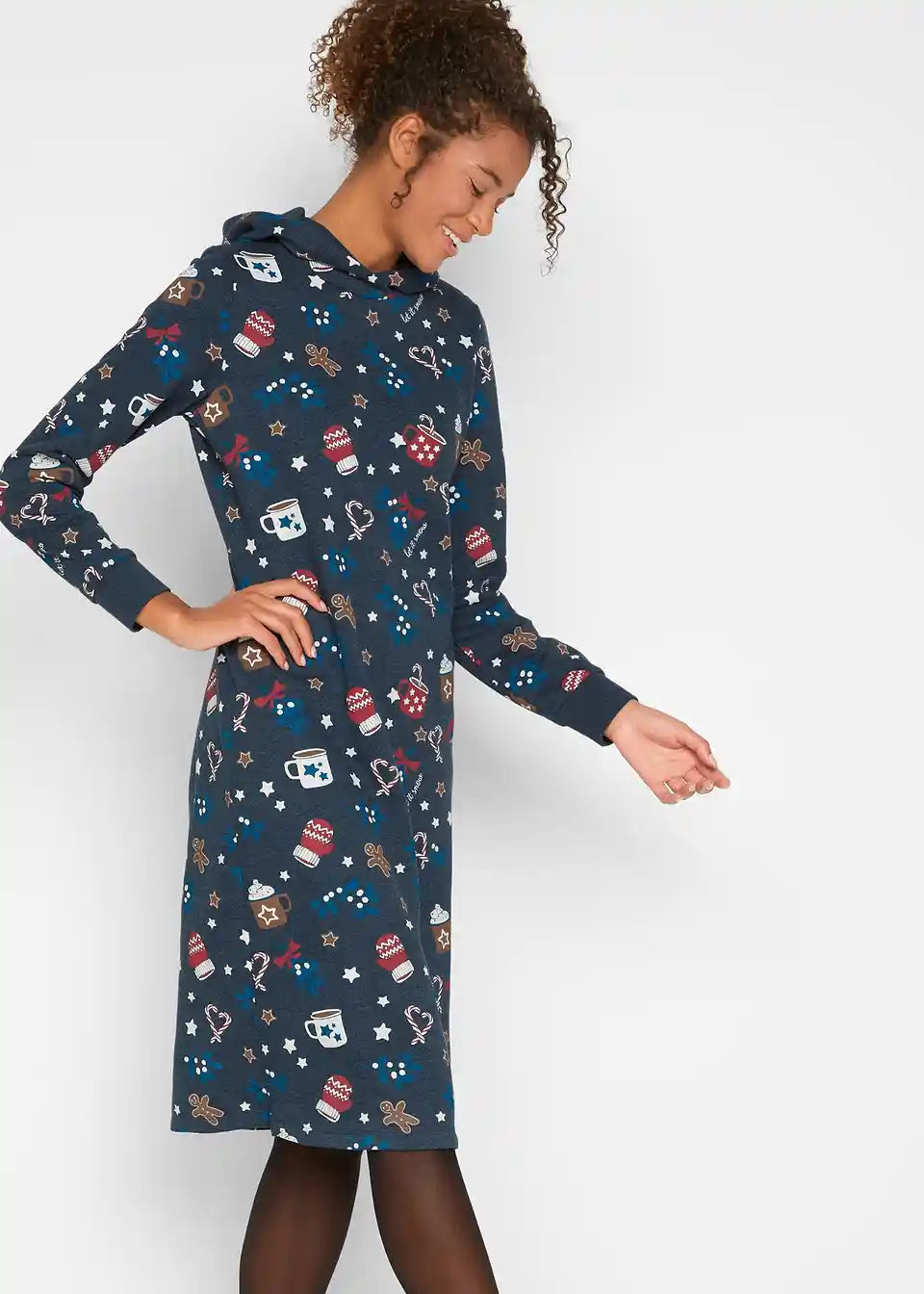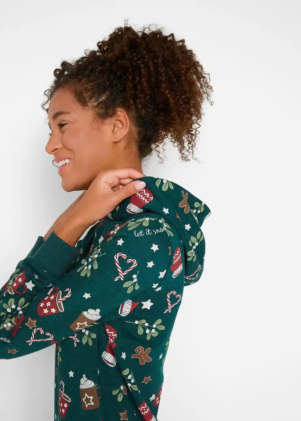 Božično potiskana športna obleka s kapuco in stranskimi razporki