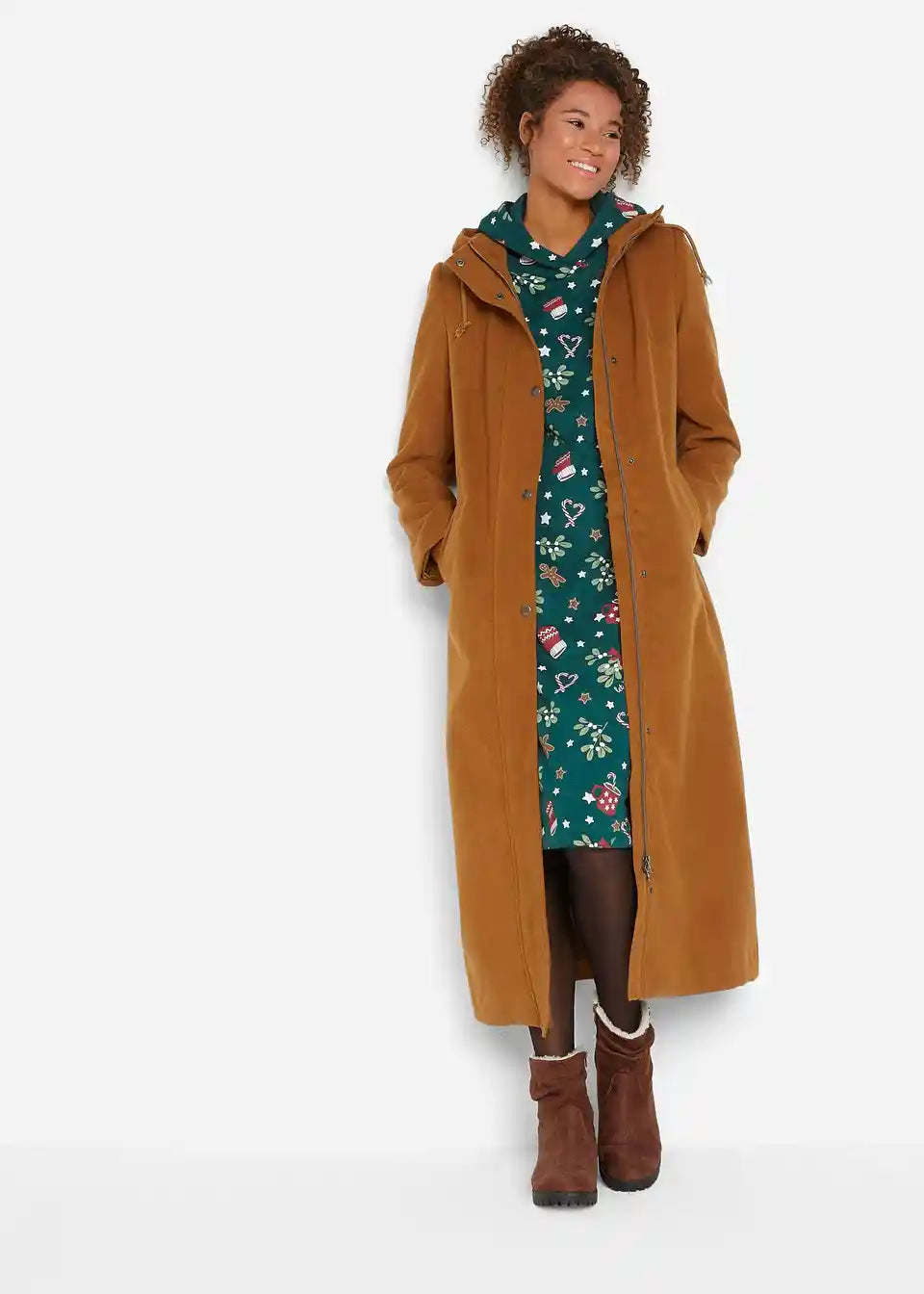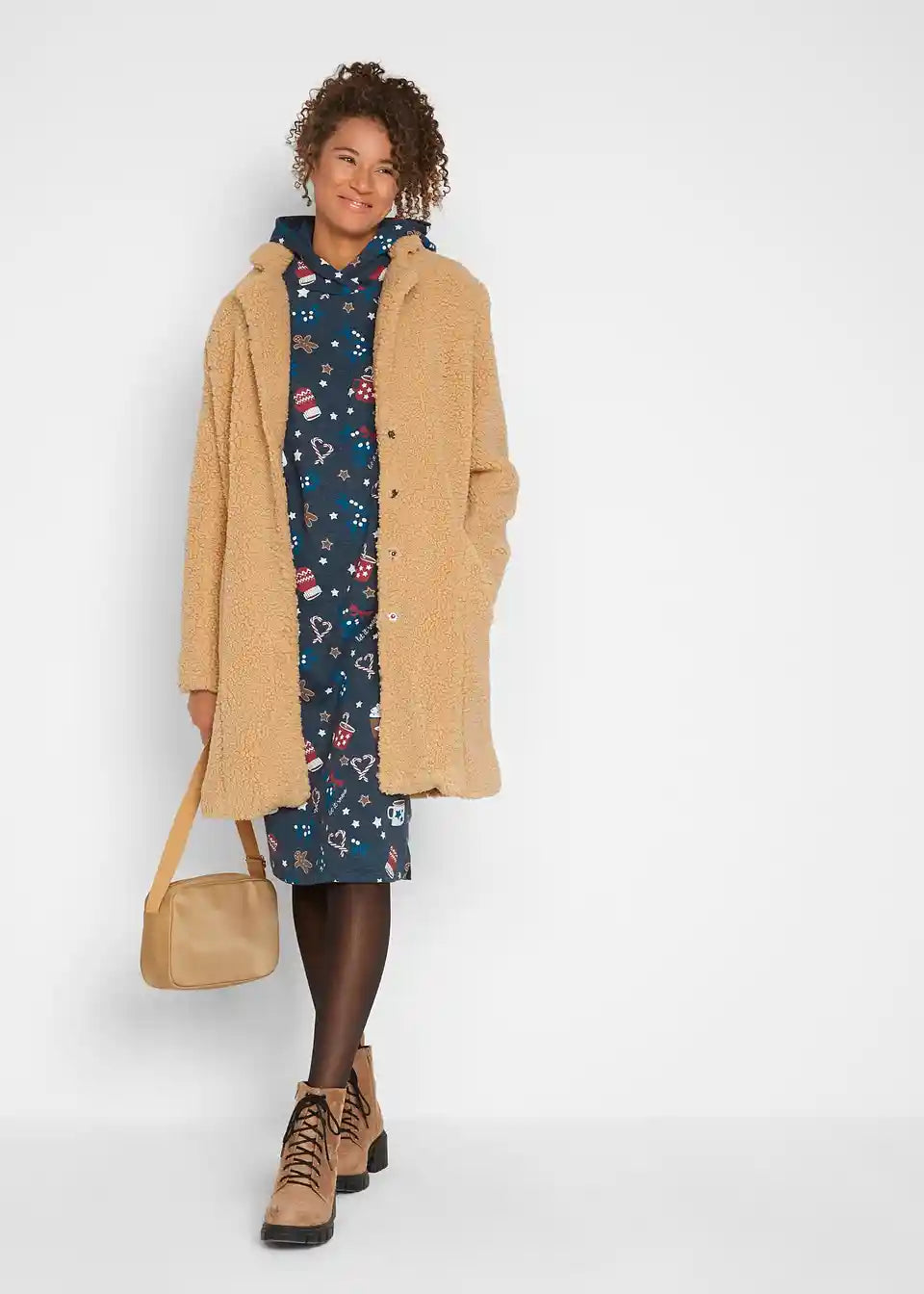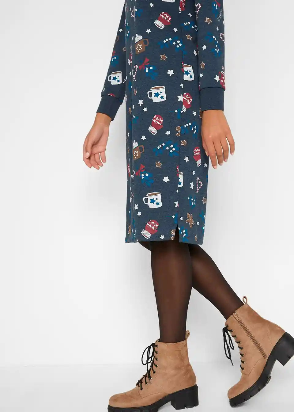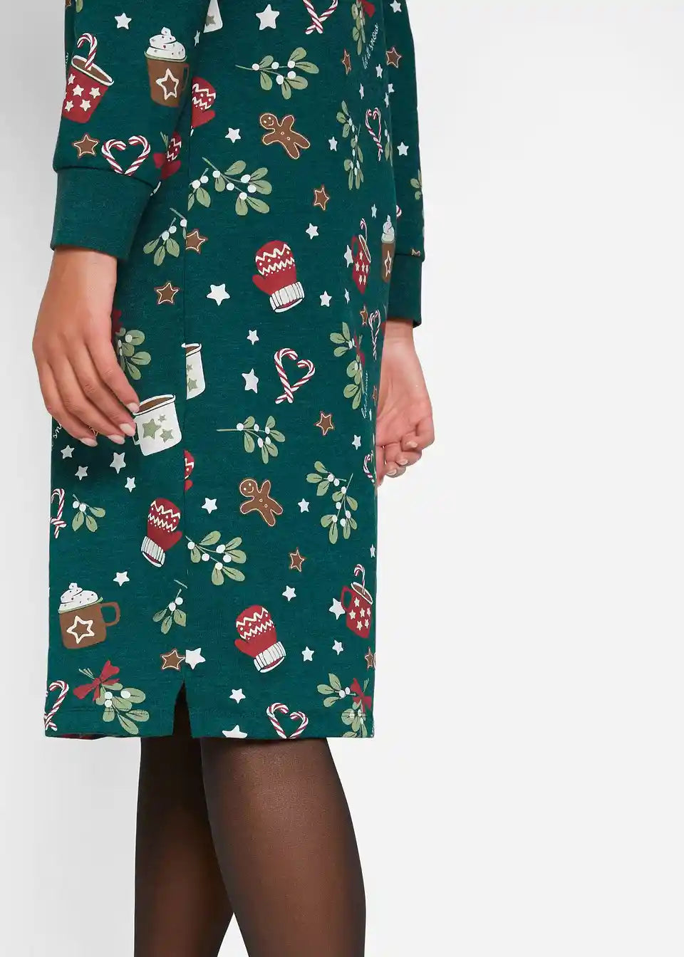 Božično potiskana športna obleka s kapuco in stranskimi razporki