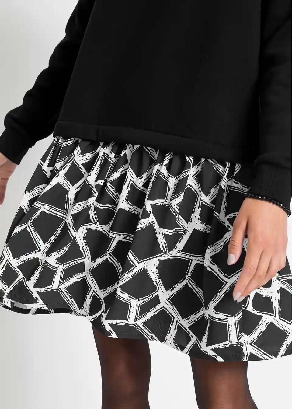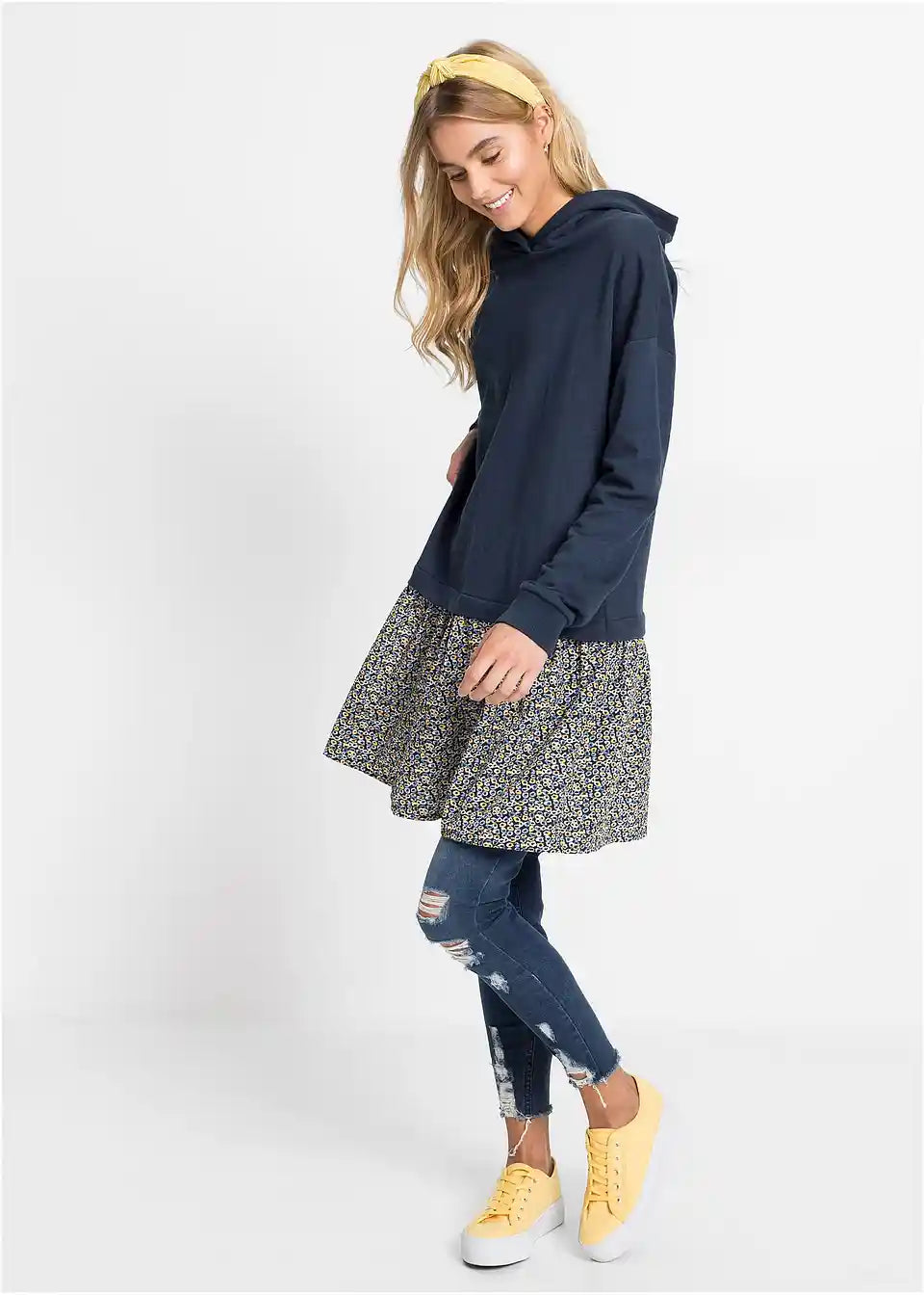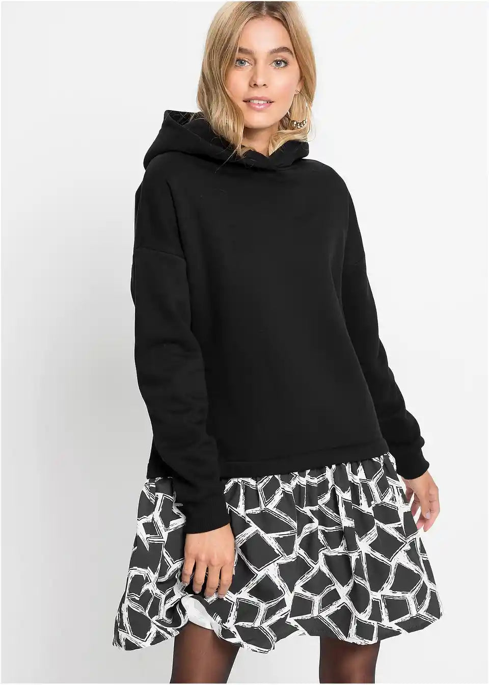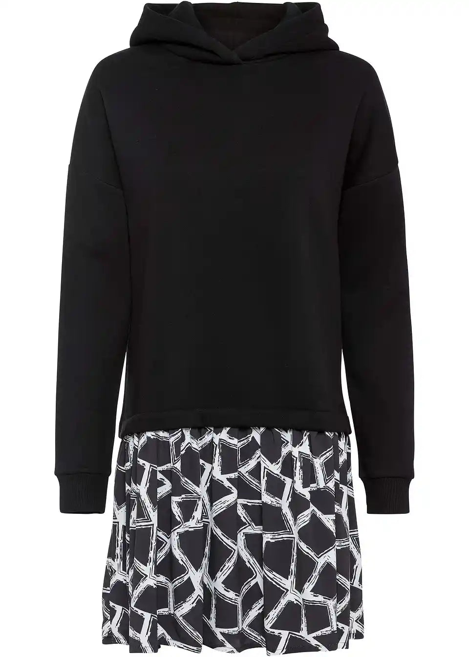 Sproščena sweat obleka v 2-1 videzu s kapuco