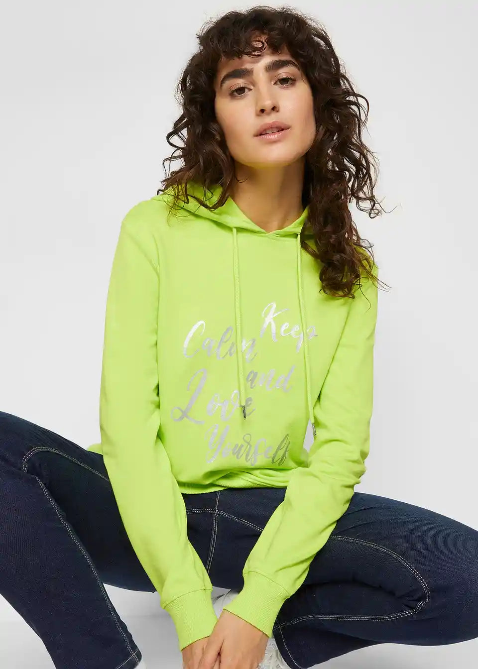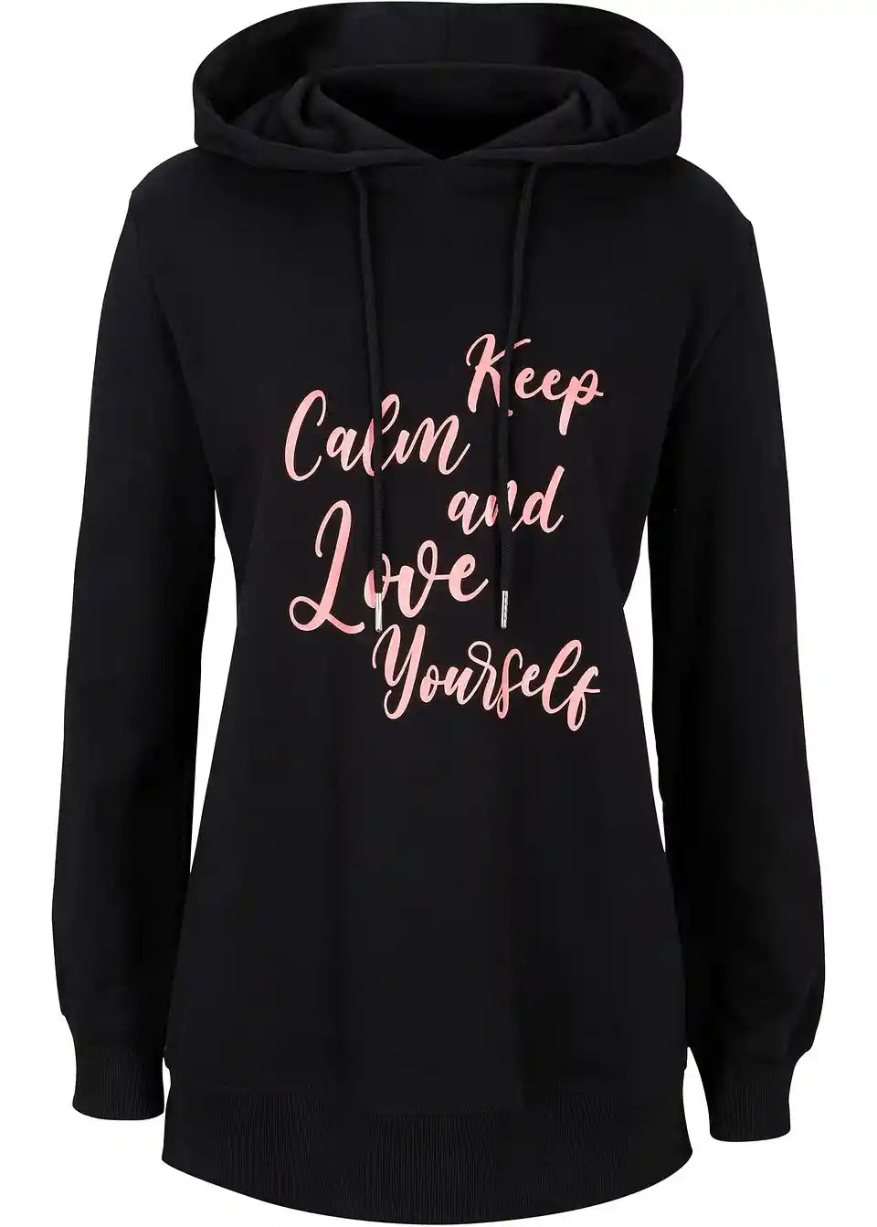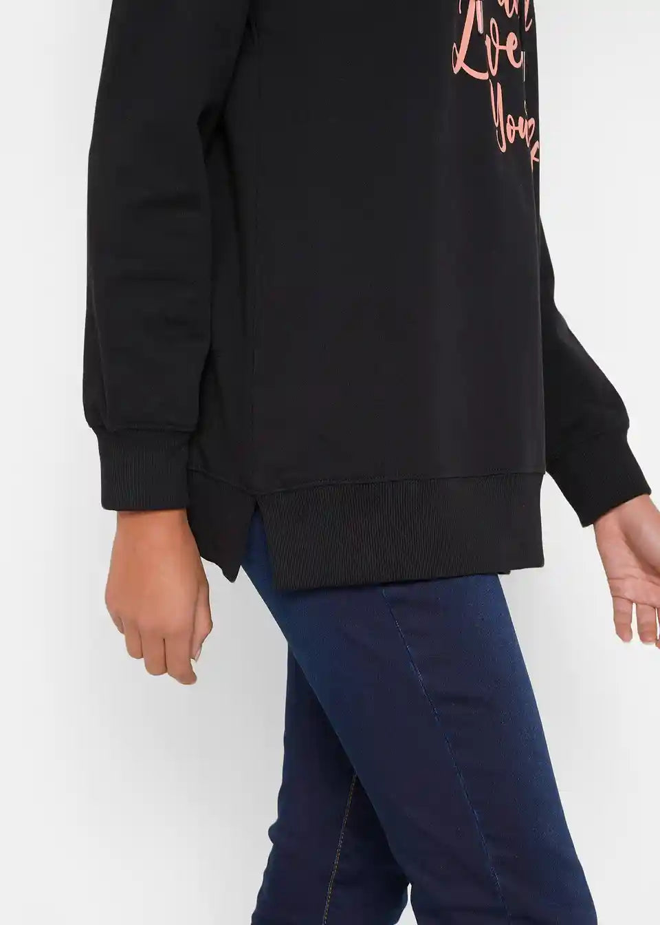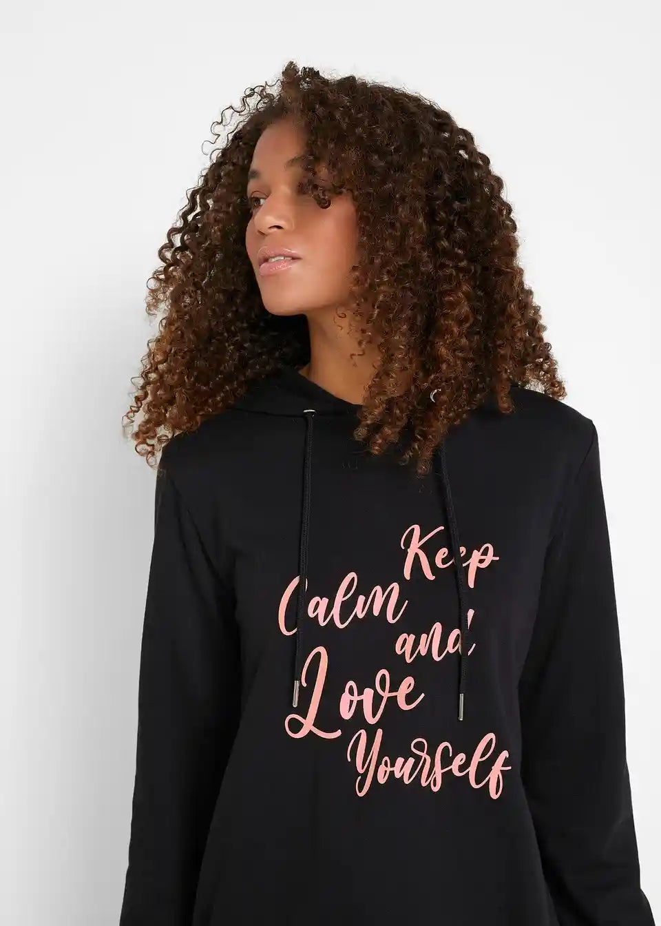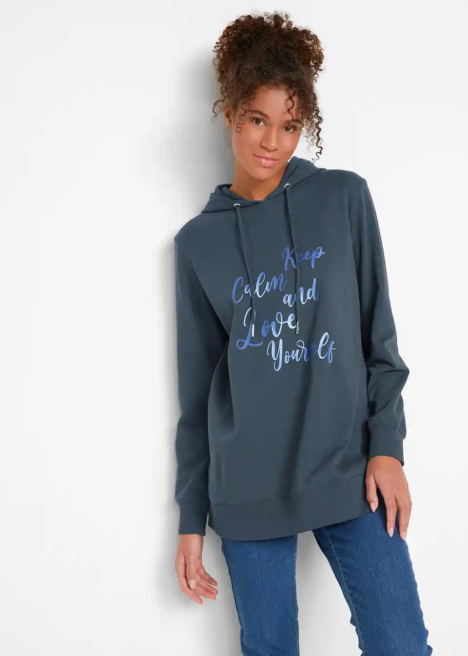 Majica s kapuco s statement potiskom, kapuco in stranskimi razporki za več svobode gibanja