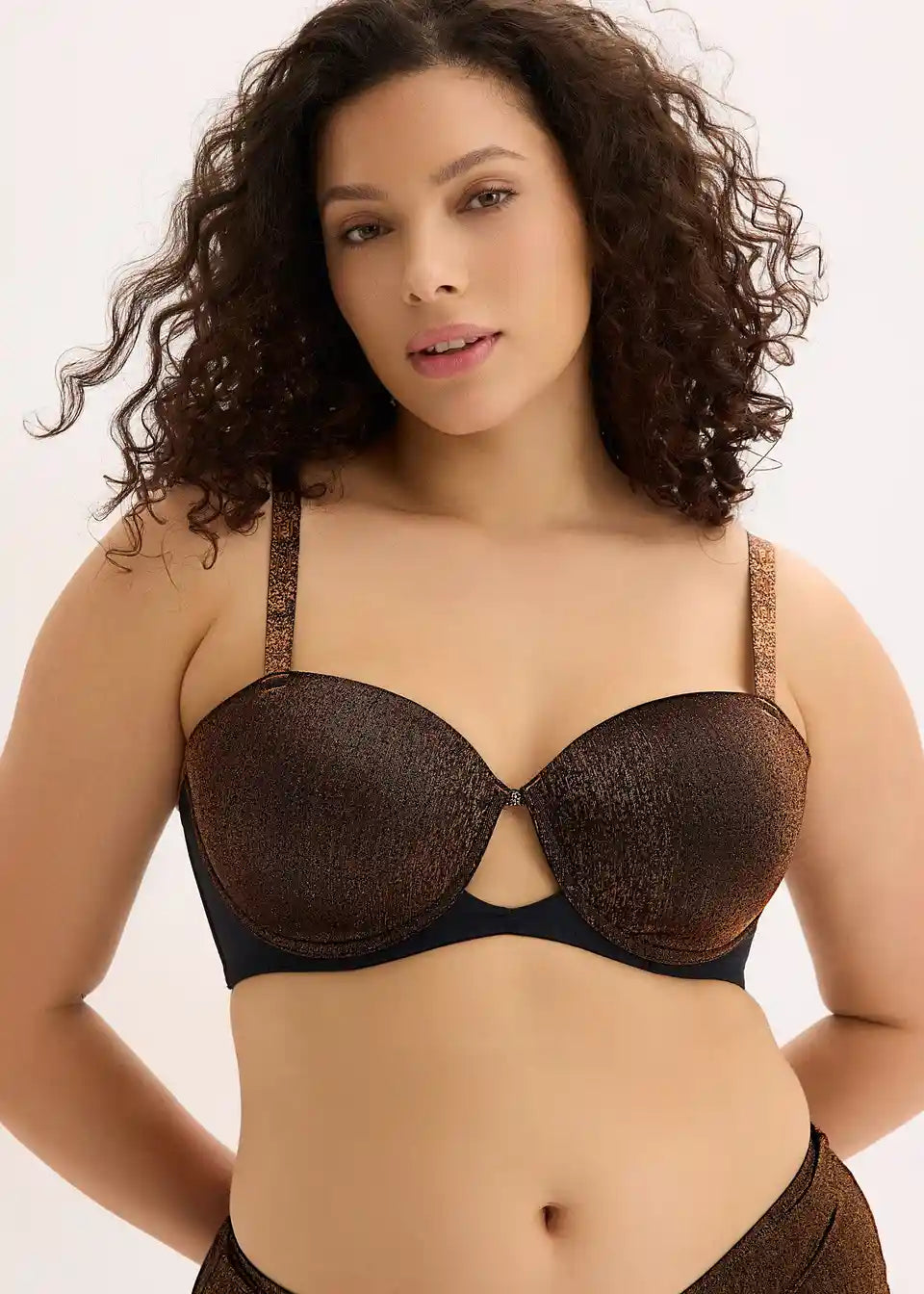 Balkonet nedrček iz svetlikajočega materiala s prefinjenim detajlom naramnic.