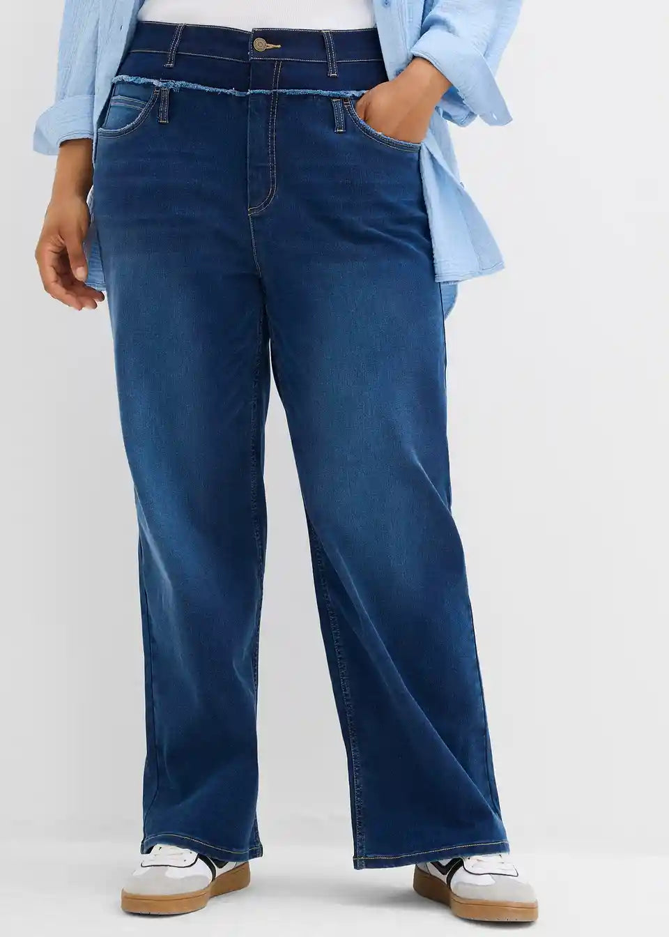 Ravne kavbojke z visokim dvojnim pasom
