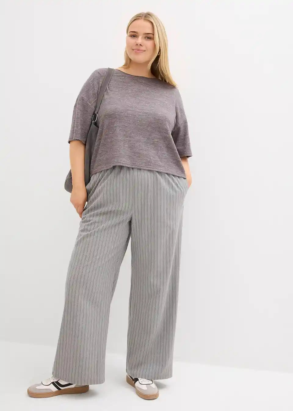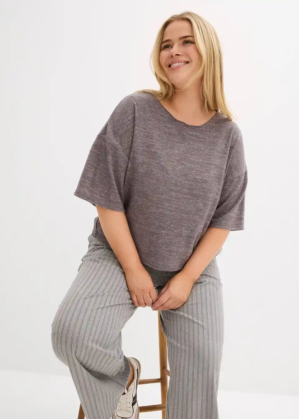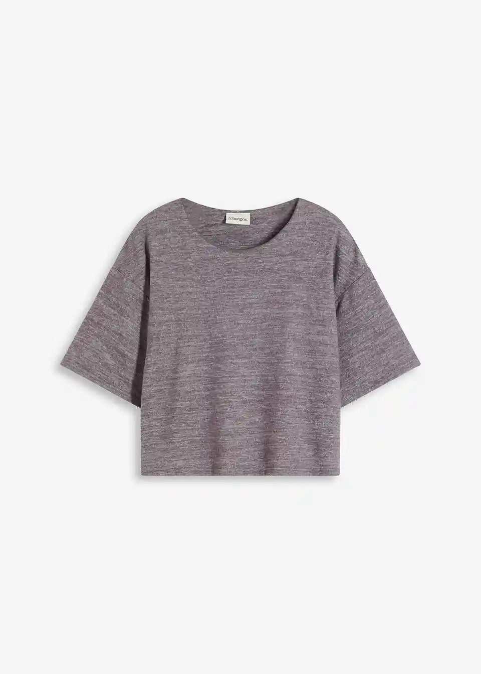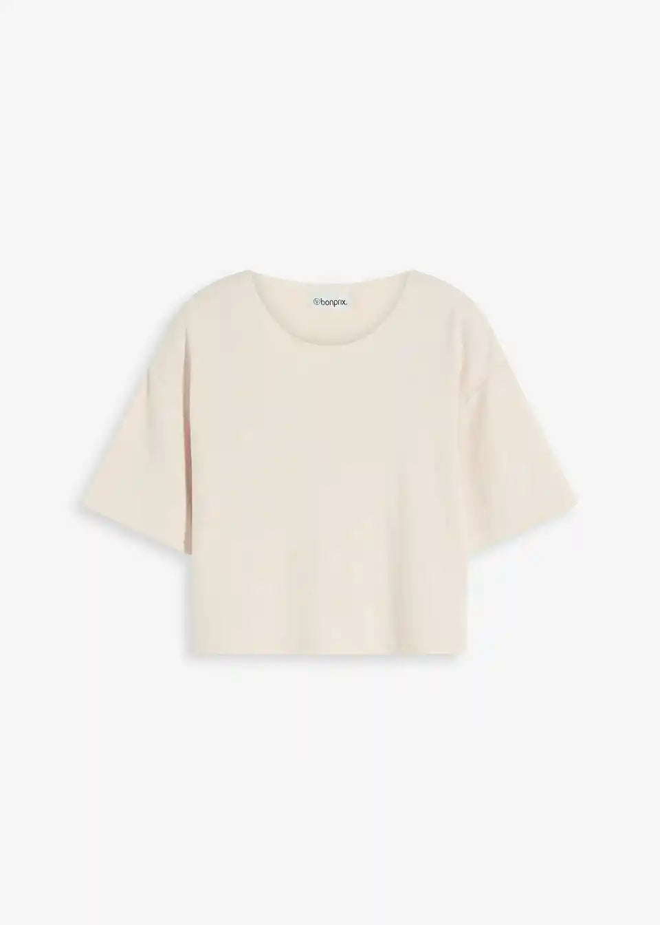 Kratka cropped majica v kvadratnem kroju s širokimi rokavi in okroglim izrezom