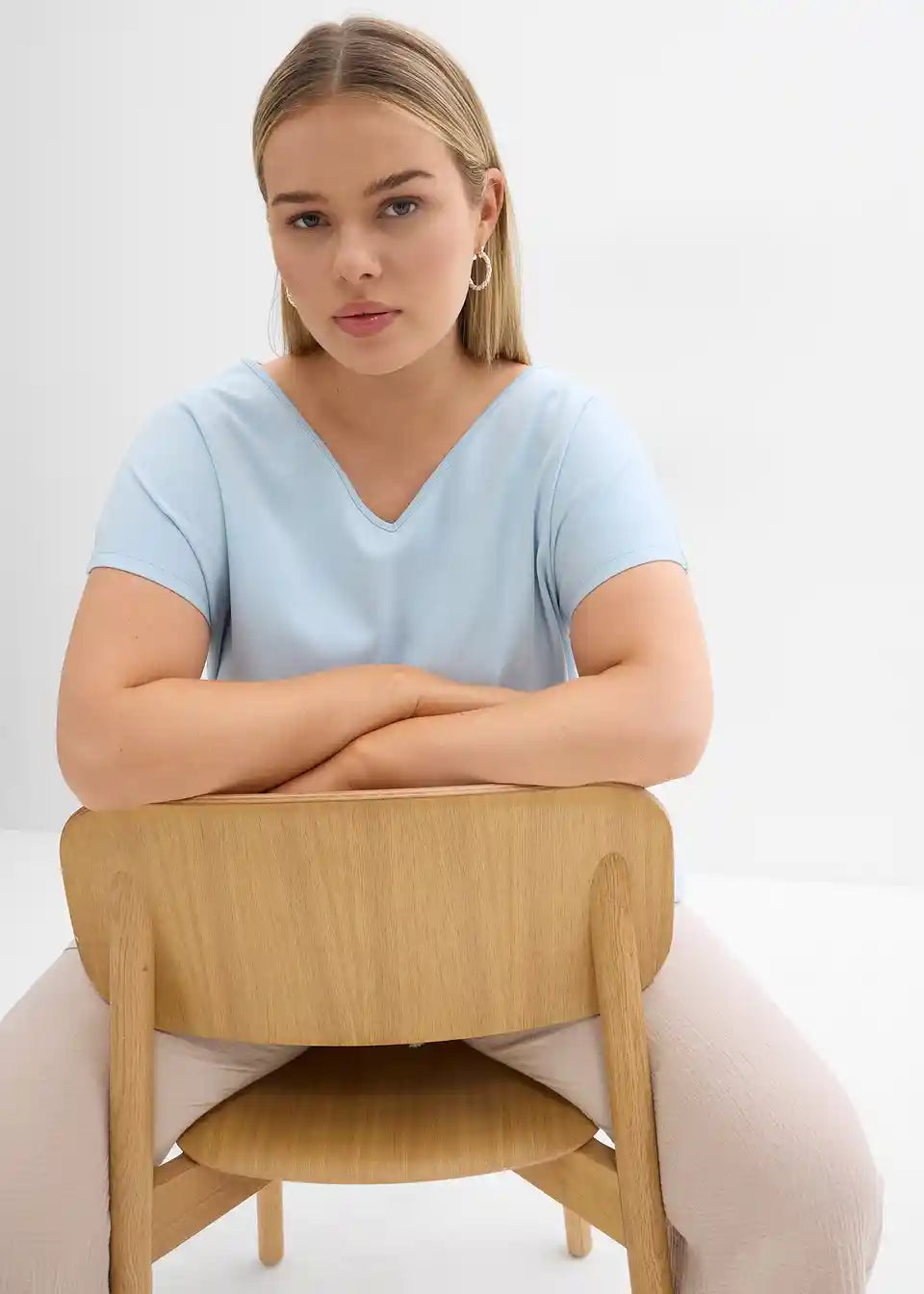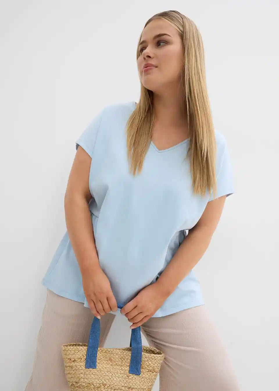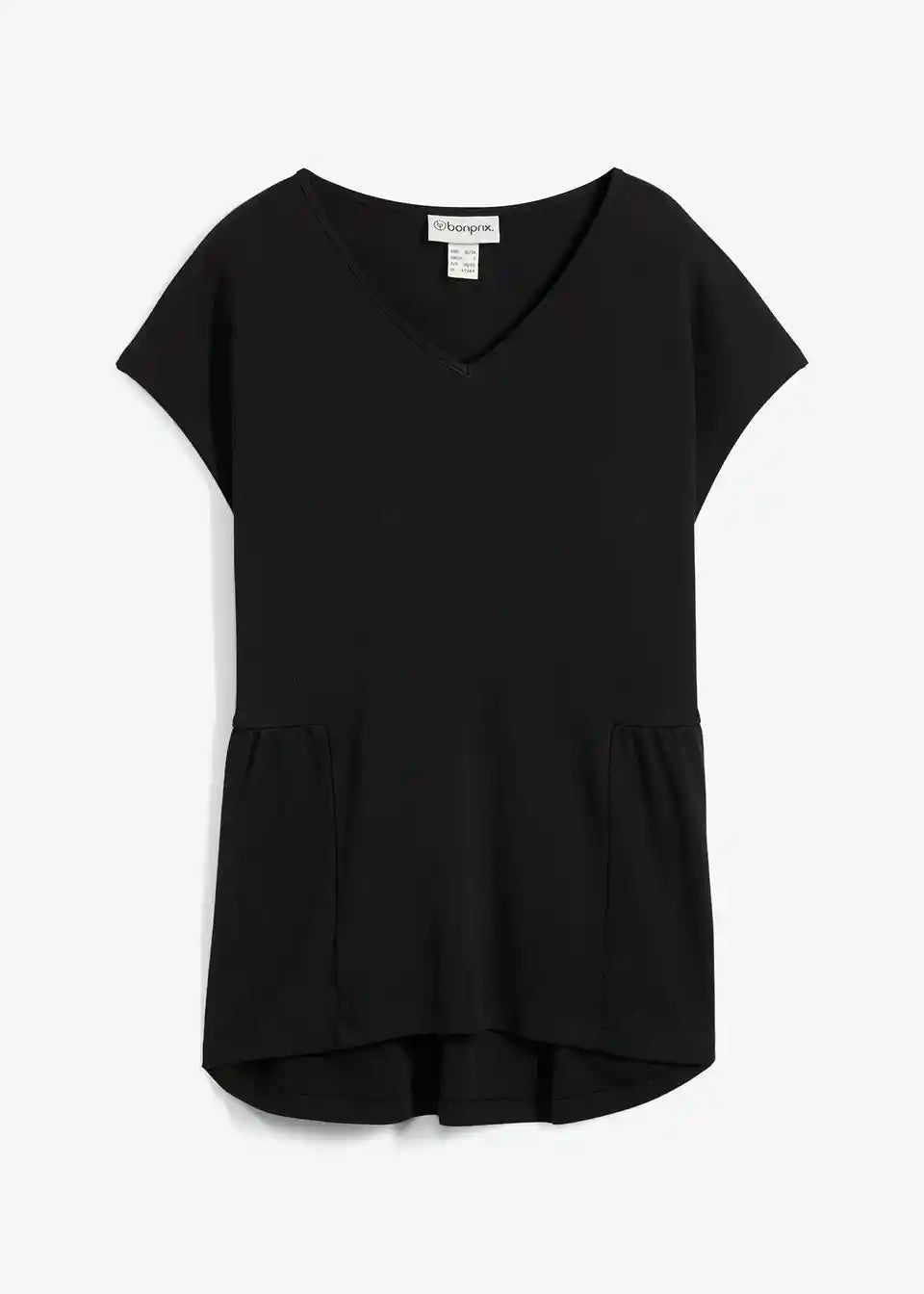 Majica v A-liniji s šivom v pasu in podaljšanim robom zadaj