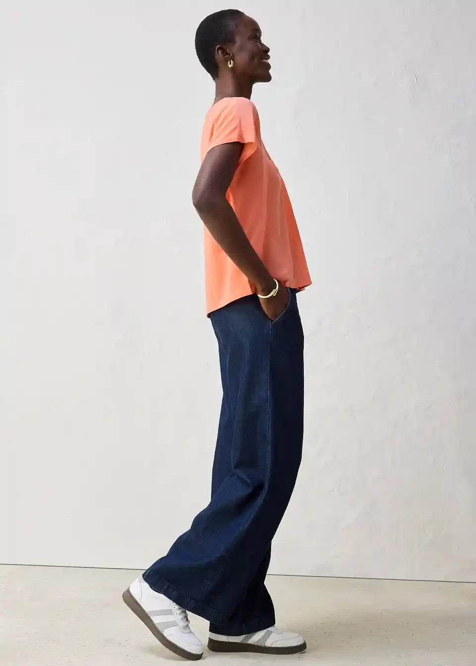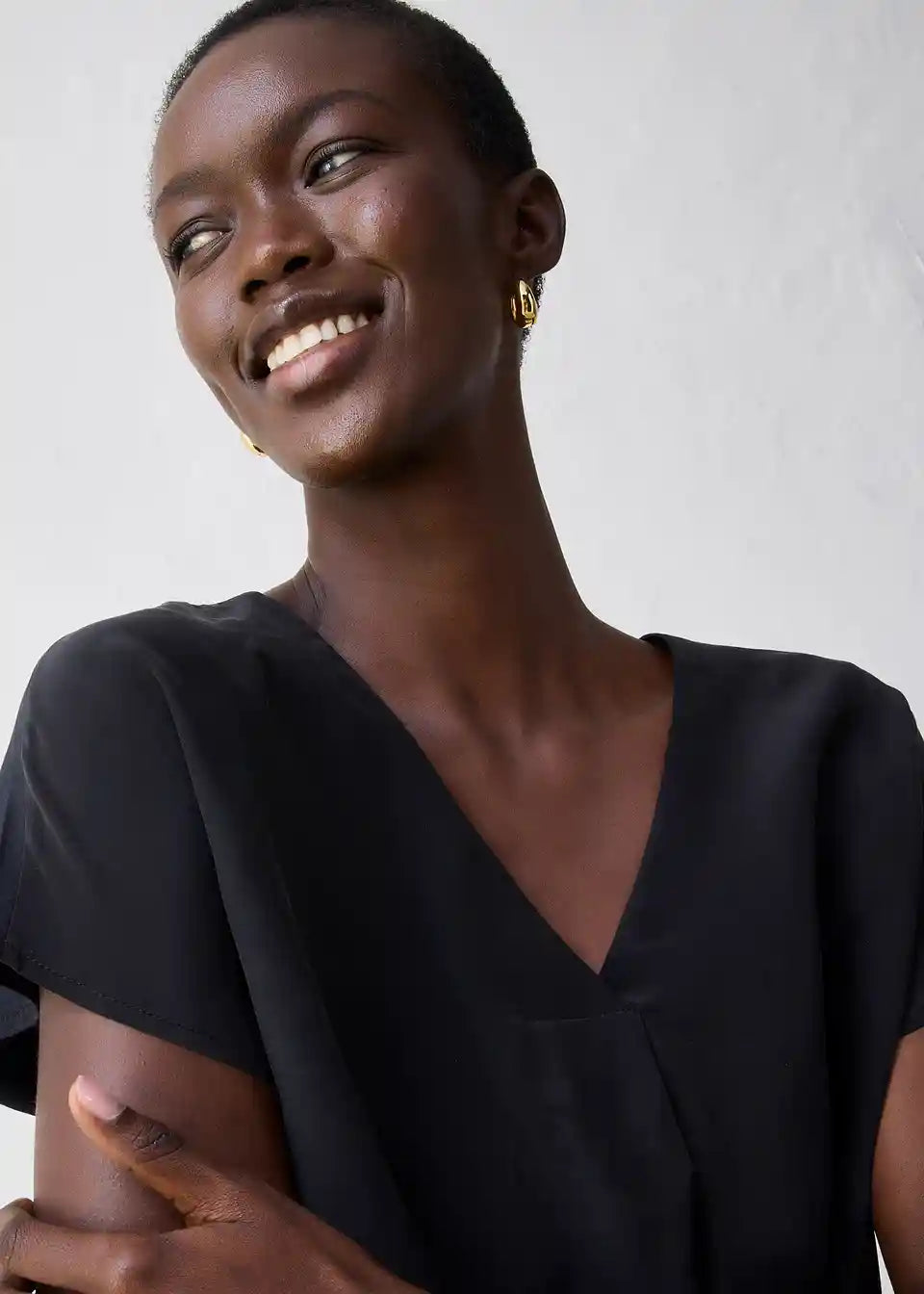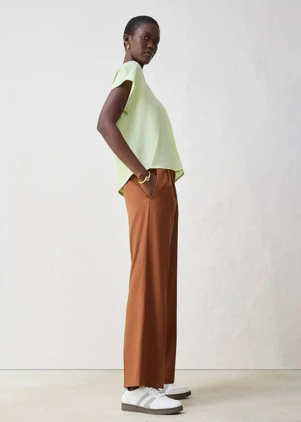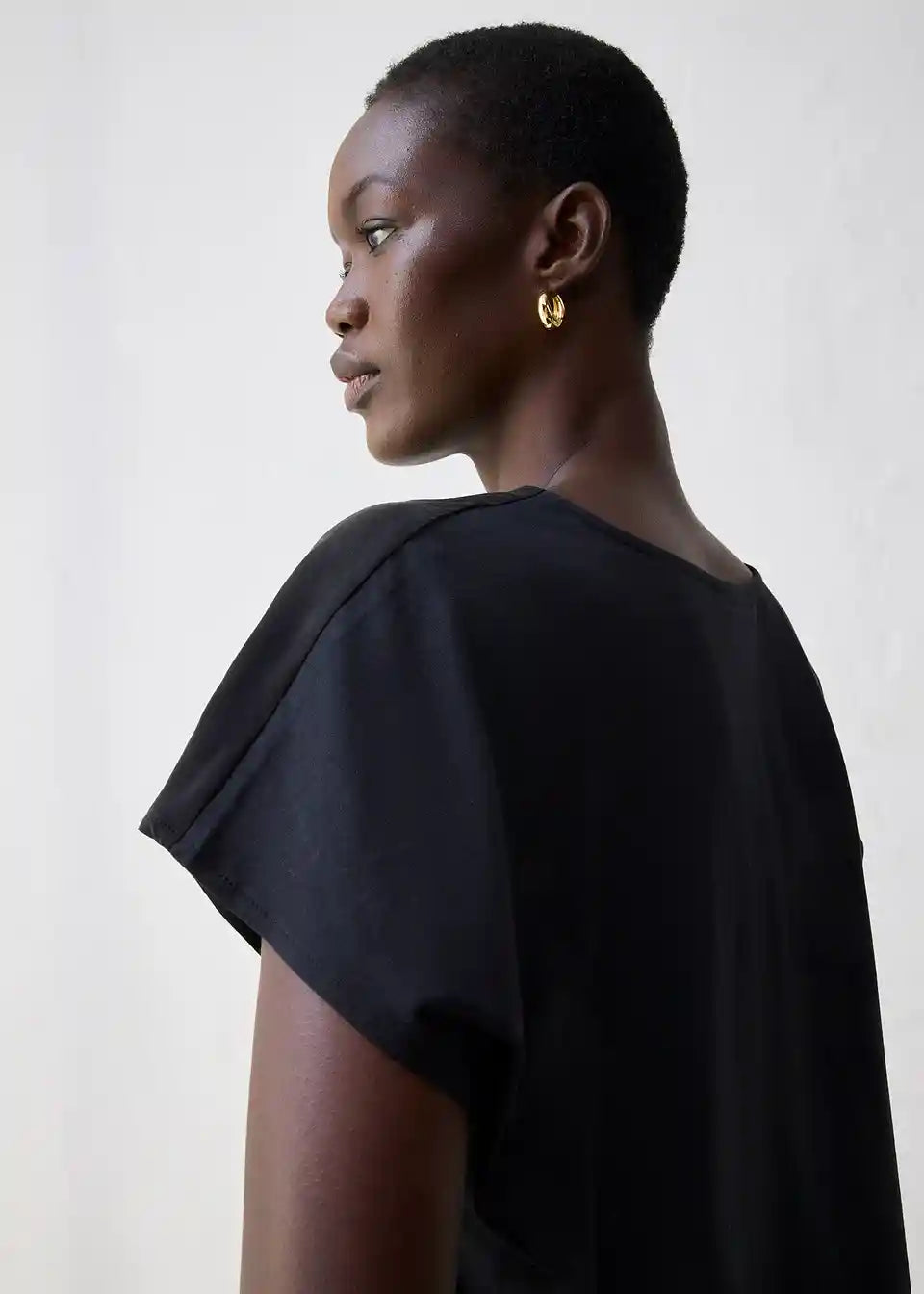 Material:zgornji material: 65% viskoza, 35% svila, zgornji material 2: 85% bombaž, 15% svila