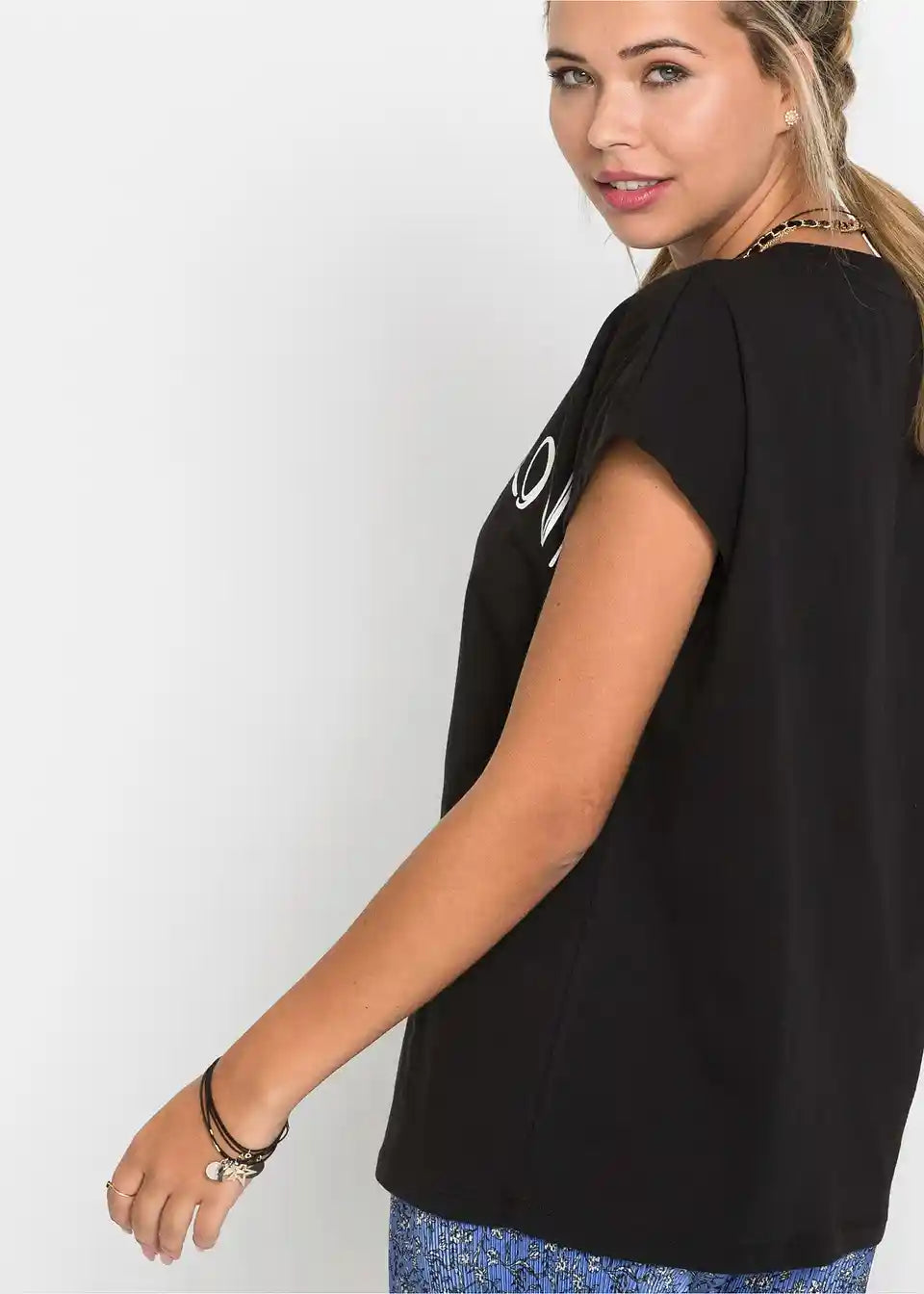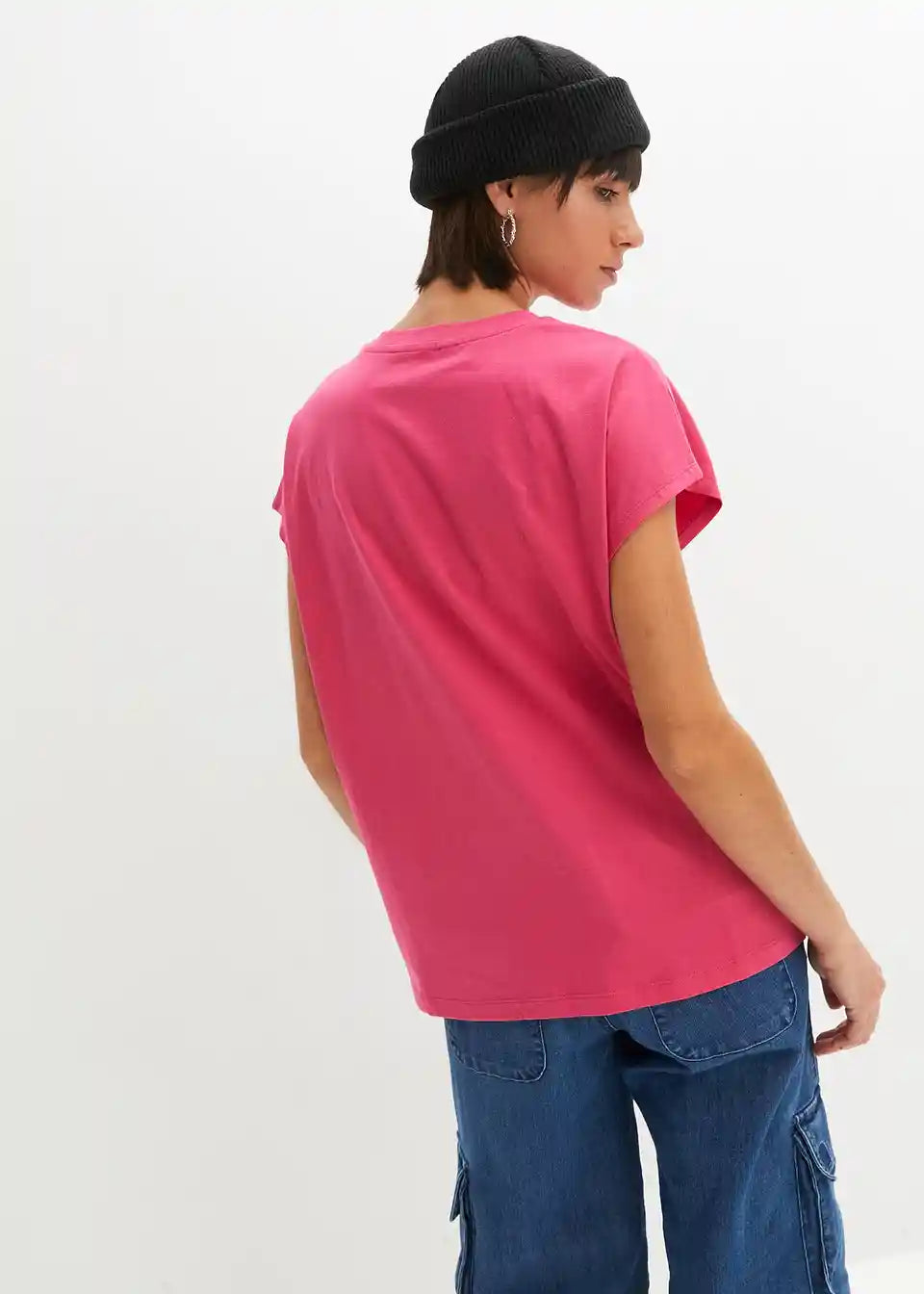 Ohlapna majica z okroglim izrezom s potiskom spredaj