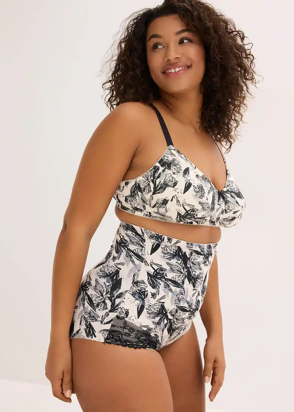 V pasu visoko krojene oblikovalne spodnjice s srednjo oblikovalno močjo s čipko