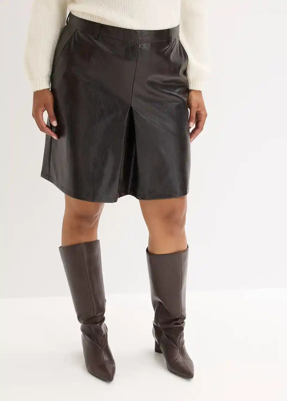 Mini krilo iz vtisnjenega lakastega umetnega usnja z gubo spredaj