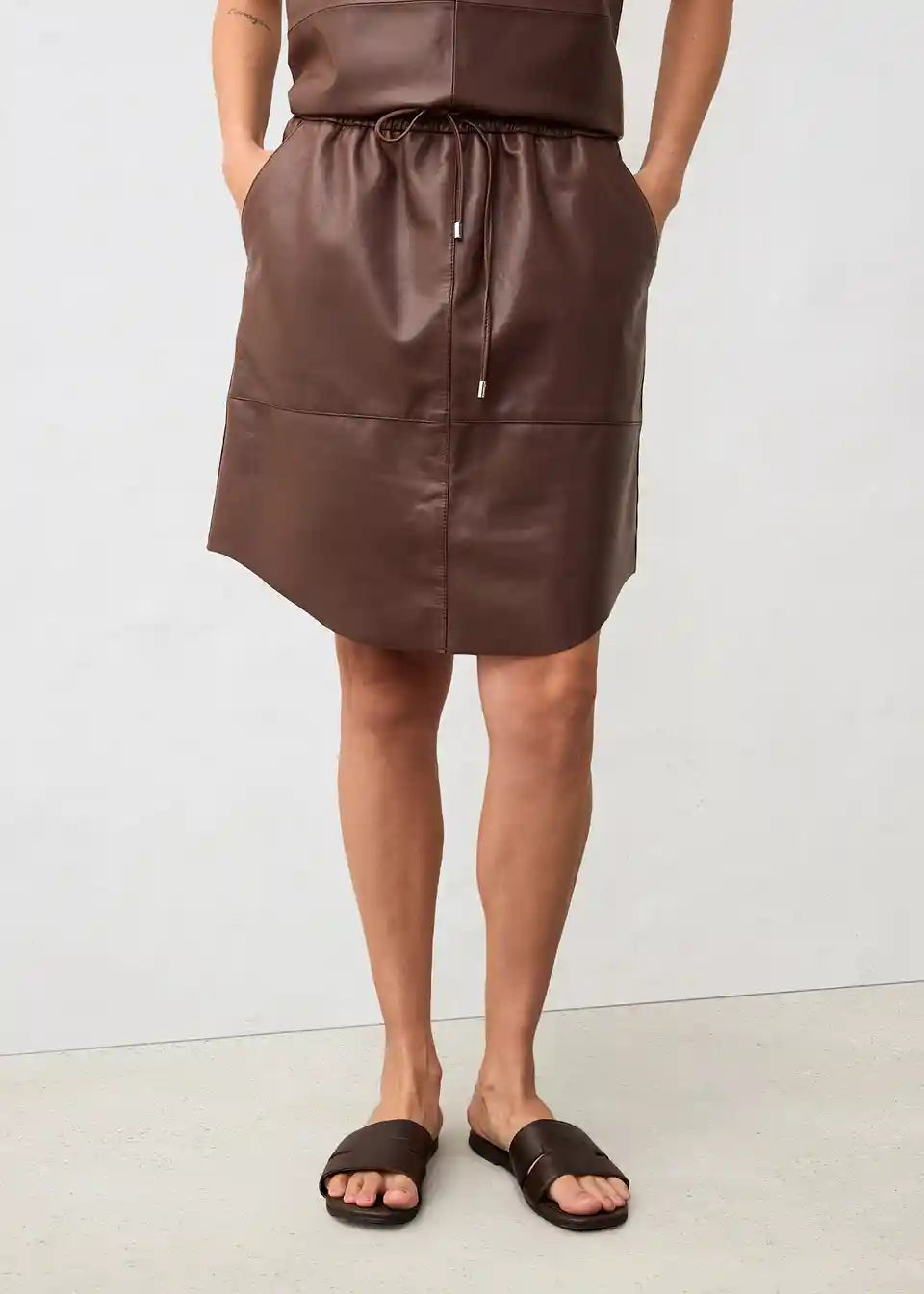 Kratko usnjeno krilo iz mehkega premium ovčjega napa usnja