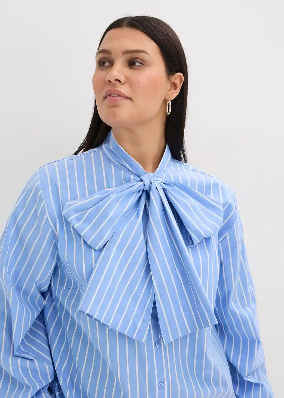 Modna bluza brez zapenjanja iz bombažnega poplina z letvijo za zapenjanje spredaj