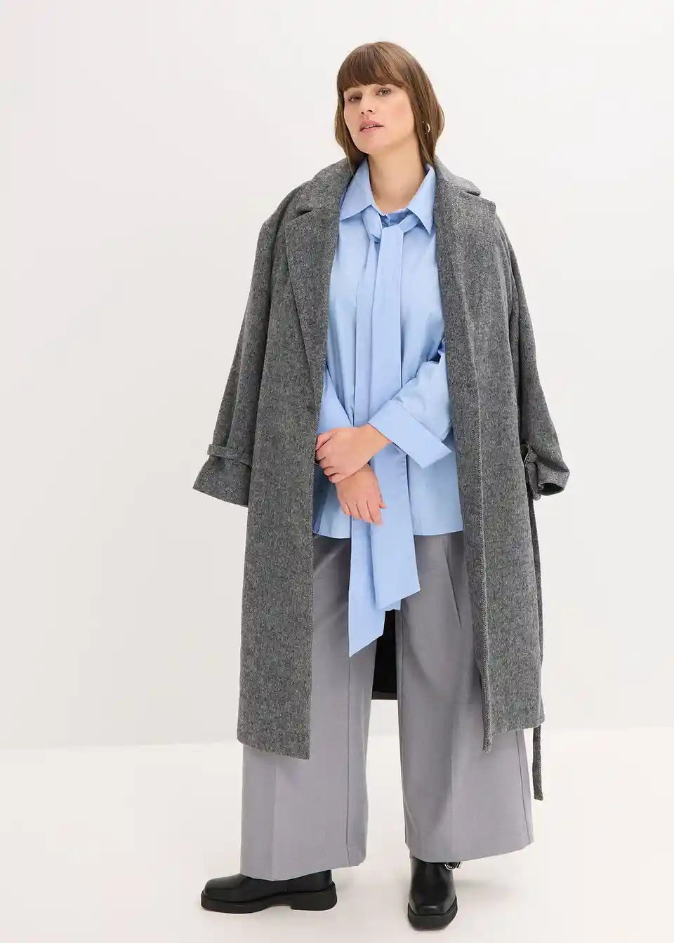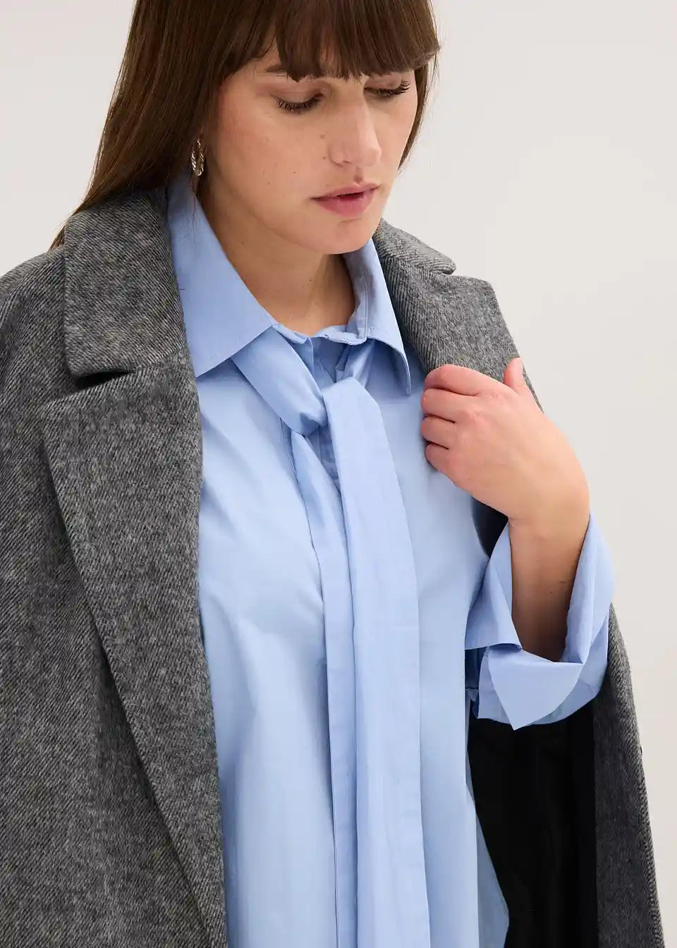 Bluza s širokimi manšetami in ovratnikom s pentljo