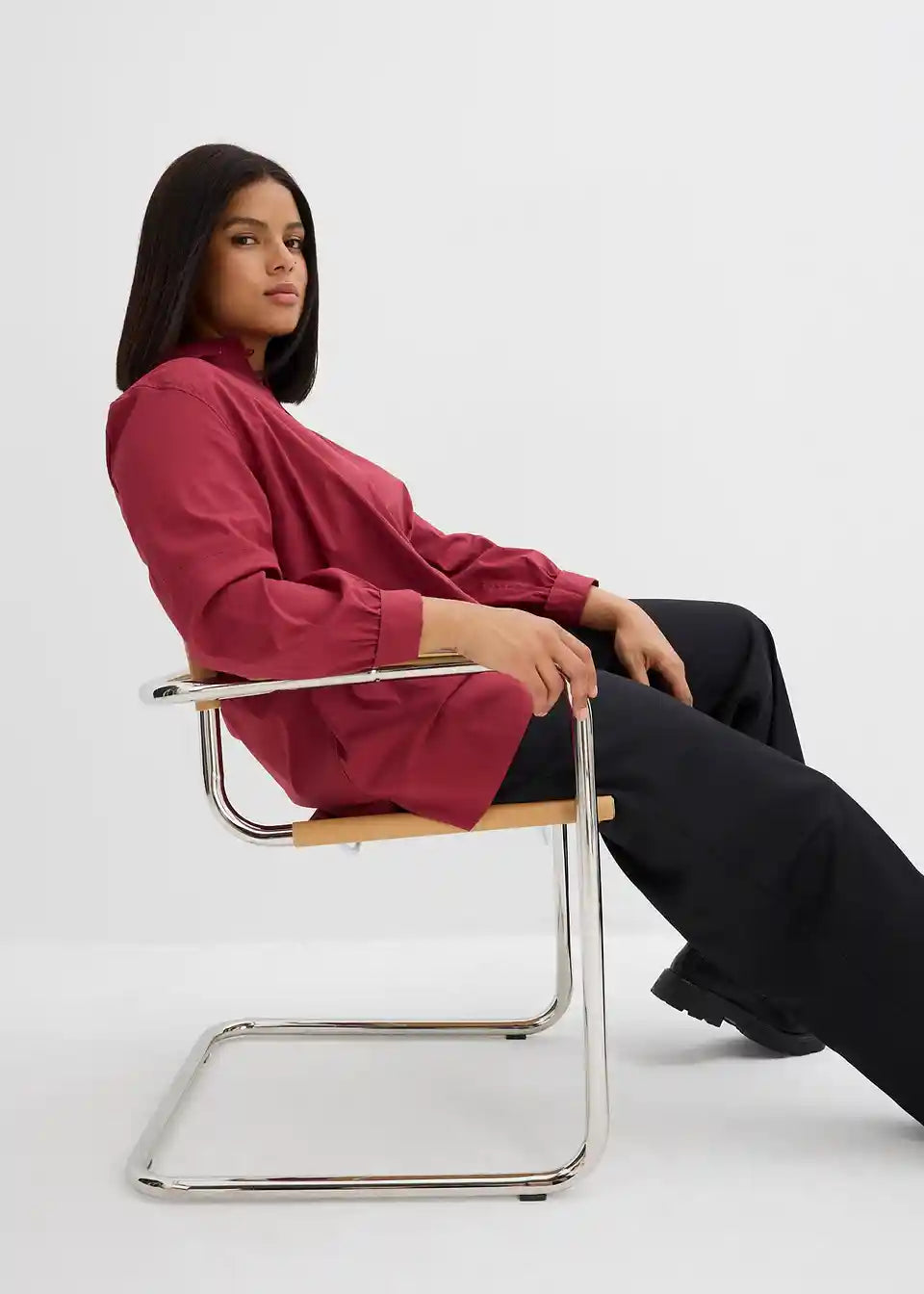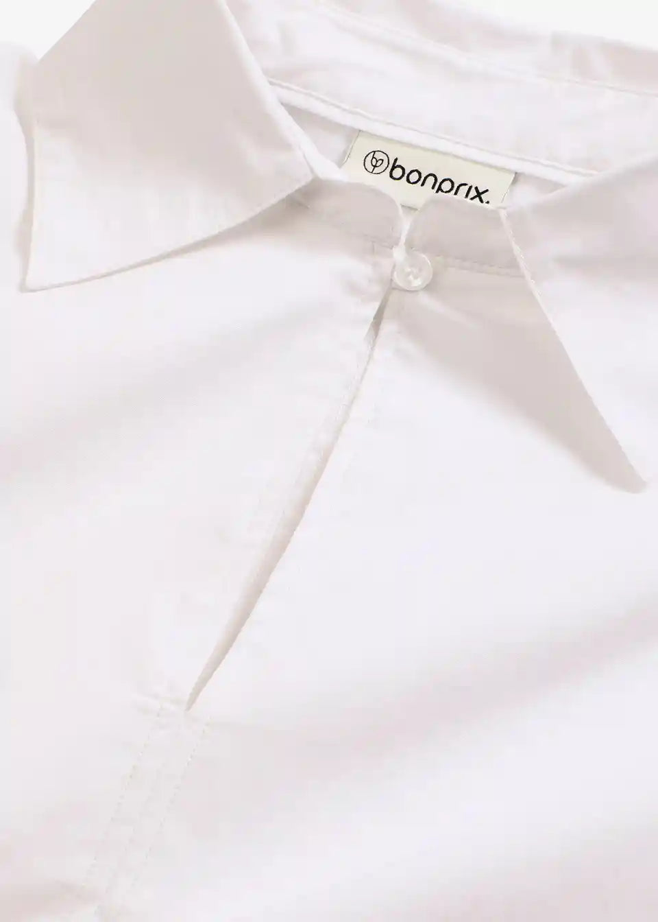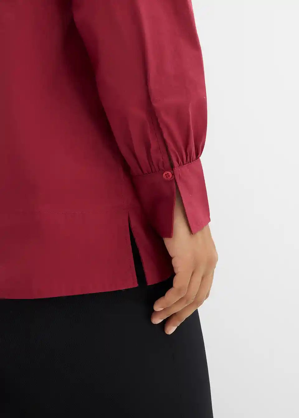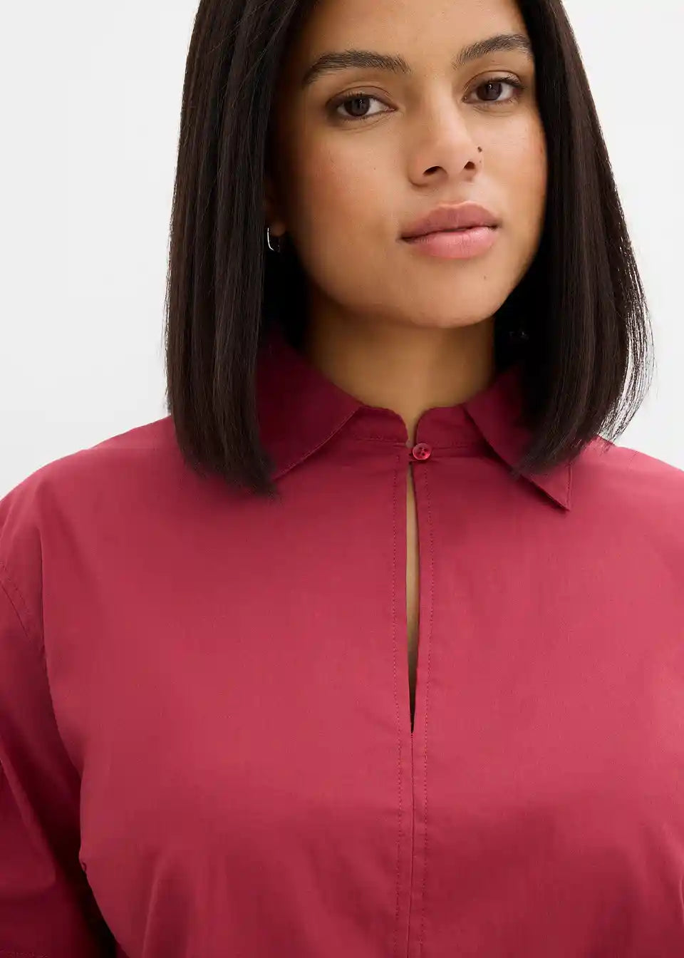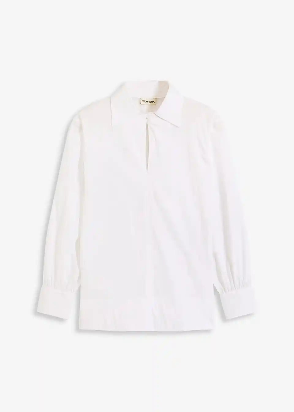 Ohlapna bluza s kentskim ovratnikom in odprtino v obliki kapljice za zapenjanje z gumbom spredaj