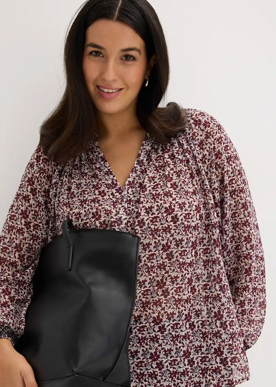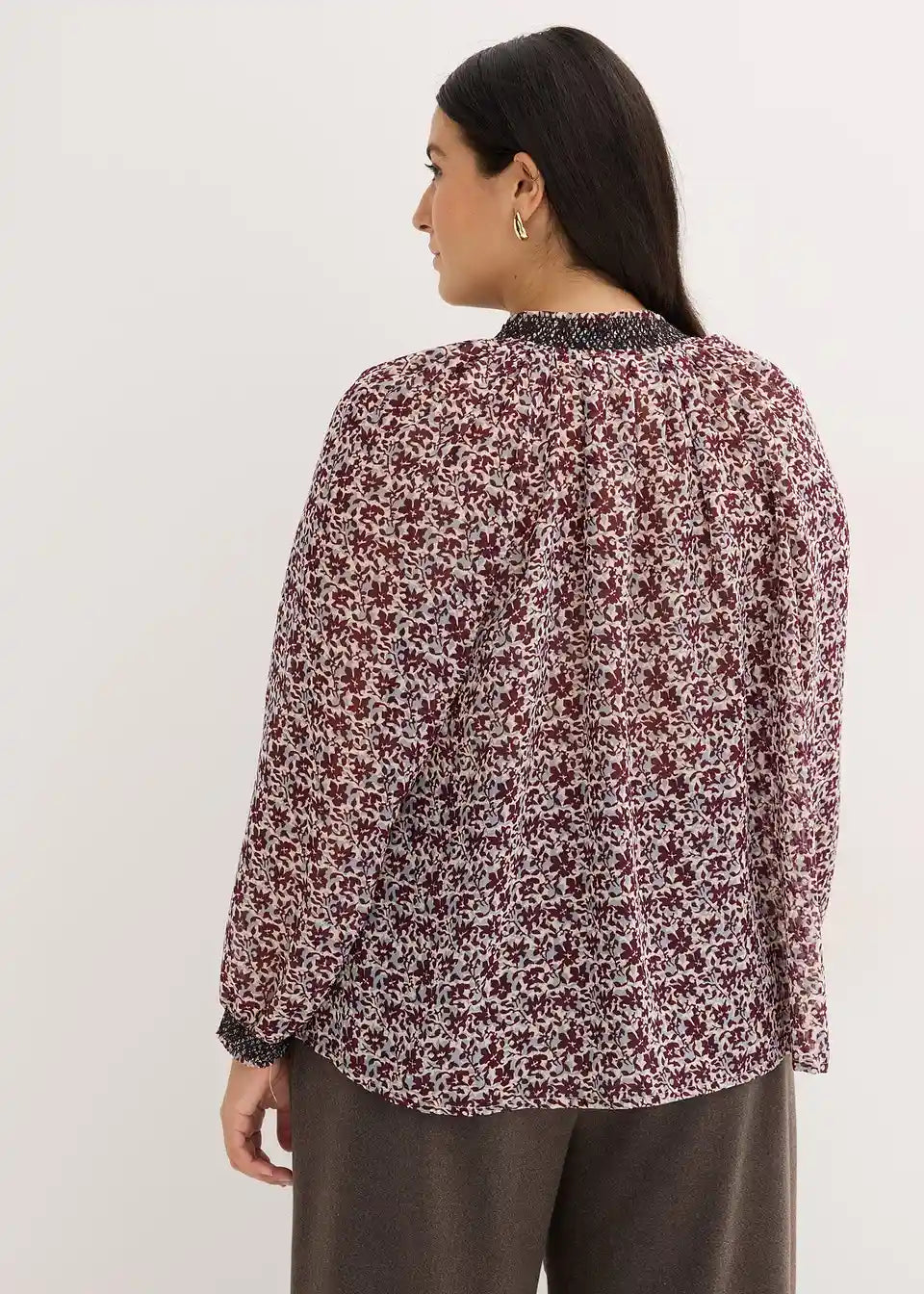 Vzorčasta bluza iz šifona z vezenino