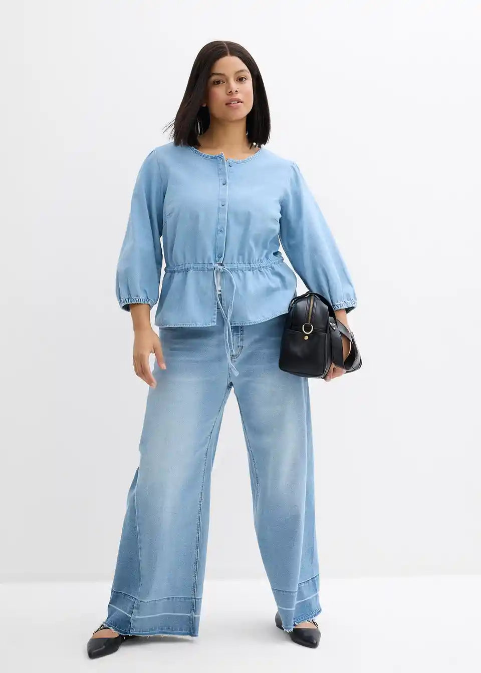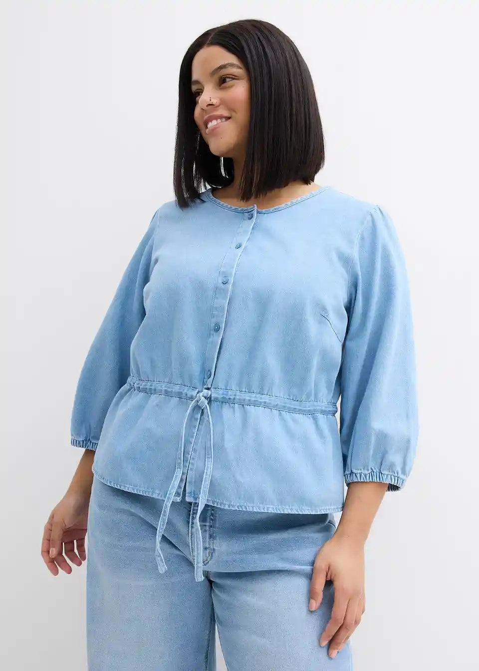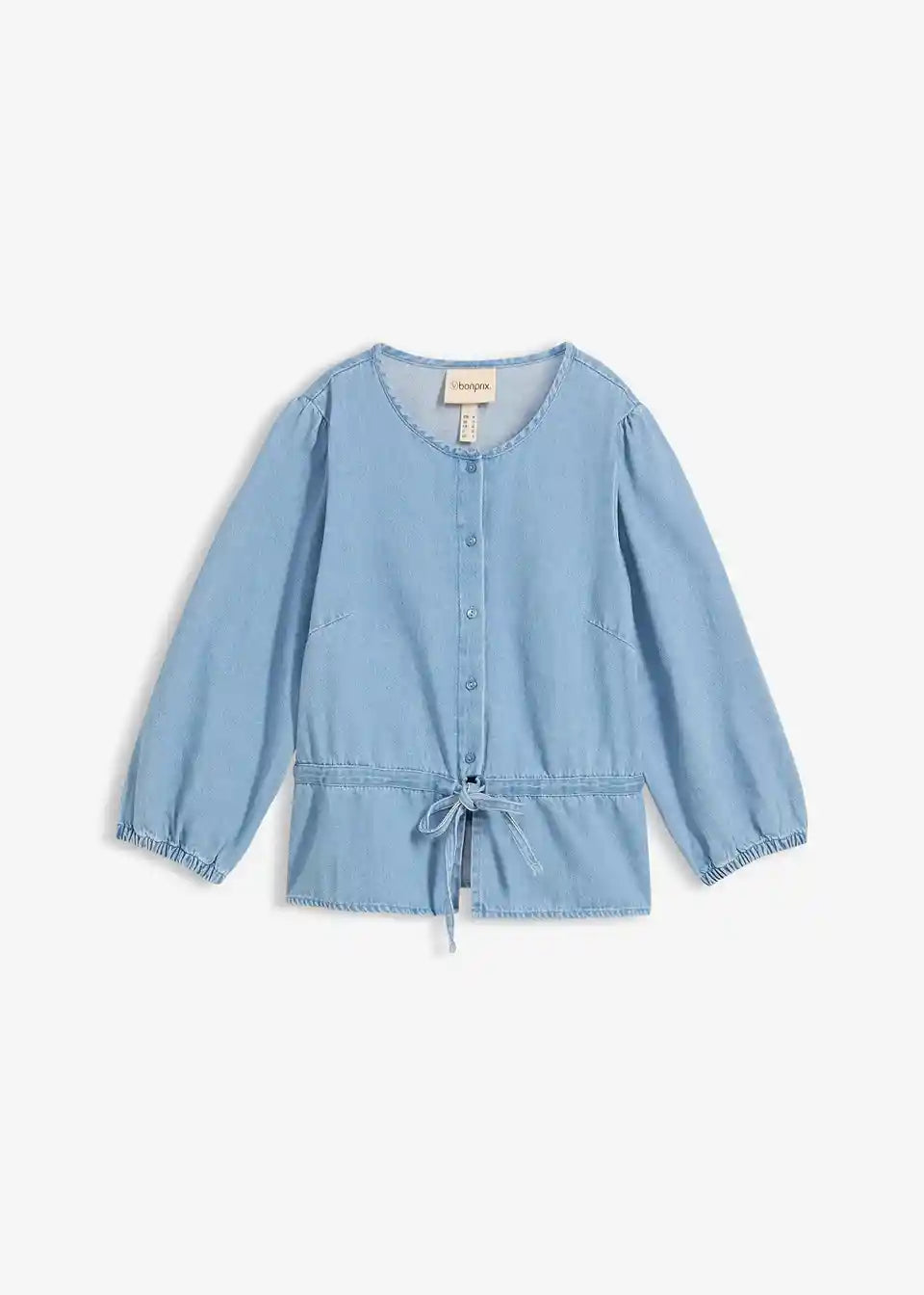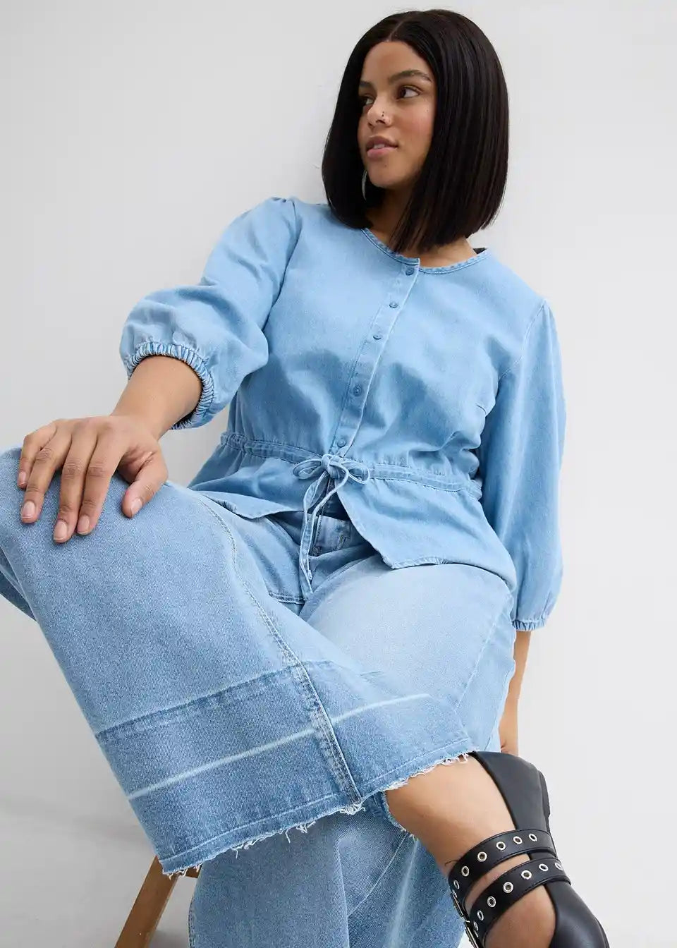 Bluza iz jeansa z balonastimi rokavi iz bombaža
